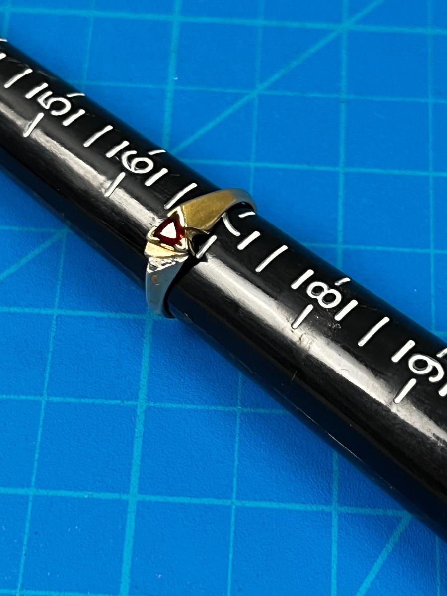 14 K Gold with Small Cut Ruby Triangle Gem Stone