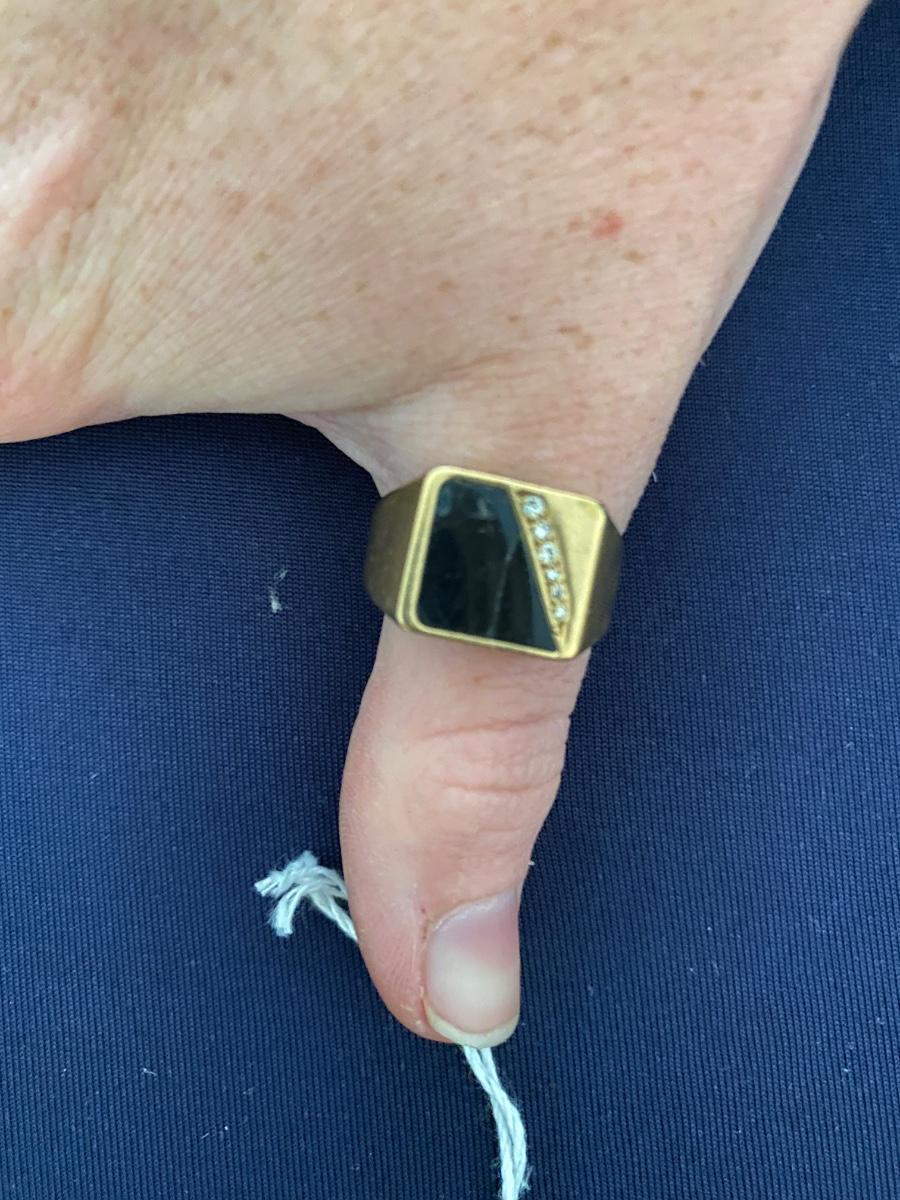 14 K Mans Ring Marked 585, Some Scratches on Stone