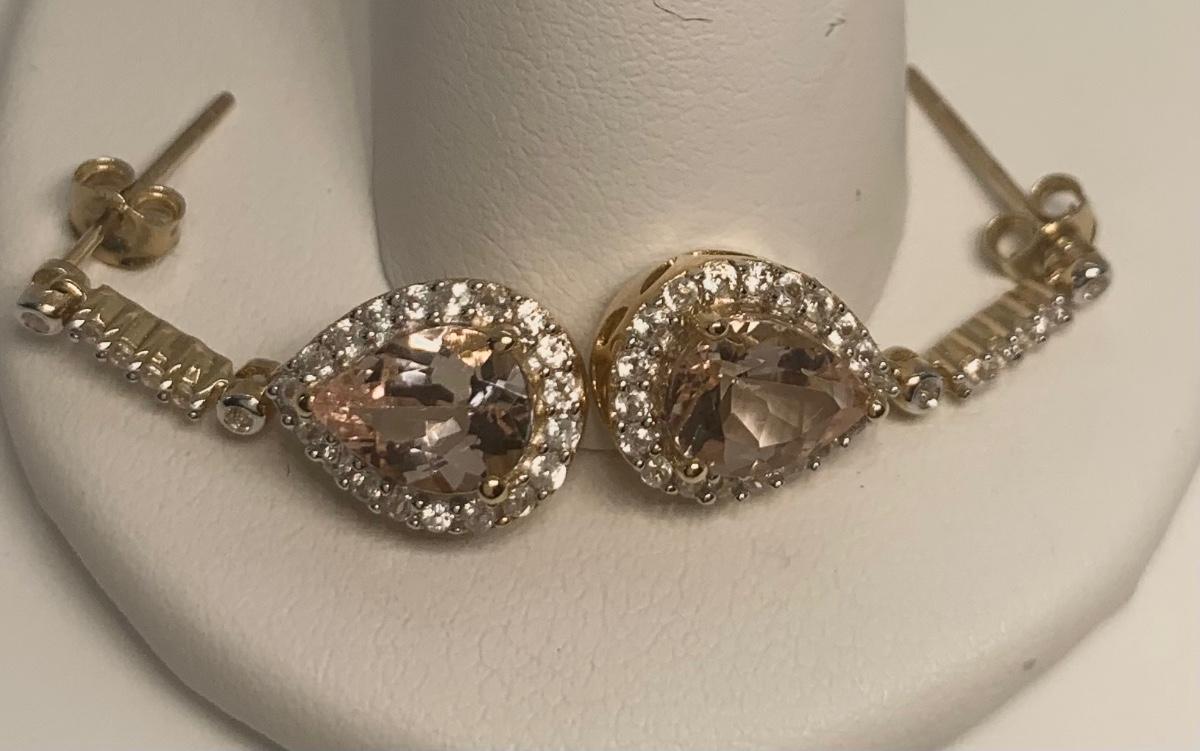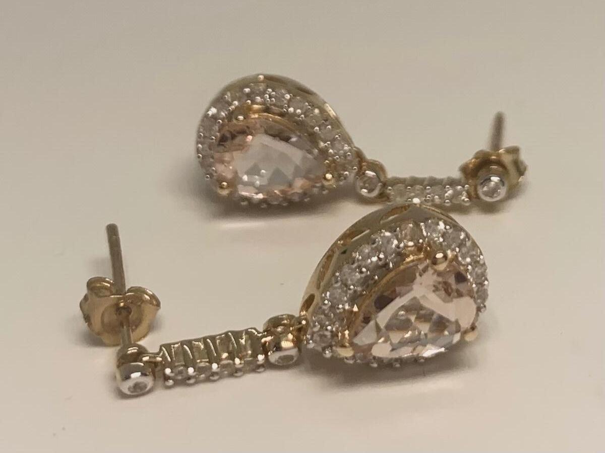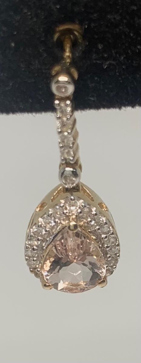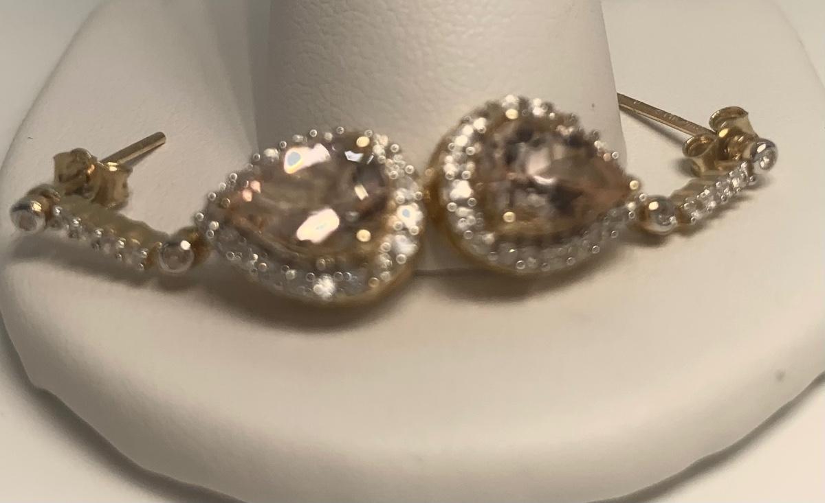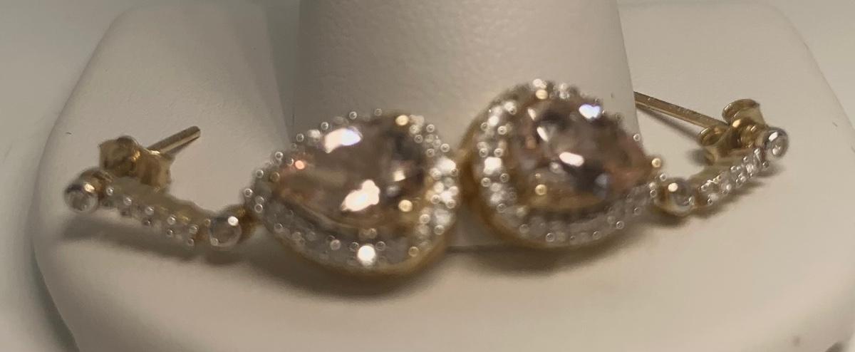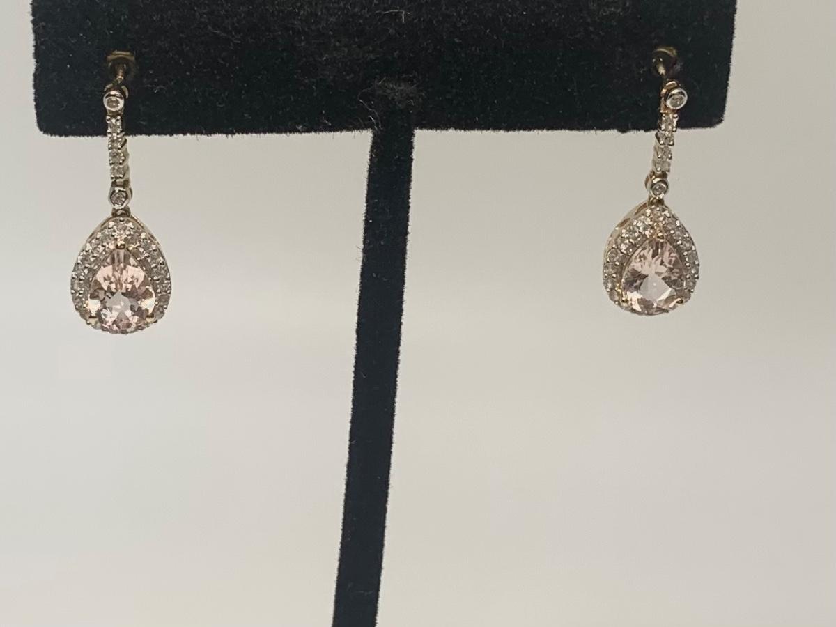 Morganite & Diamond Pierced Earrings 14K  tw 3.4g
