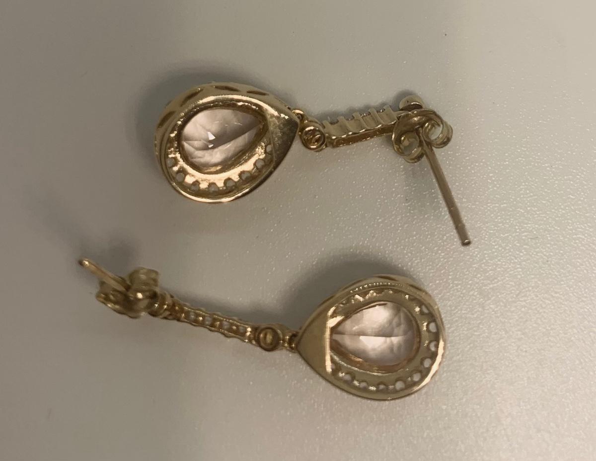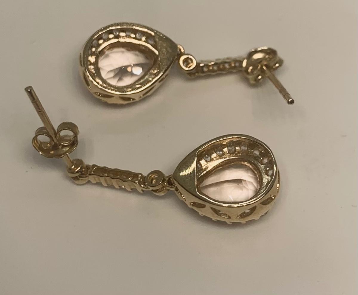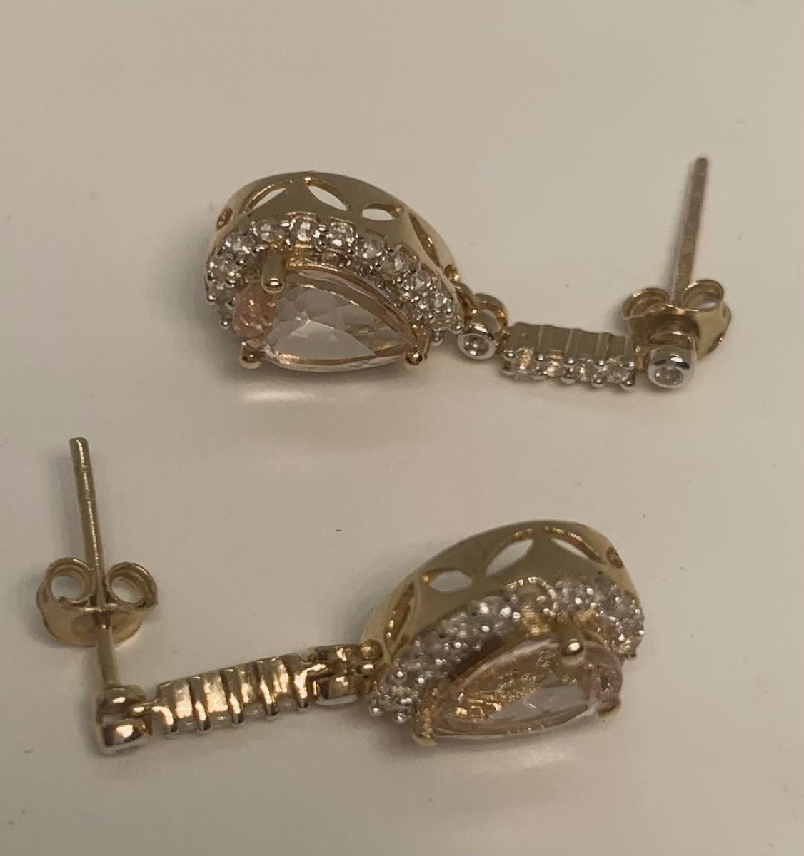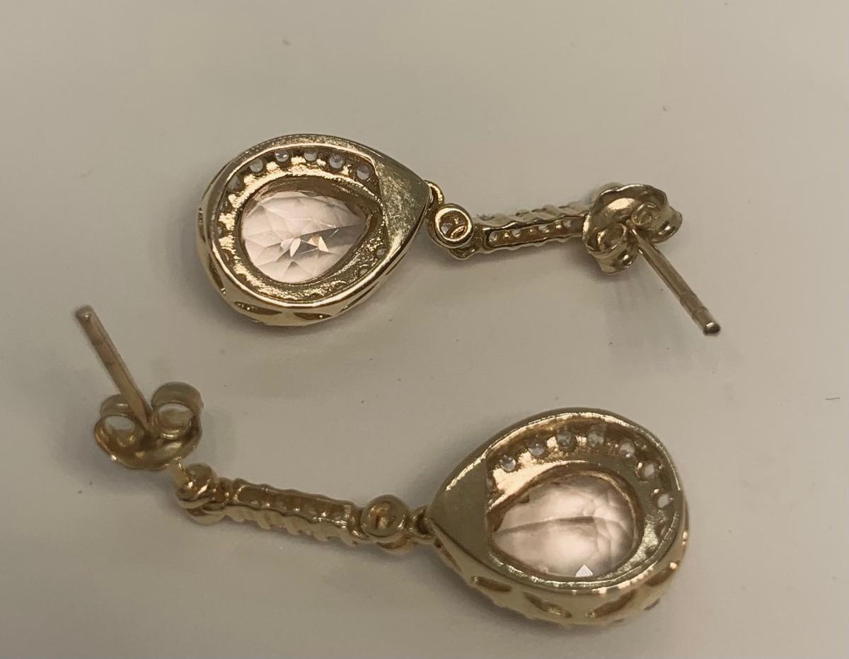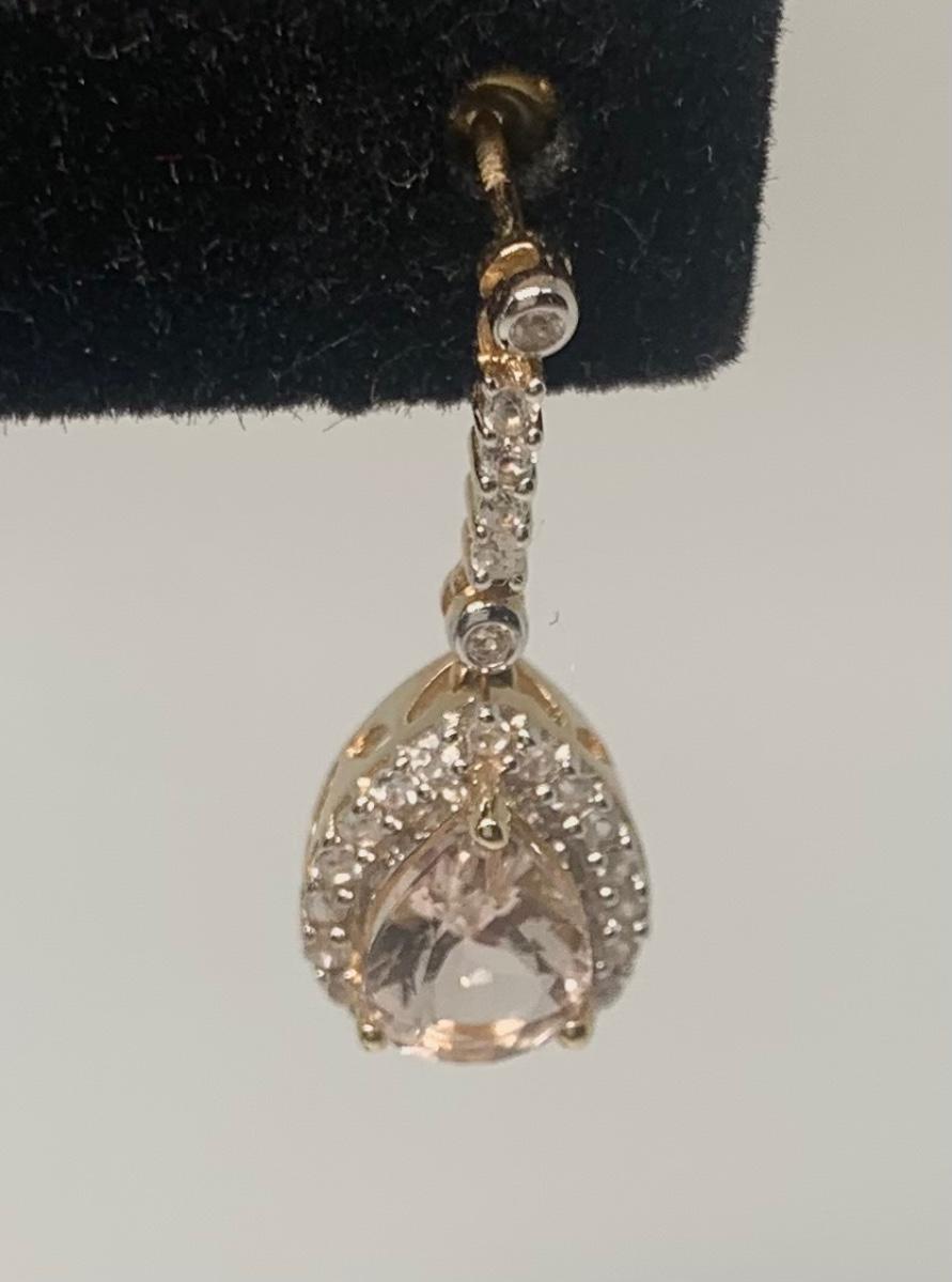 Morganite & Diamond Pierced Earrings 14K  tw 3.4g