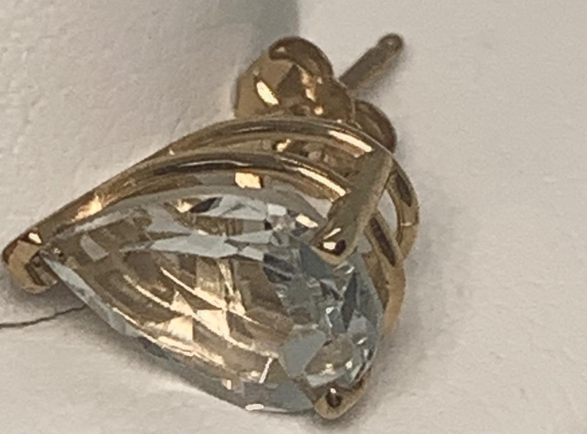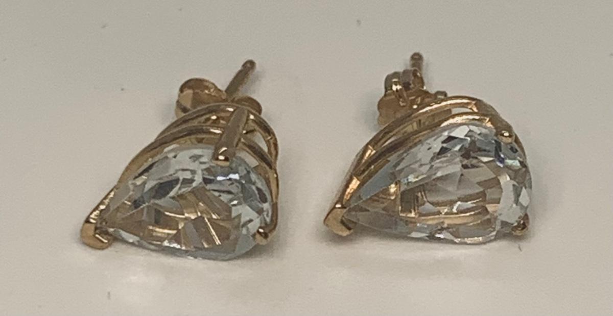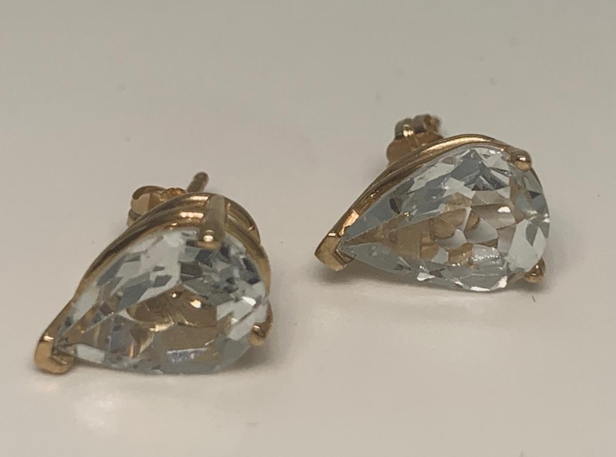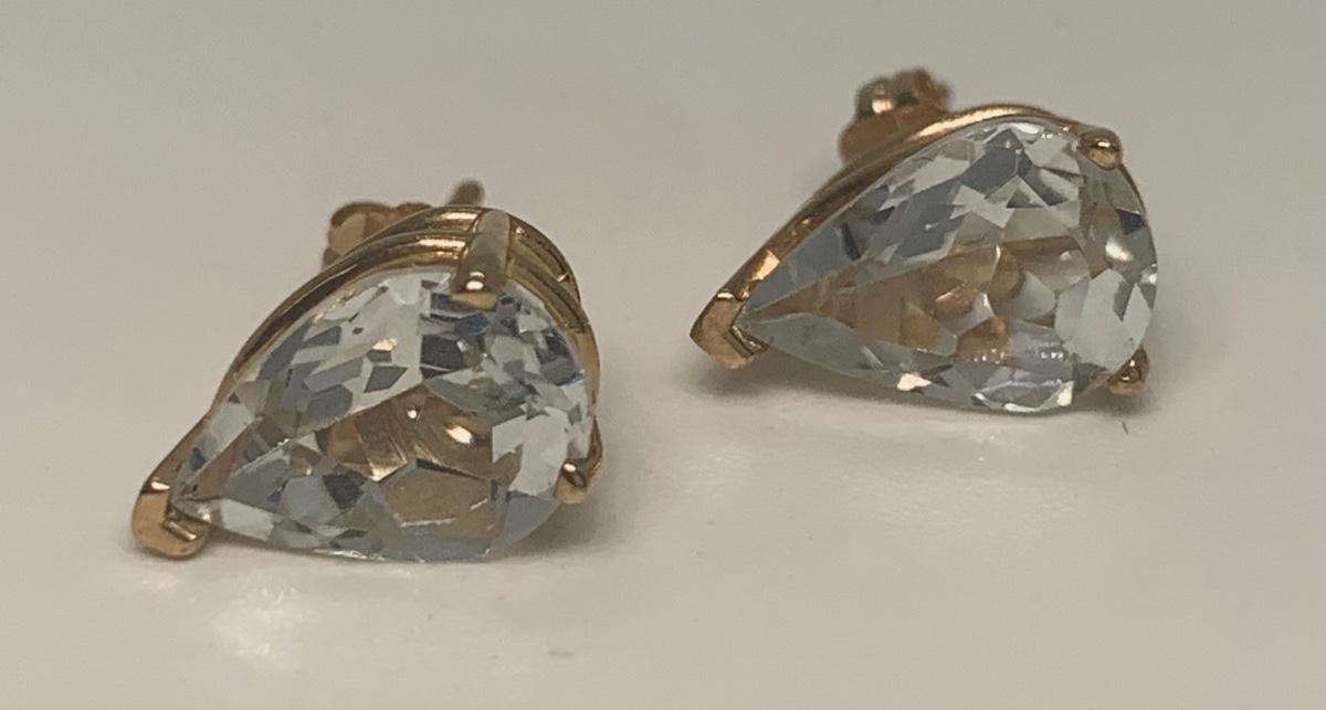 14 K pear-shaped light aqua marine pierced earrings 1.6 g