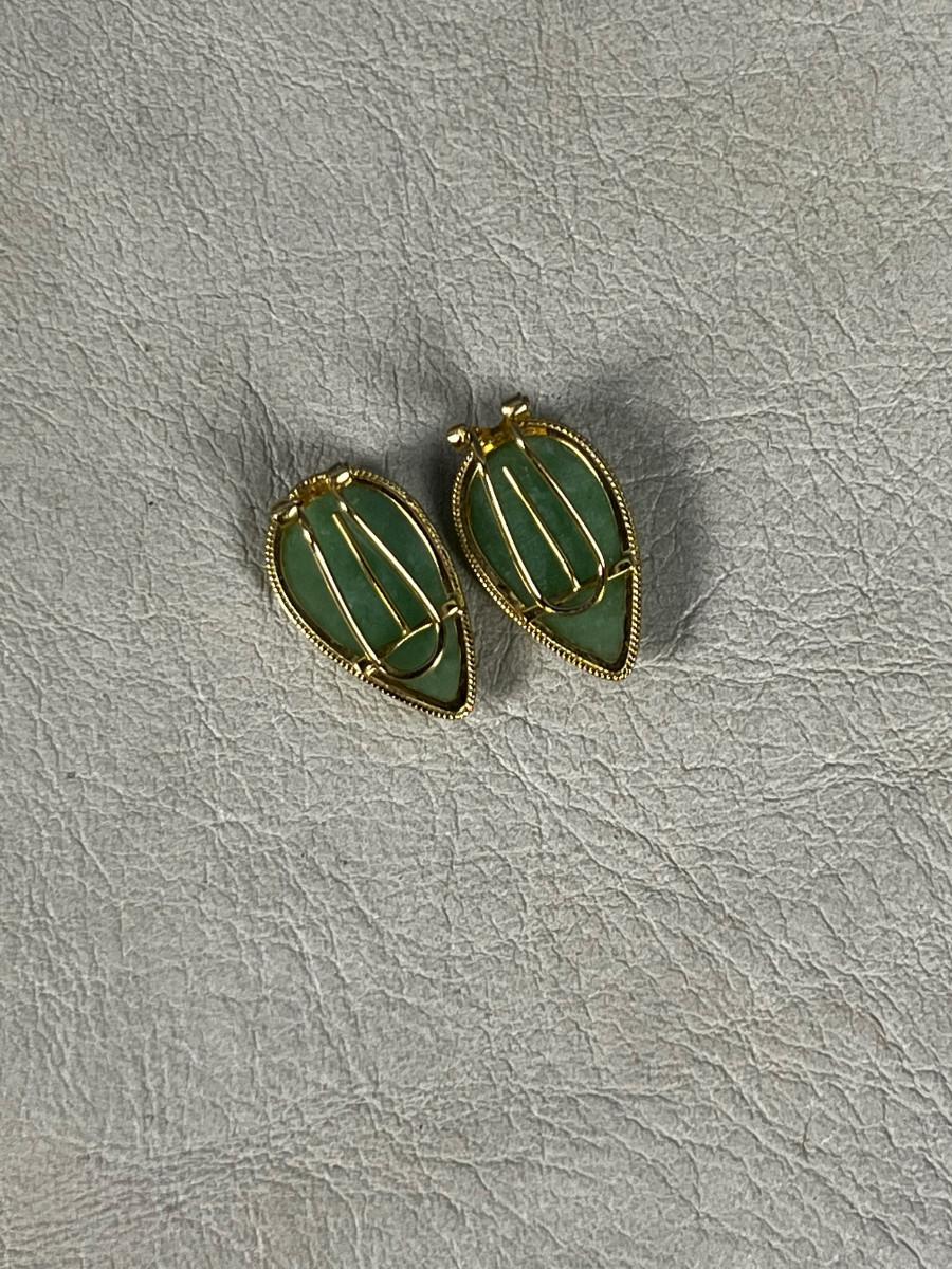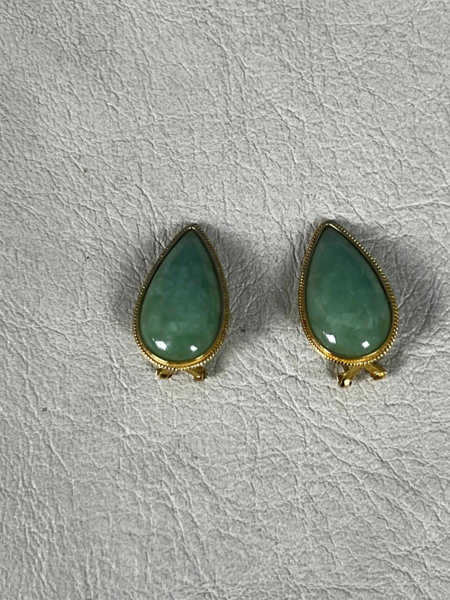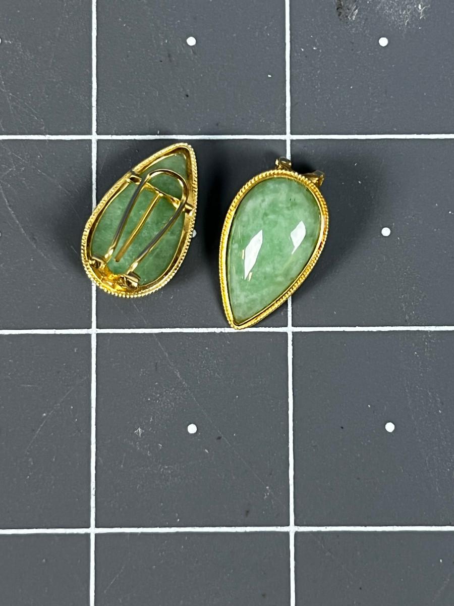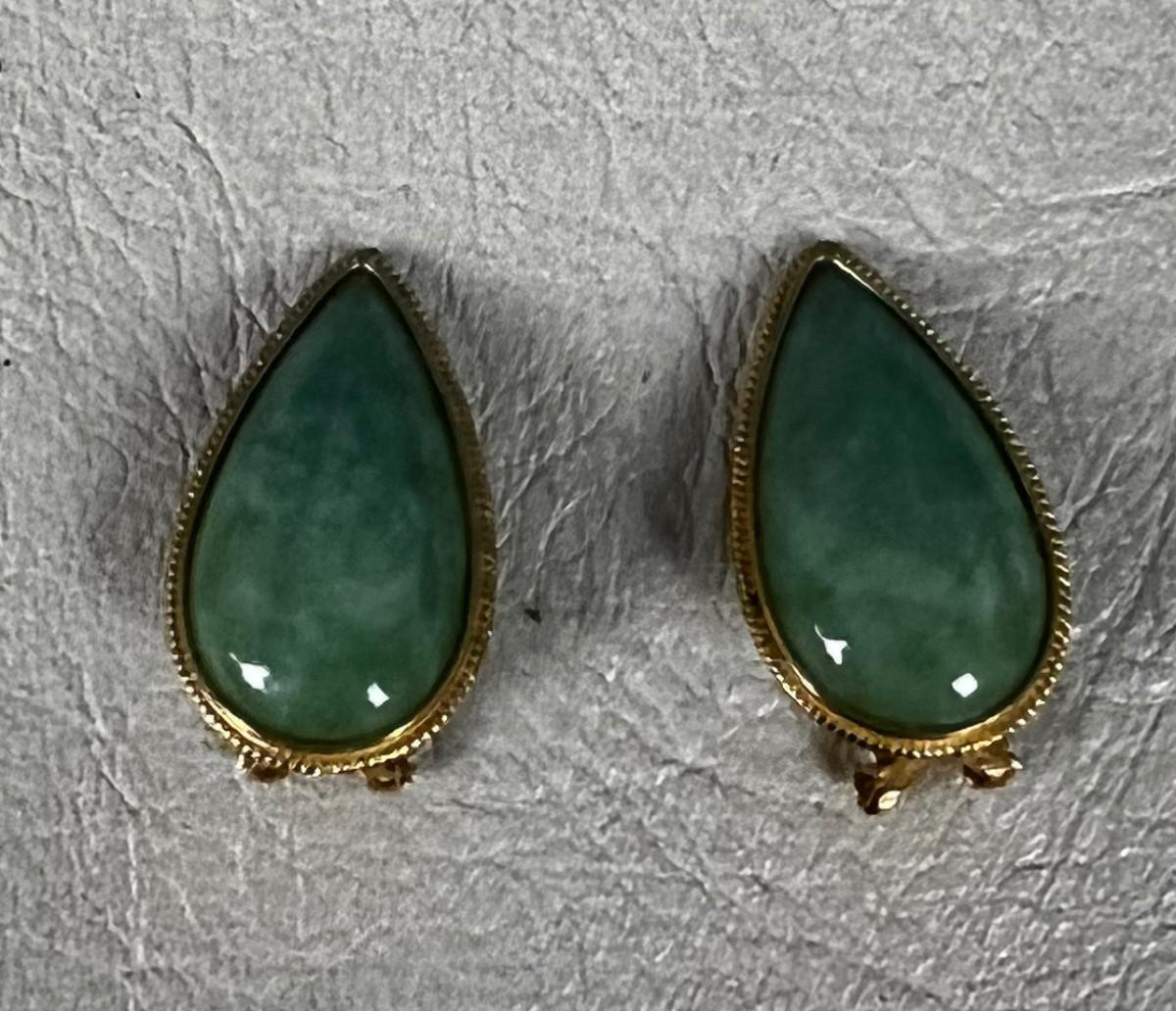 14 K Tear Drop Earrings Clip on JADE! BEAUTIFUL