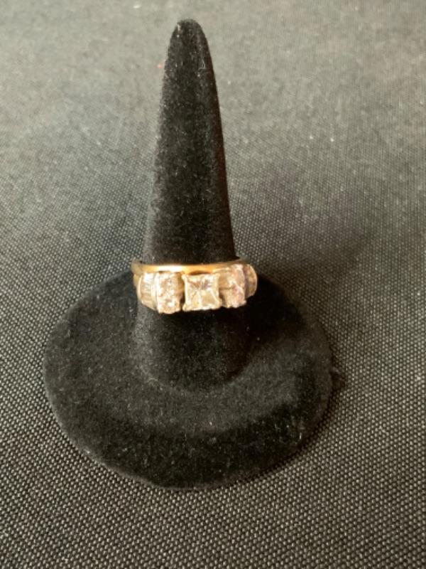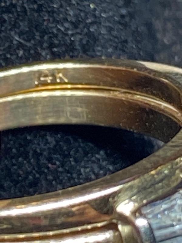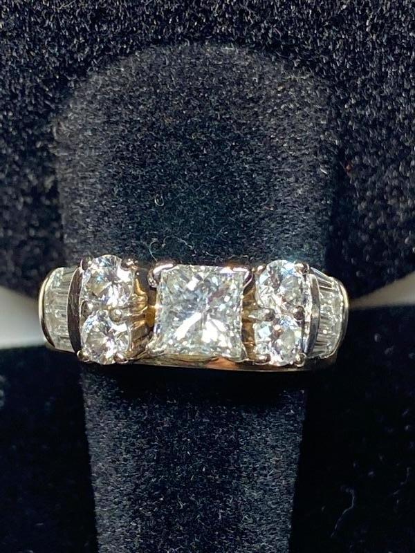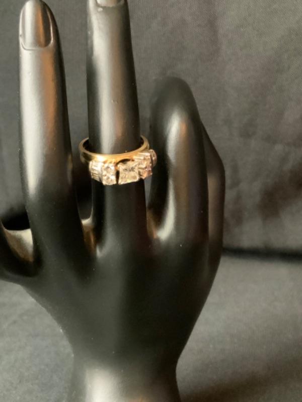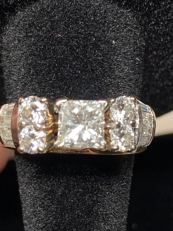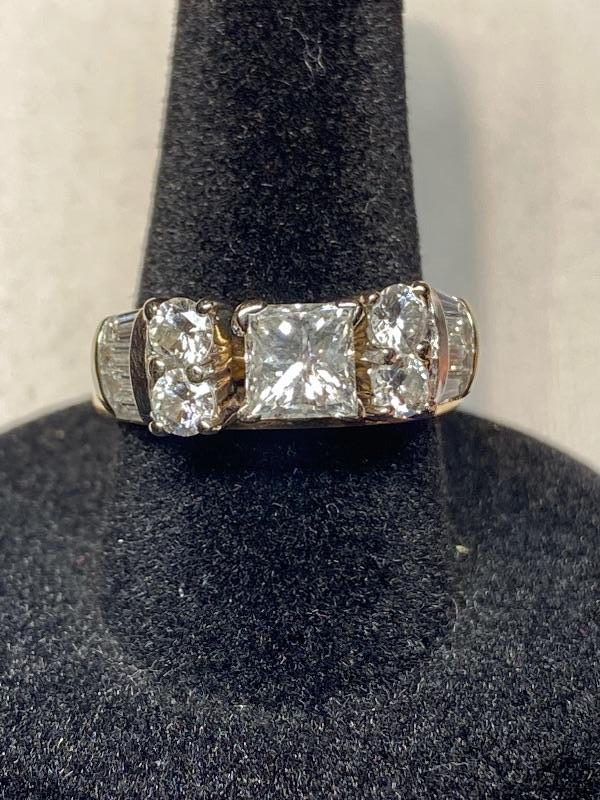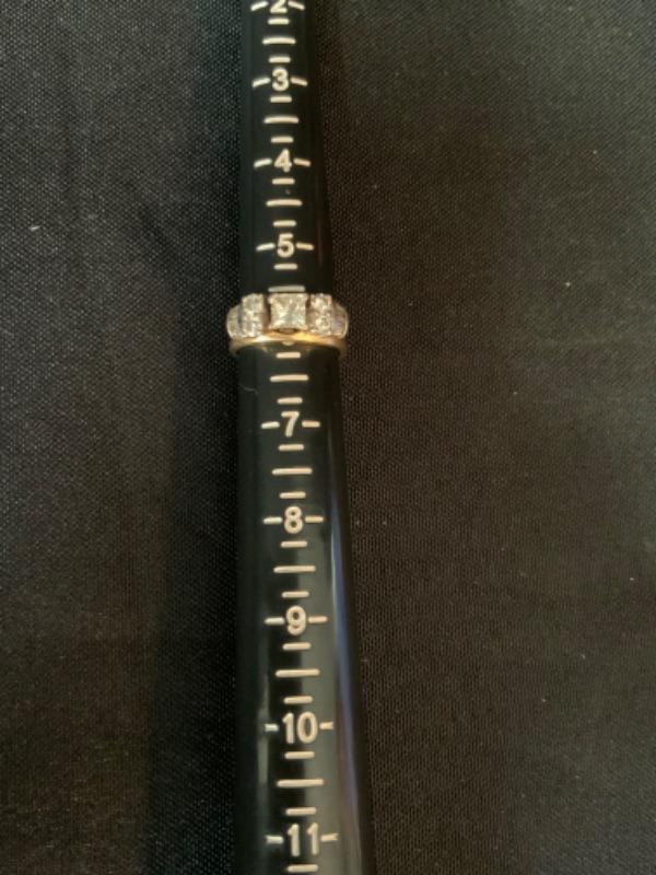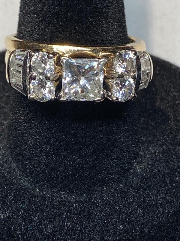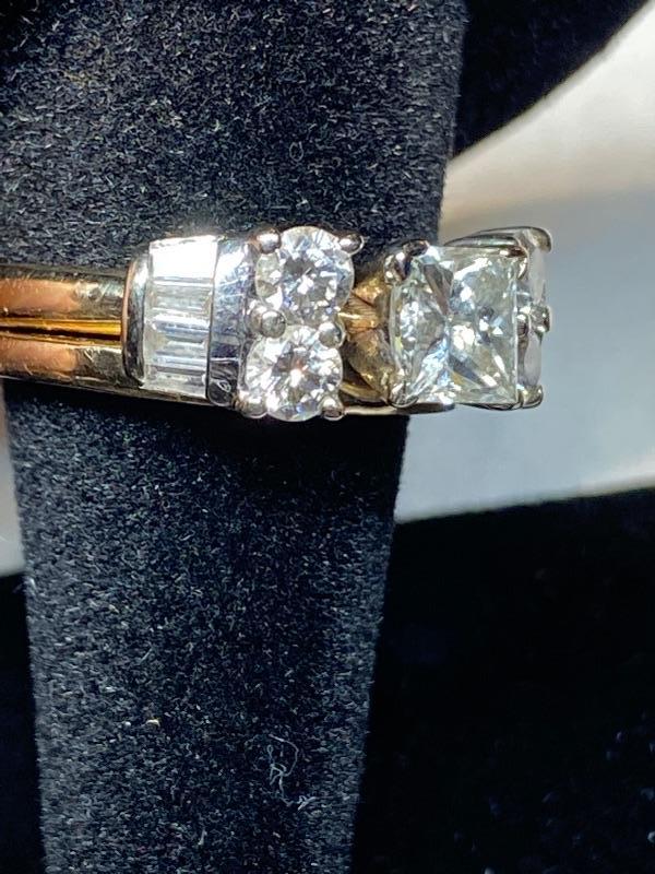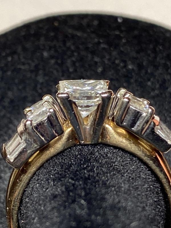 5.5gr 14 karat yellow gold engagement ring and enhancer 5.20mm princess cut diamond approx .50ct center & .50ctw enhancer. Approx 1 ctw appraised retail value $3250.00 lot 2845