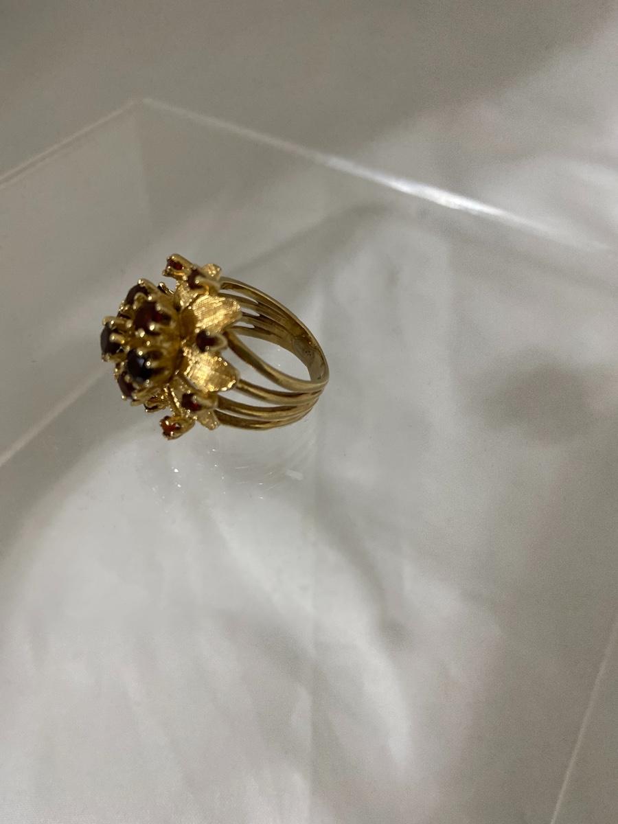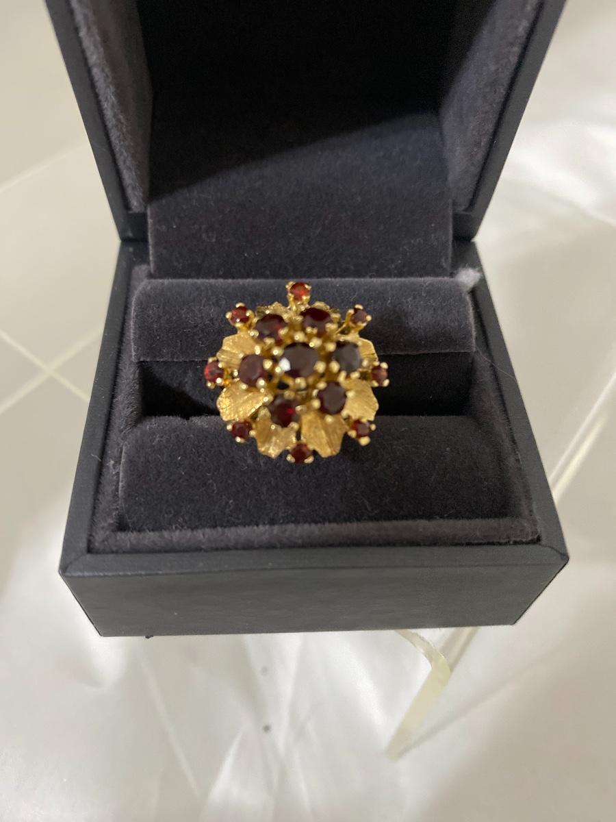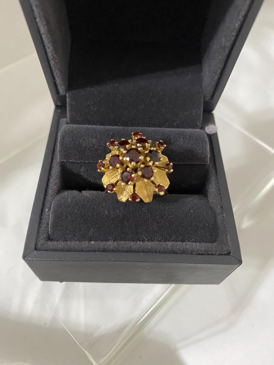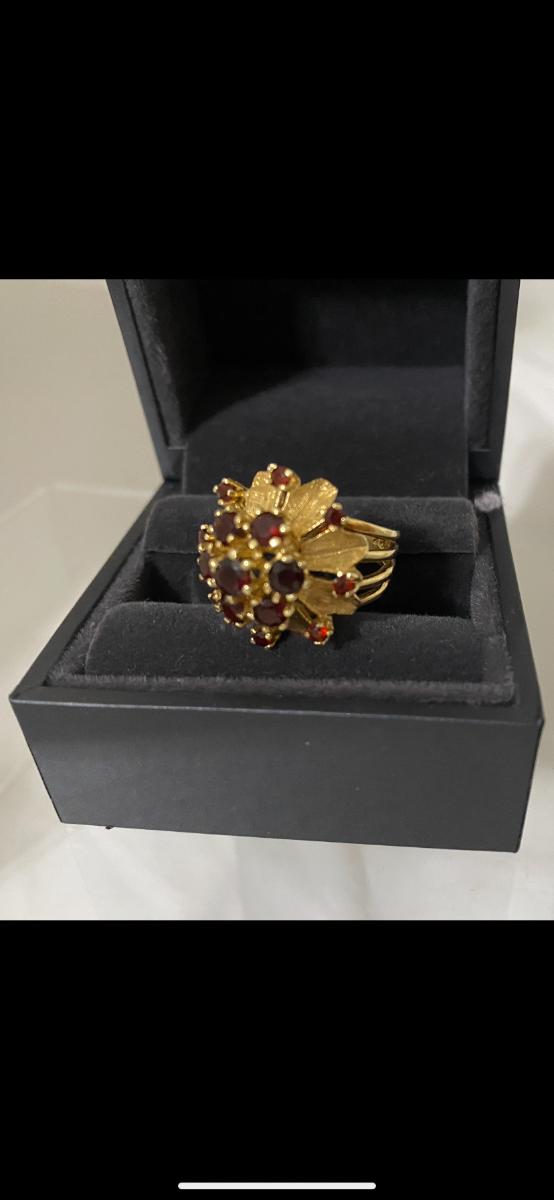 14 Karat Gold and Garnet Cocktail Ring Size 4