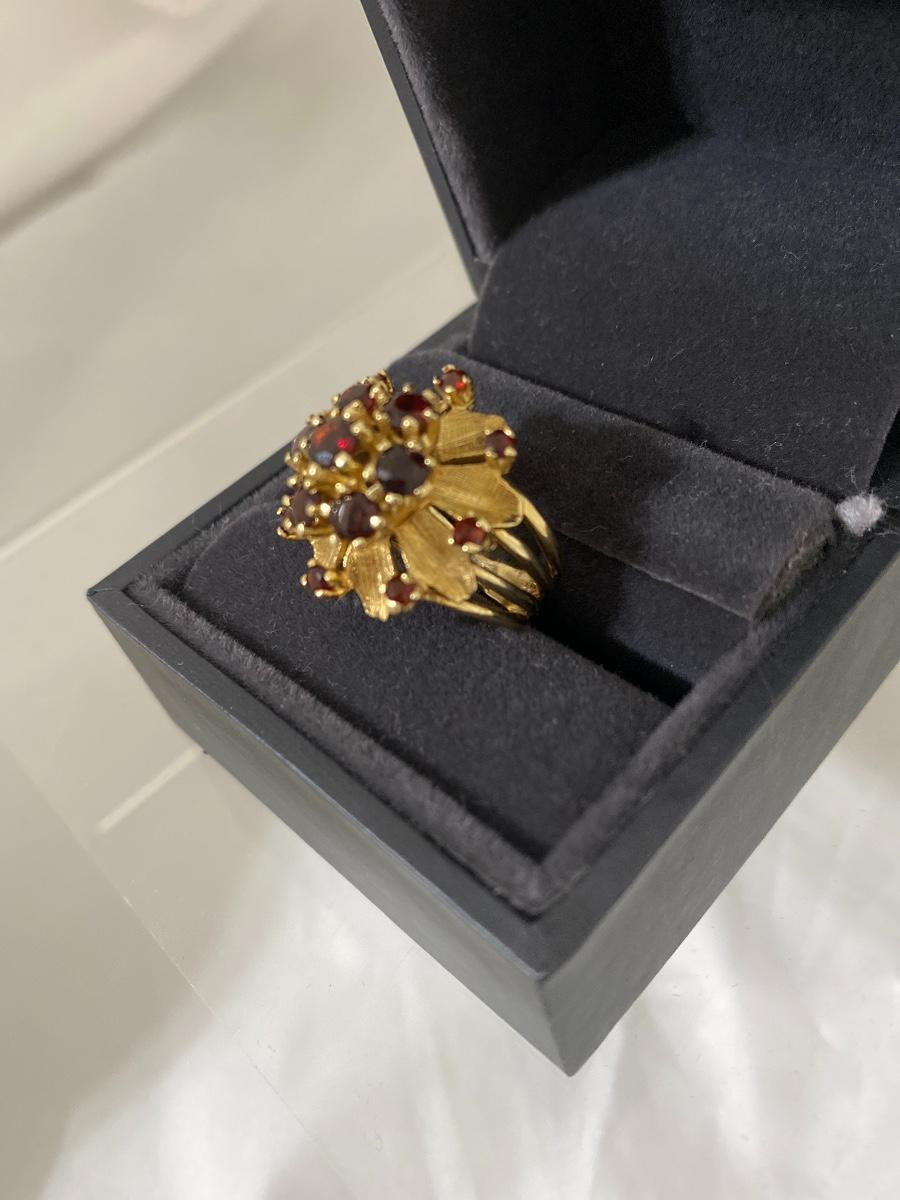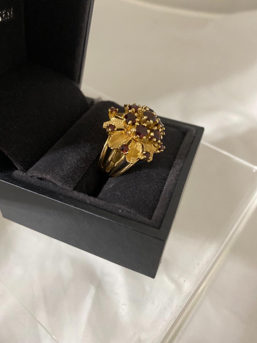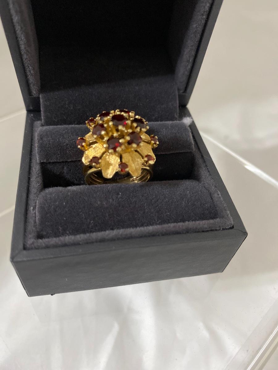 14 Karat Gold and Garnet Cocktail Ring Size 4
