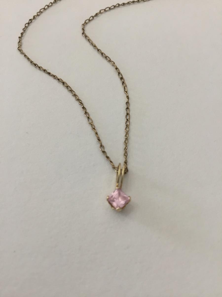 14 karat gold filled chain necklace and pink rhinestone pendant