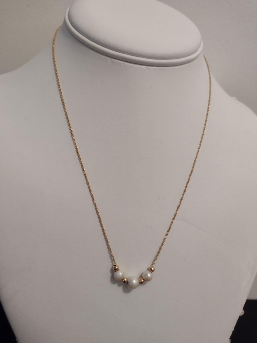 14 Karat Plumb Yellow Gold and Bead Necklace - Approx 17 1/4" Long (#9)