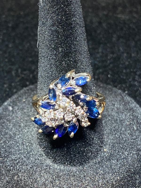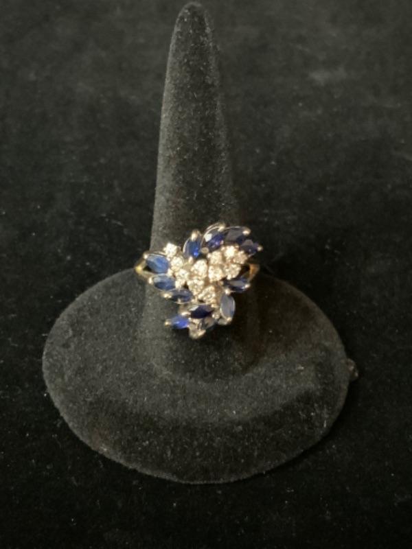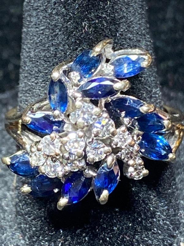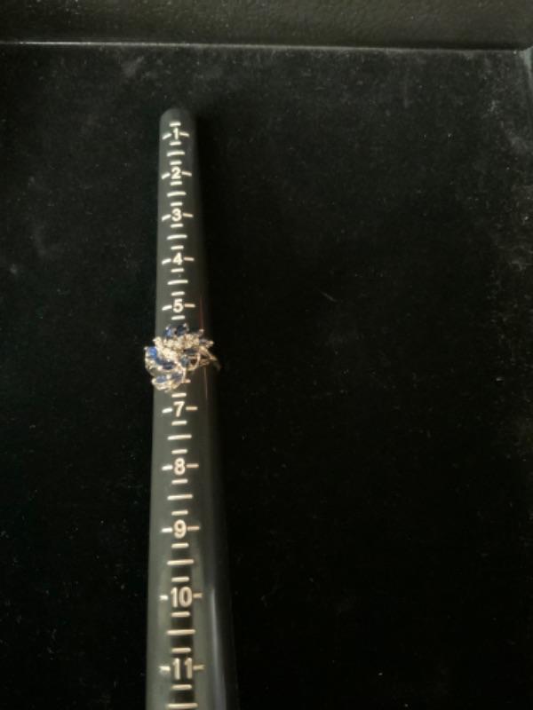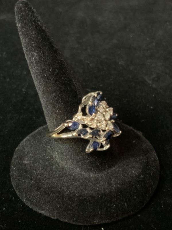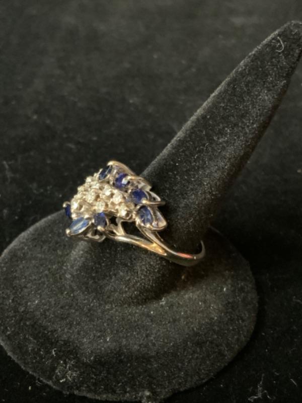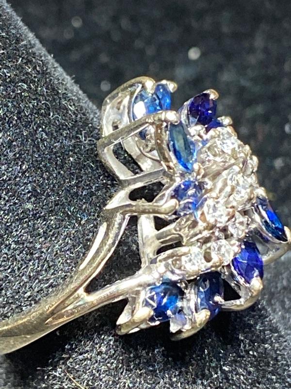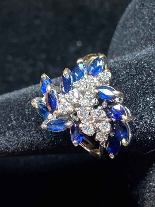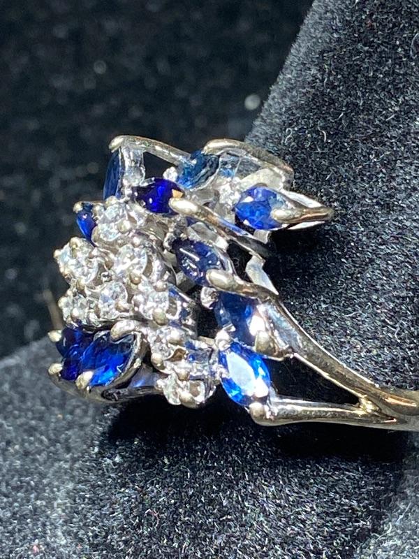 18kt white gold single cut diamonds .25ctw and natural blue sapphire .66 ctw ring size 6 / Appraised Retail Value $1560.00 Lot 2846