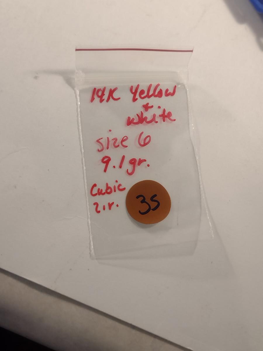 14 Karat Yellow and White Gold with Cubic Zirconia Ring- Size 6- Approx Weight 9.1 Grams (#35)