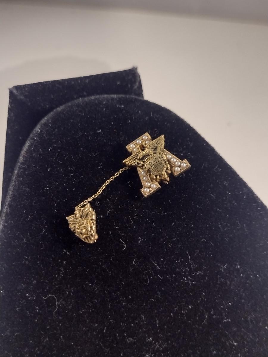 14 Karat Yellow Gold and Pearl USMA West Point Pin- Approx Weight 8 Grams (#316)