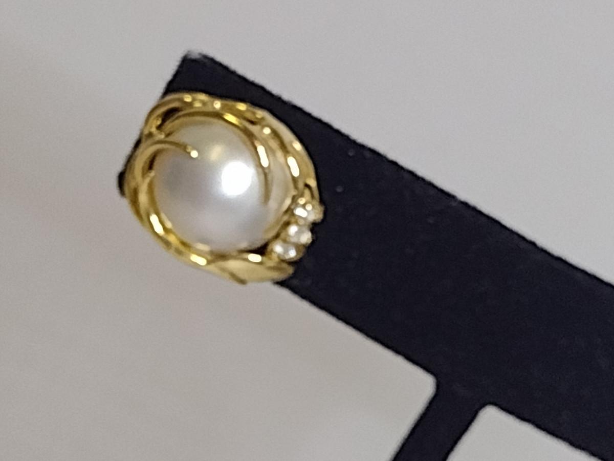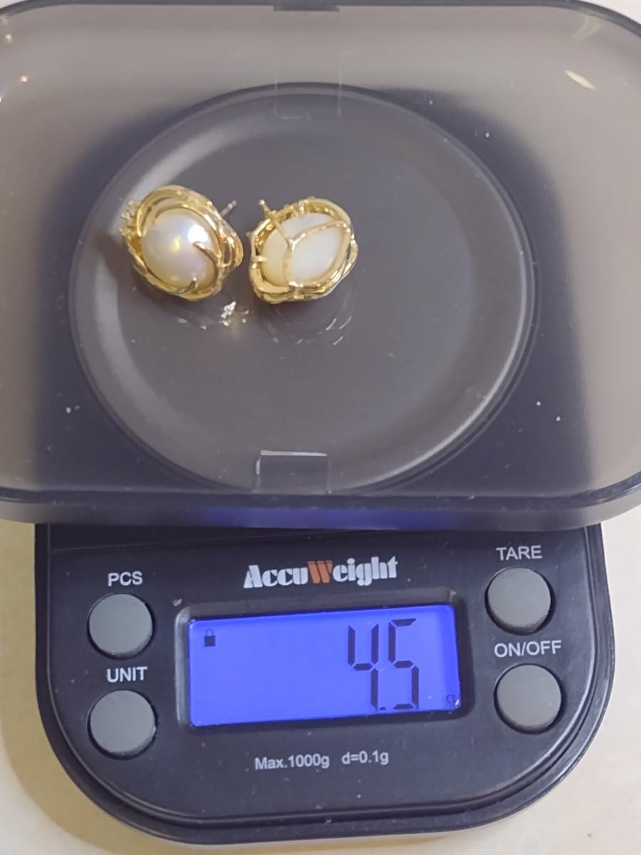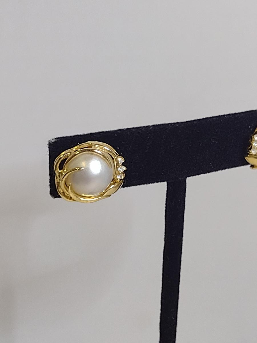 14 Karat Yellow Gold and Pearl Post Earrings with Diamond Accents- Approx Total Weight 4.5 Grams (#53). Test with Gemoro confirms diamonds. Pearls are untested. Backs are only gold filled and are not included in weight. A 6.75% NC sales tax will be added to the jewelry invoice amount at the end of the sale. Coins are exempt from state sales tax.