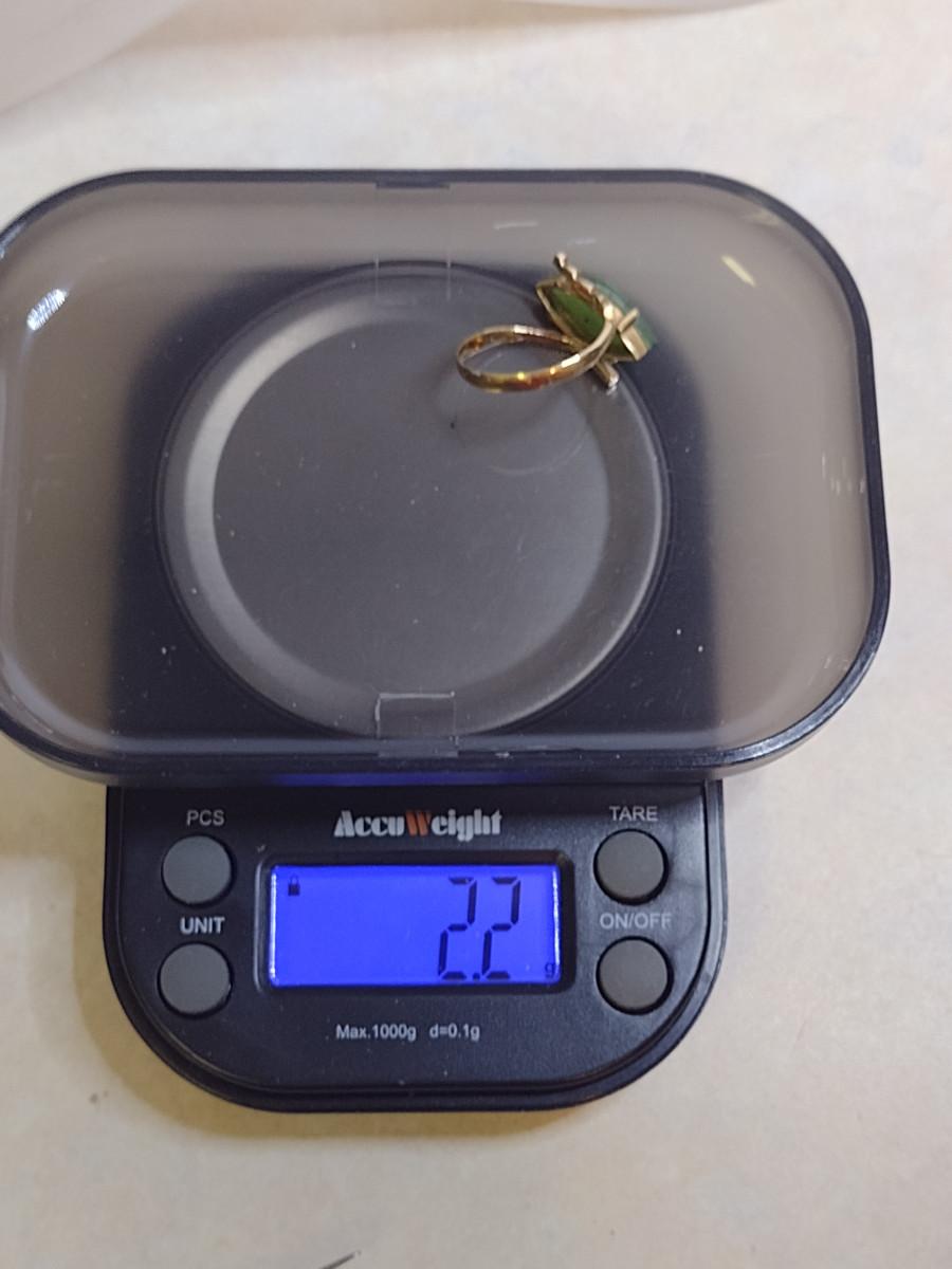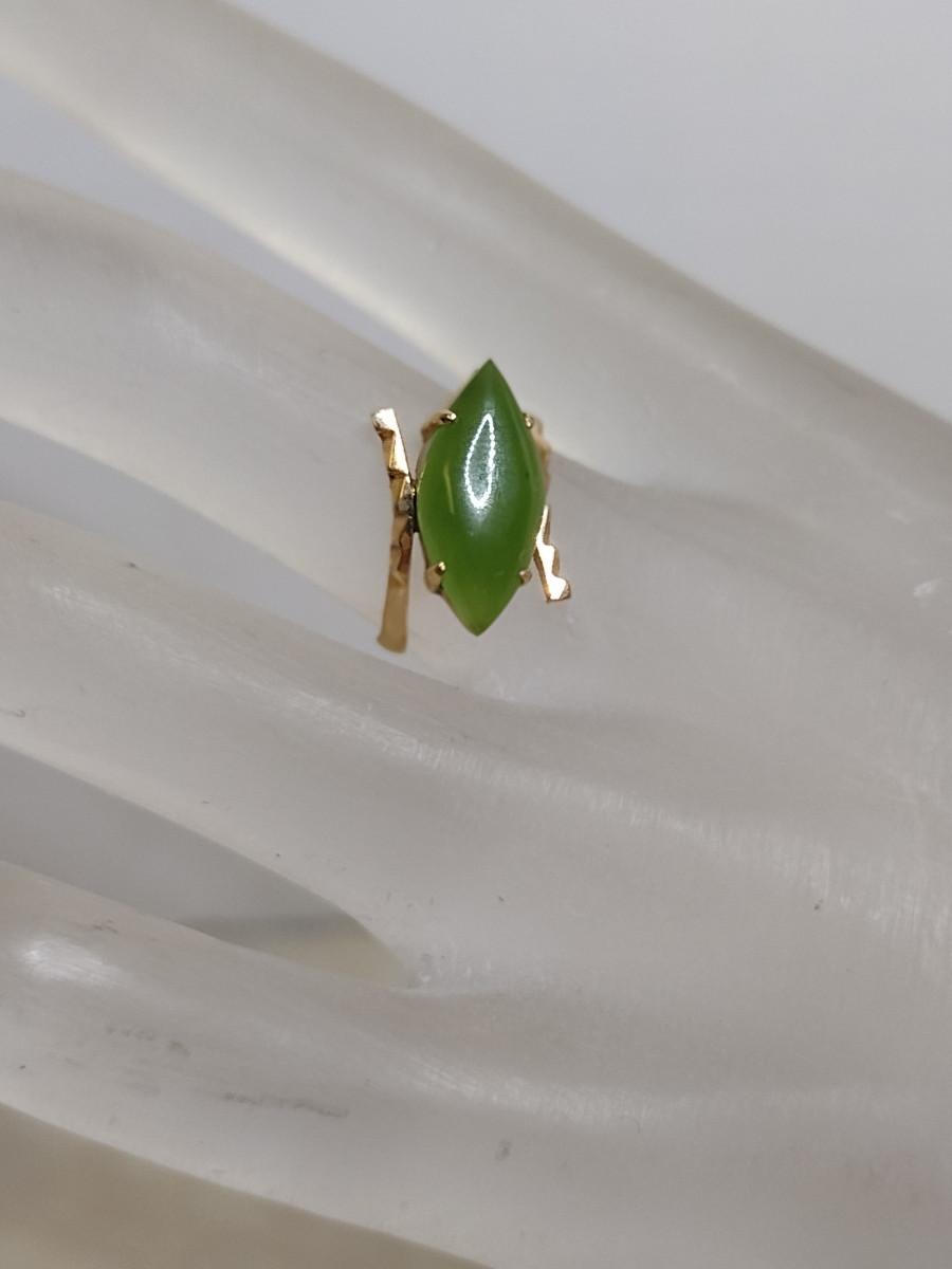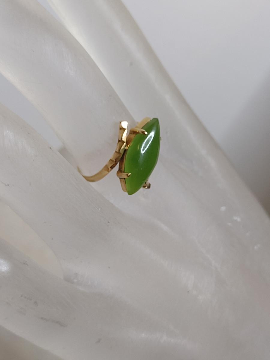 14 Karat Yellow Gold and Stone Ring- Approx Size 5 1/2 and Total Weight 2.2 Grams (#57). Item acid tests as 14 Karat. Stone is possibly jade. A 6.75% NC sales tax will be added to the jewelry invoice amount at the end of the sale. Coins are exempt from state sales tax.