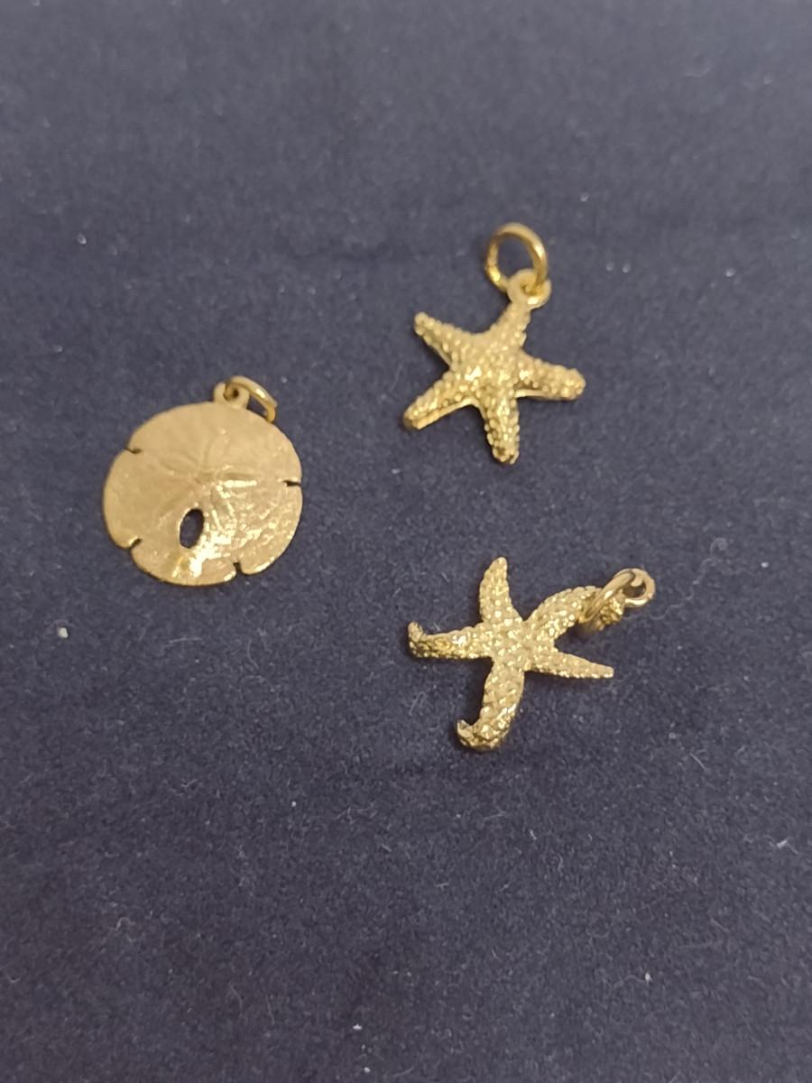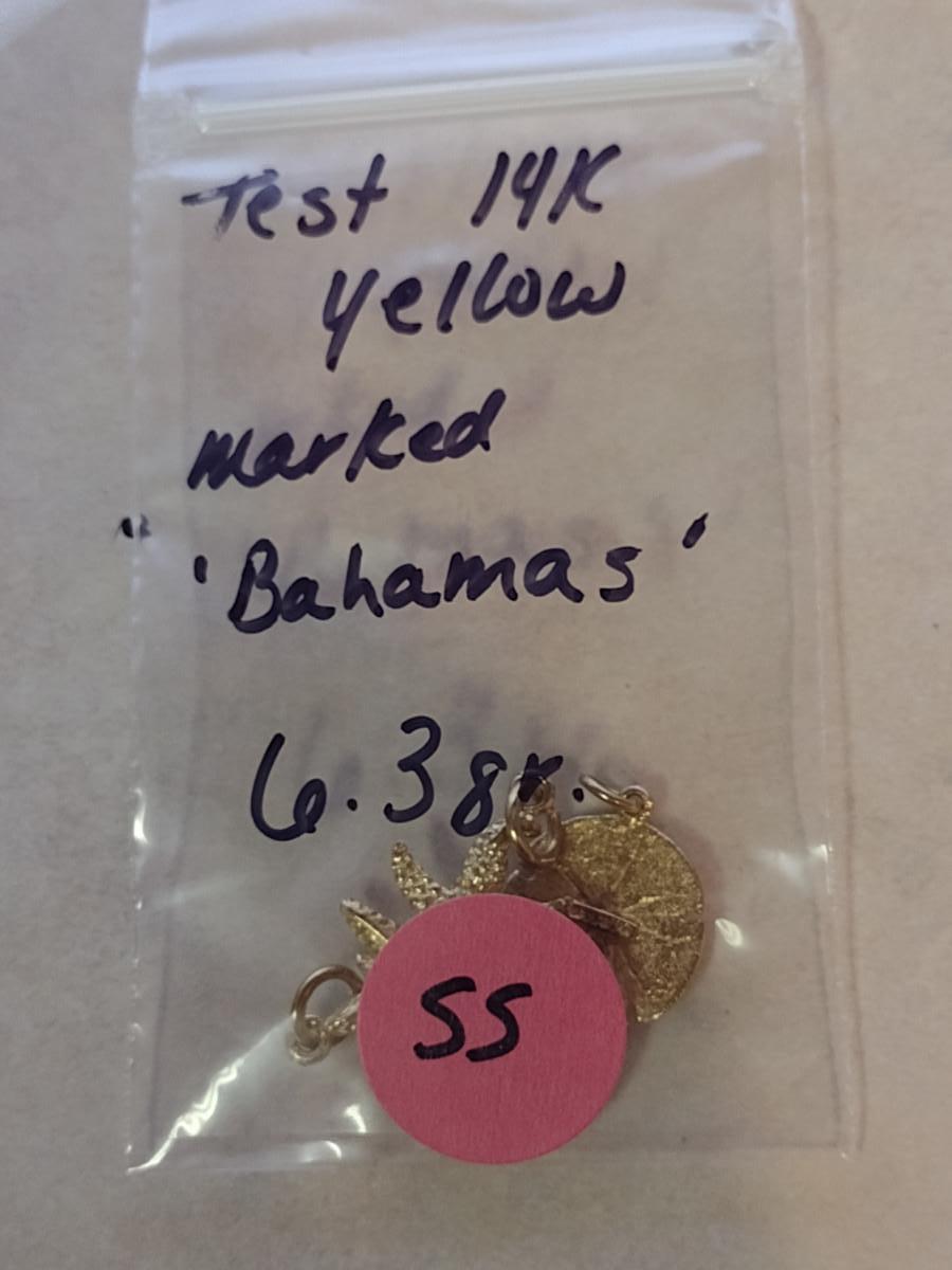14 Karat Yellow Gold Charms- Approx Total Weight 6.3 Grams (#55). Items are marked 'Bahamas' and acid test as 14 Karat. A 6.75% NC sales tax will be added to the jewelry invoice amount at the end of the sale. Coins are exempt from state sales tax.