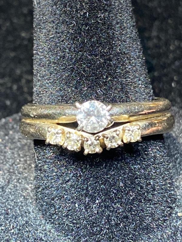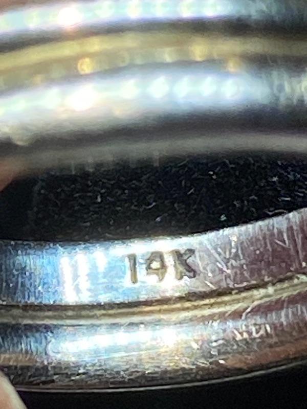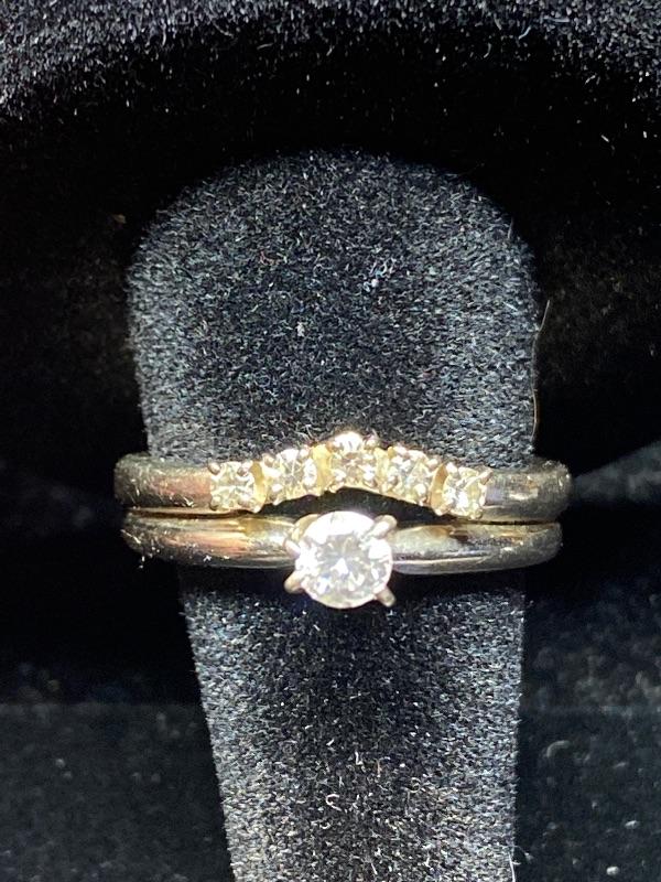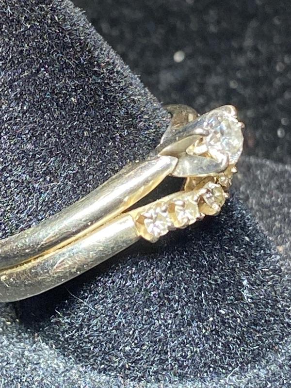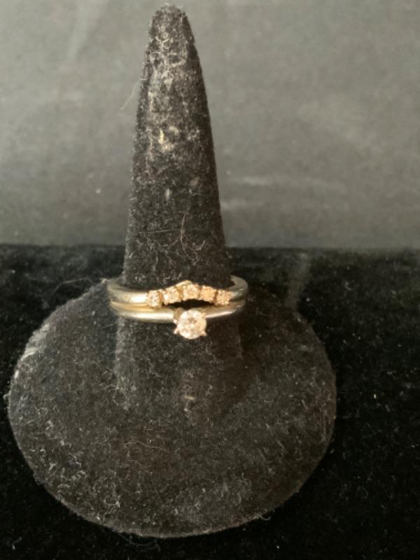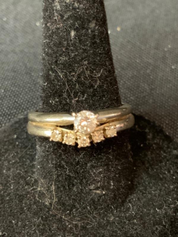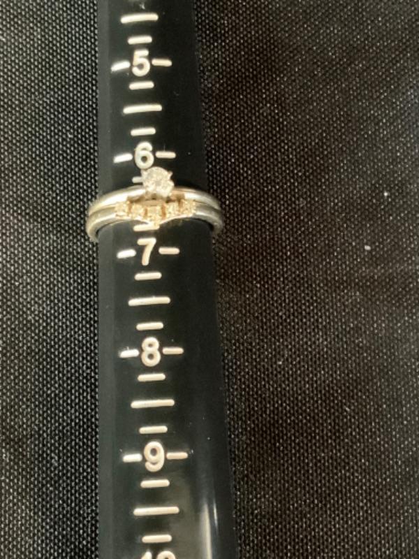 14kt white gold single cut .15 ctw diamonds + .20 ctw round brilliant diamond size 6 1/2 / Appraised Retail Value $910.00 Lot 2839