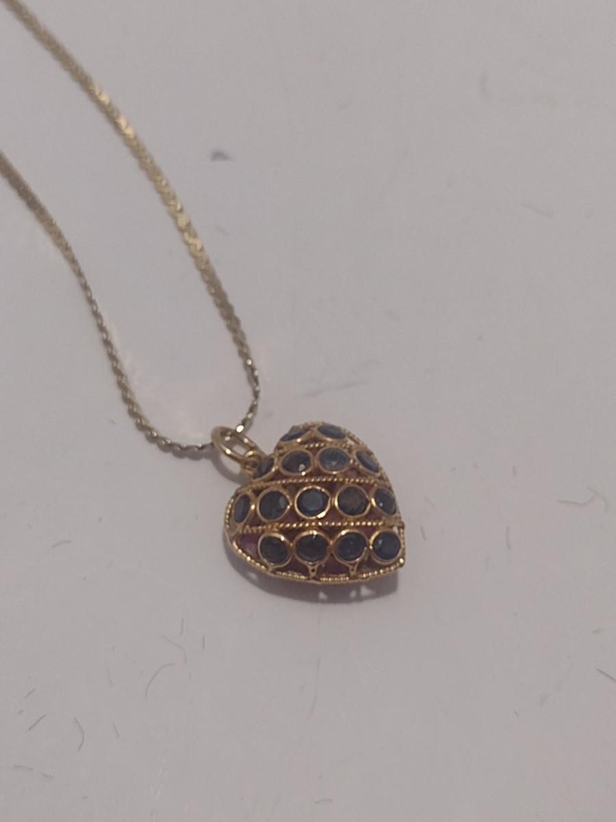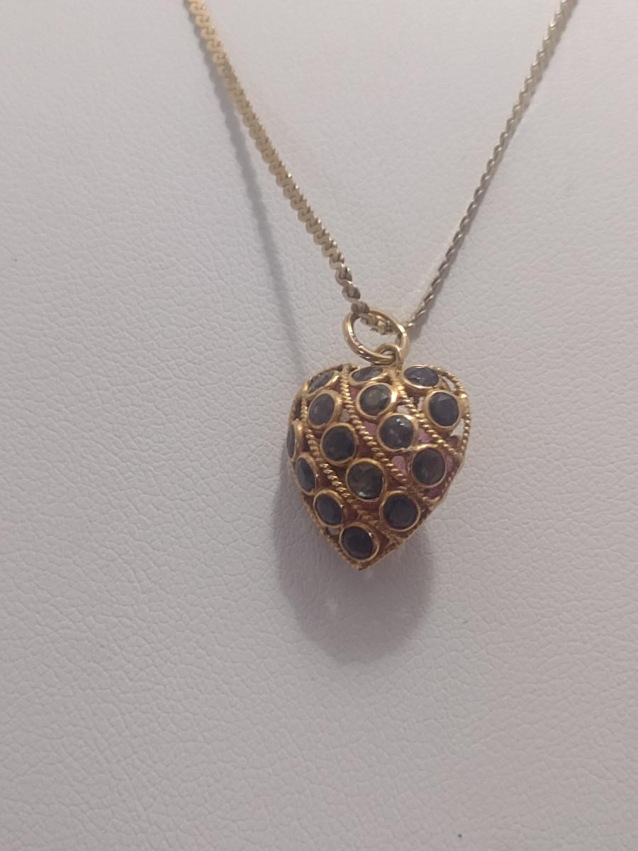 14 Karat Yellow Gold Fancy 'S' Link Necklace with Dual Gemstone Heart Pendant- Approx Total Weight 3.92 Grams (#19)