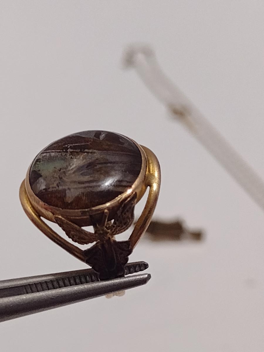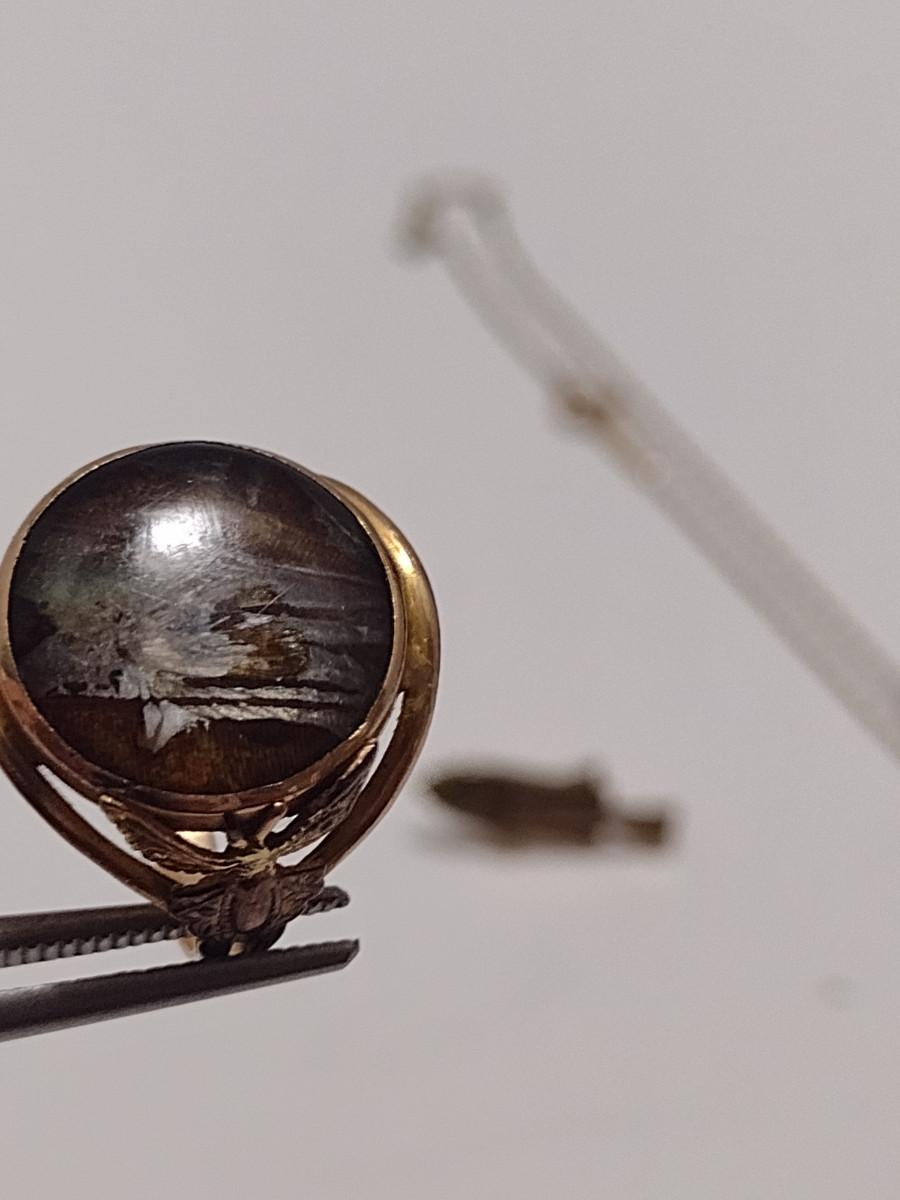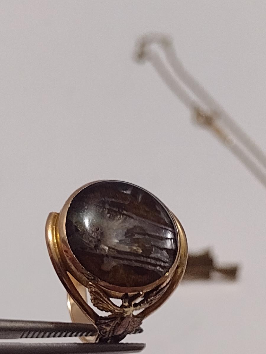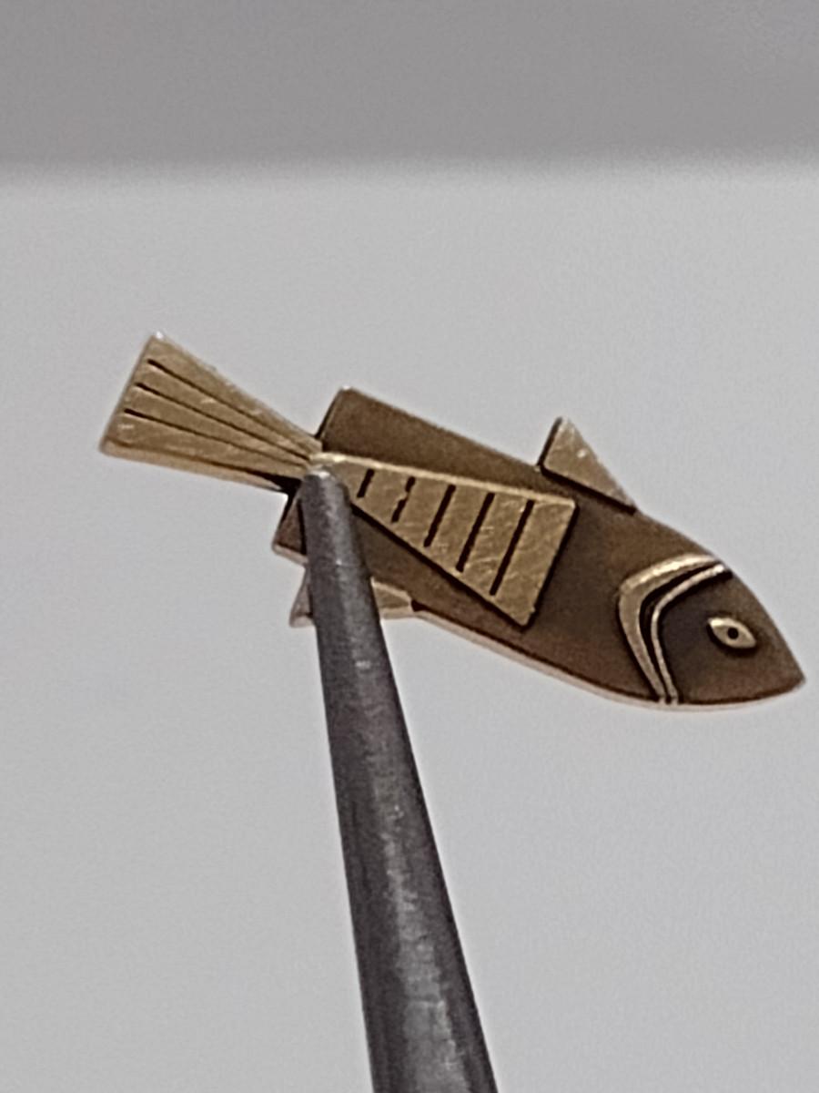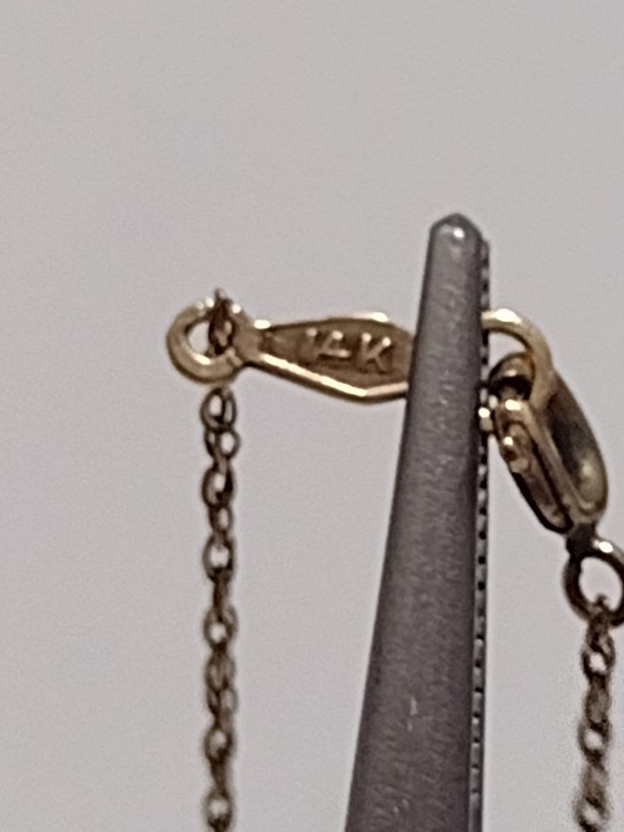 14 Karat Yellow Gold Jewelry- Broken/Incomplete- Approx Total Weight 5.13 Grams (#27). Necklace and ring are broken. Ring has gemstone included in weight shown. Fish tie pin has no back.