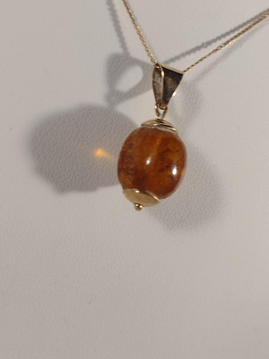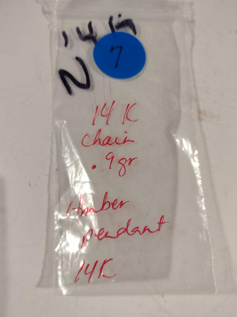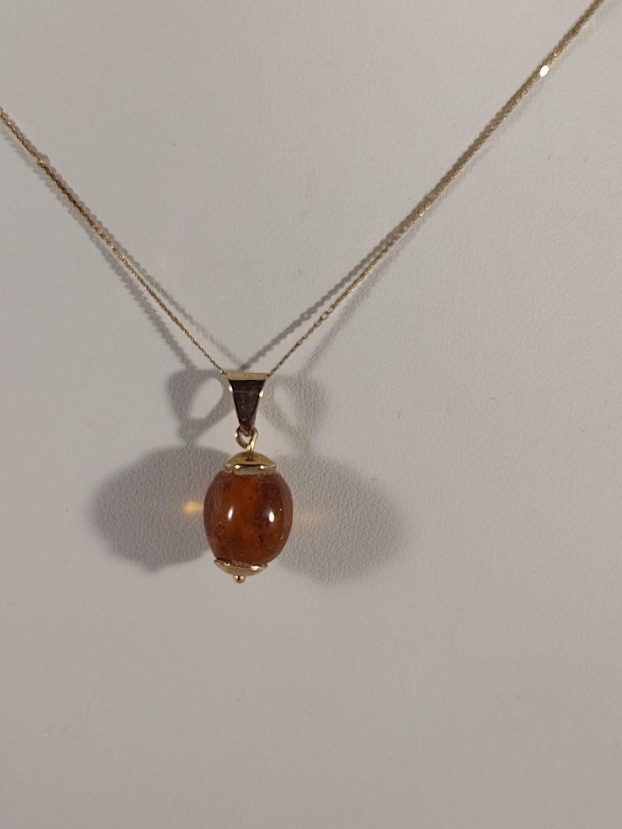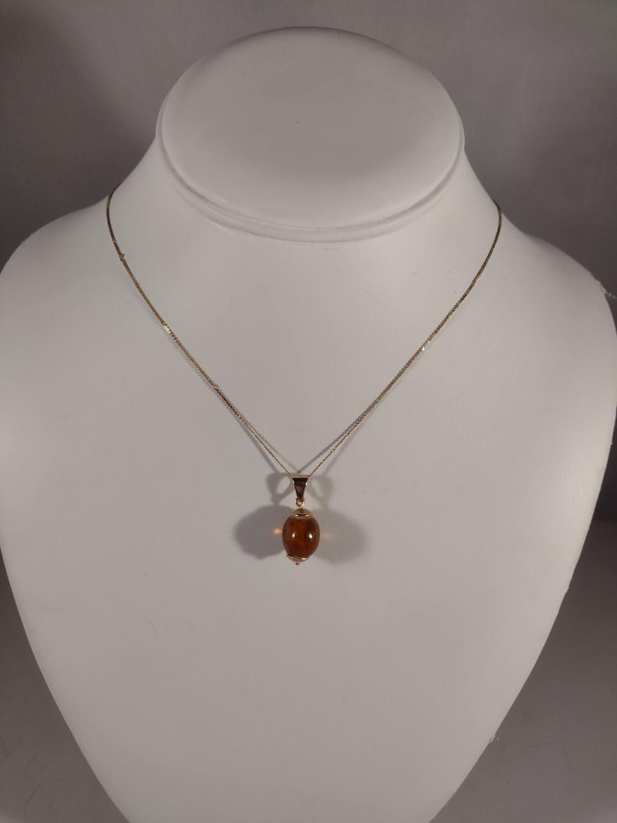 14 Karat Yellow Gold Necklace with Amber Pendant (#7)