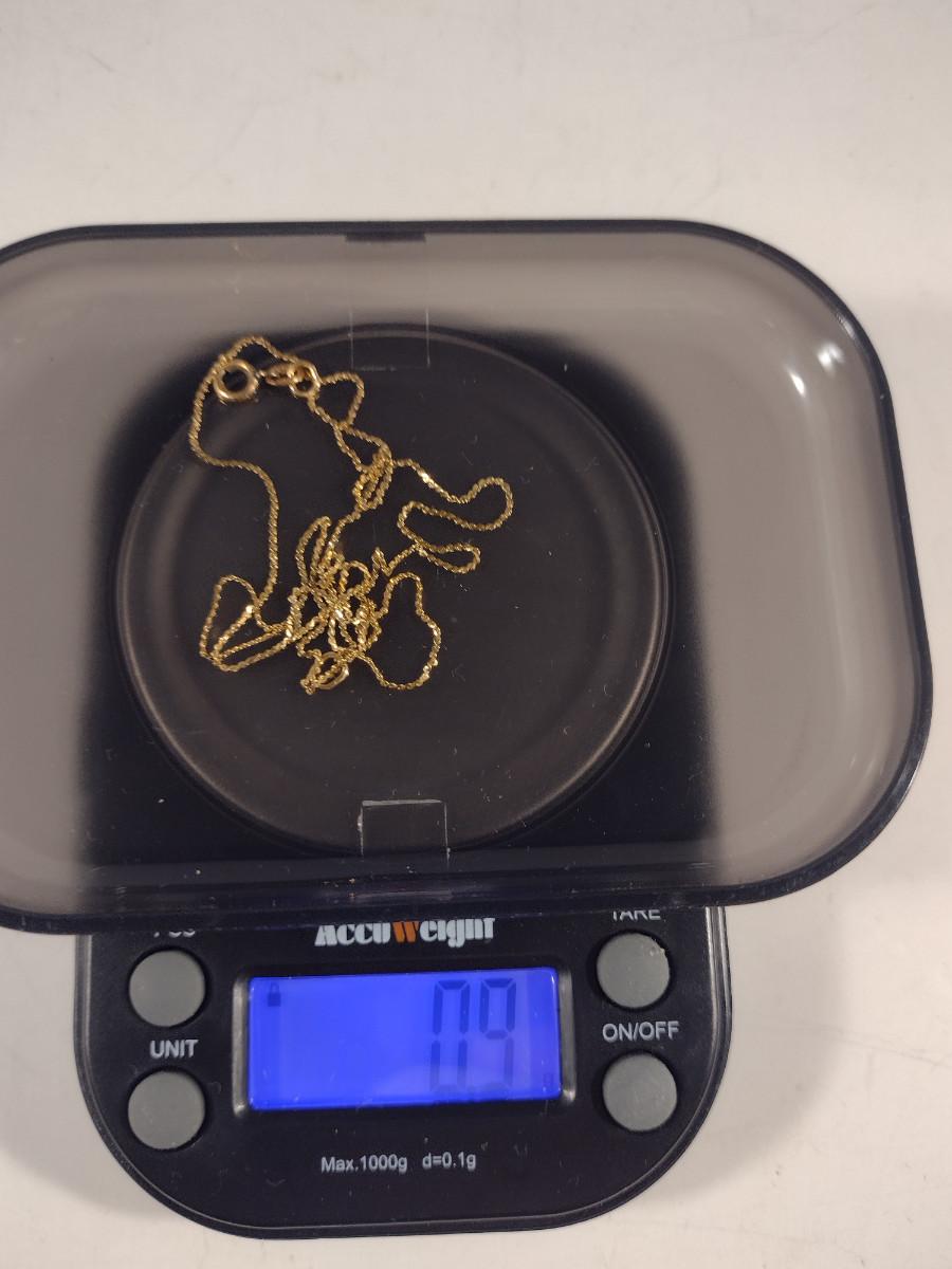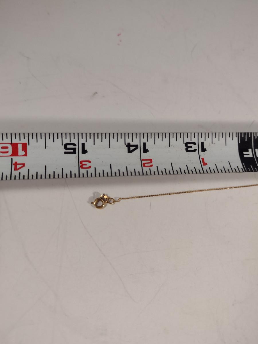 14 Karat Yellow Gold Necklace with Amber Pendant (#7) Bezel for pendant is marked 14K. Necklace is approx 15" and .9 grams.