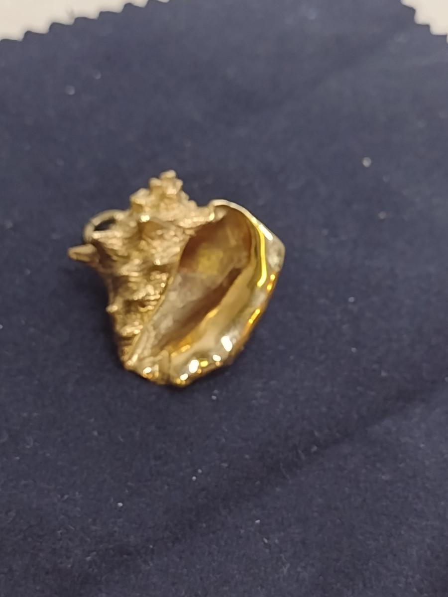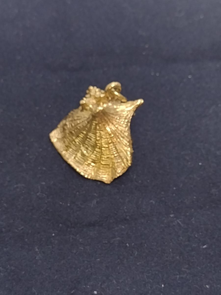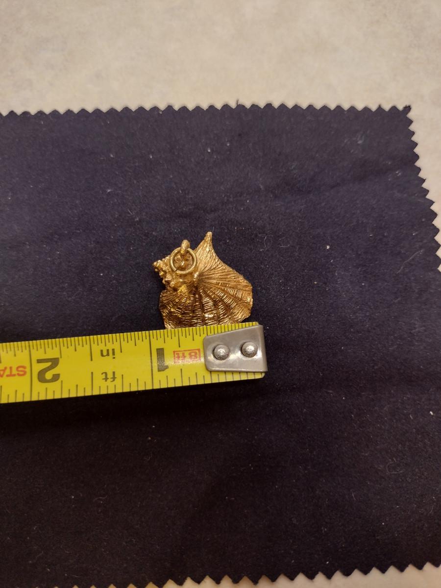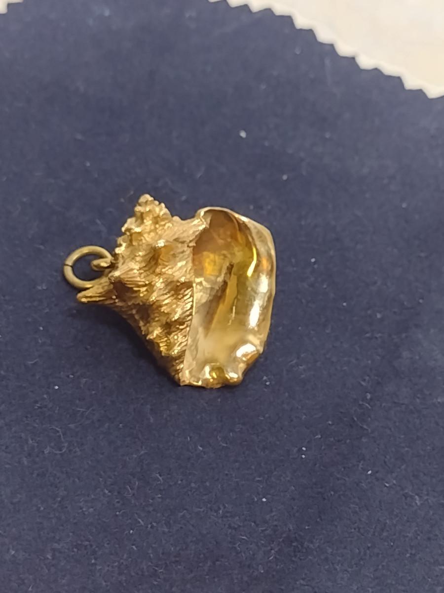 14 Karat Yellow Gold Pendant-Conch Shell Design- Approx Total Weight 10.8 Grams (#60). Item acid tests as 14 Karat. A 6.75% NC sales tax will be added to the jewelry invoice amount at the end of the sale. Coins are exempt from state sales tax.