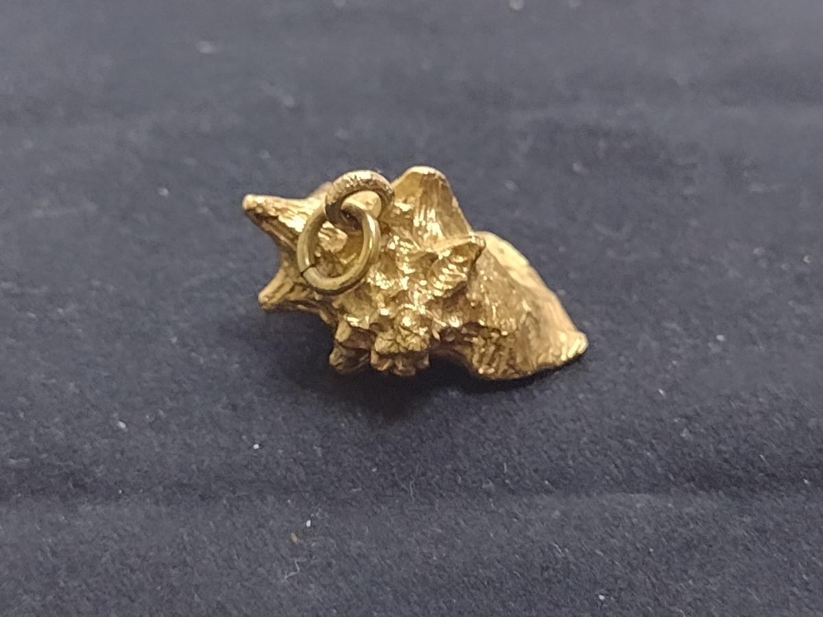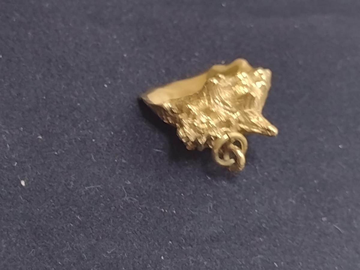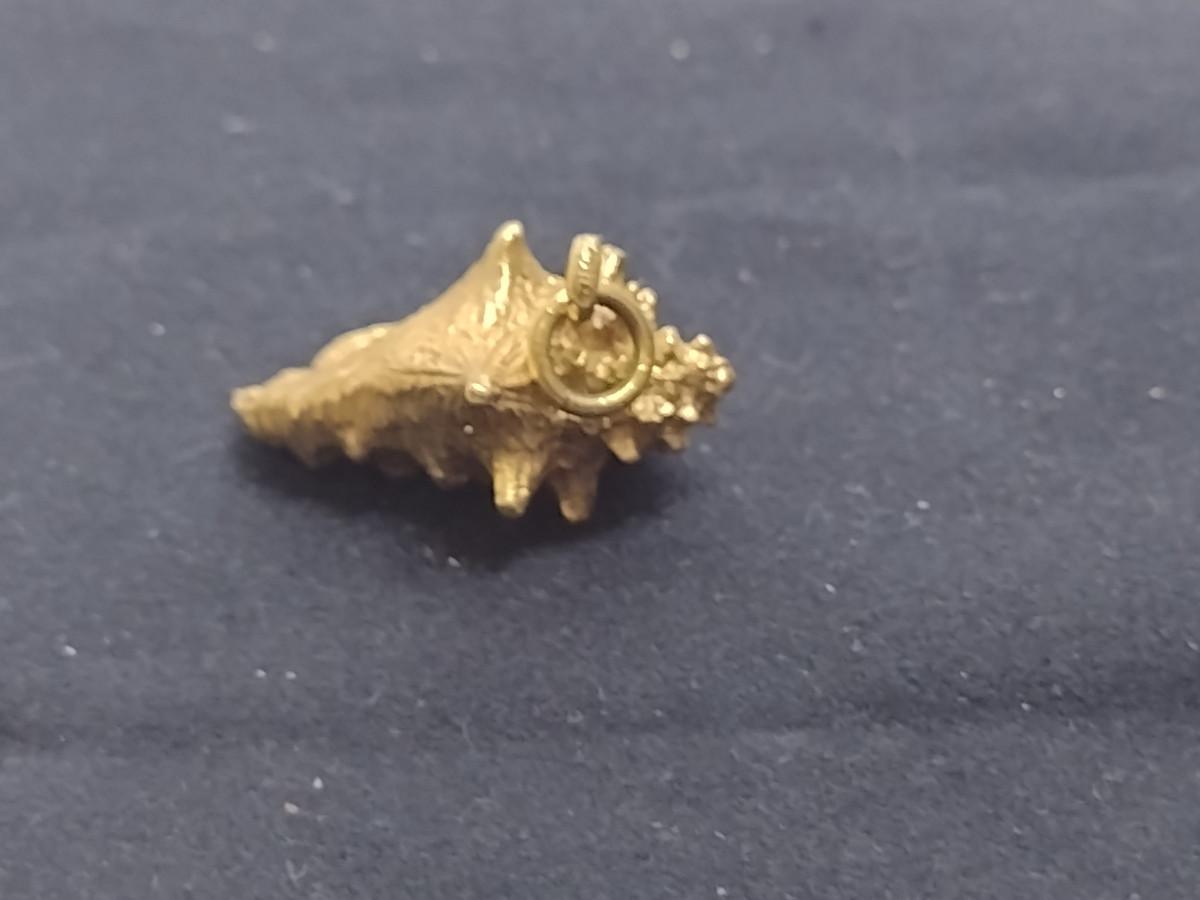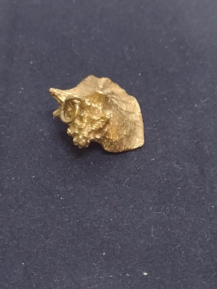 14 Karat Yellow Gold Pendant-Conch Shell Design- Approx Total Weight 10.8 Grams (#60). Item acid tests as 14 Karat. A 6.75% NC sales tax will be added to the jewelry invoice amount at the end of the sale. Coins are exempt from state sales tax.