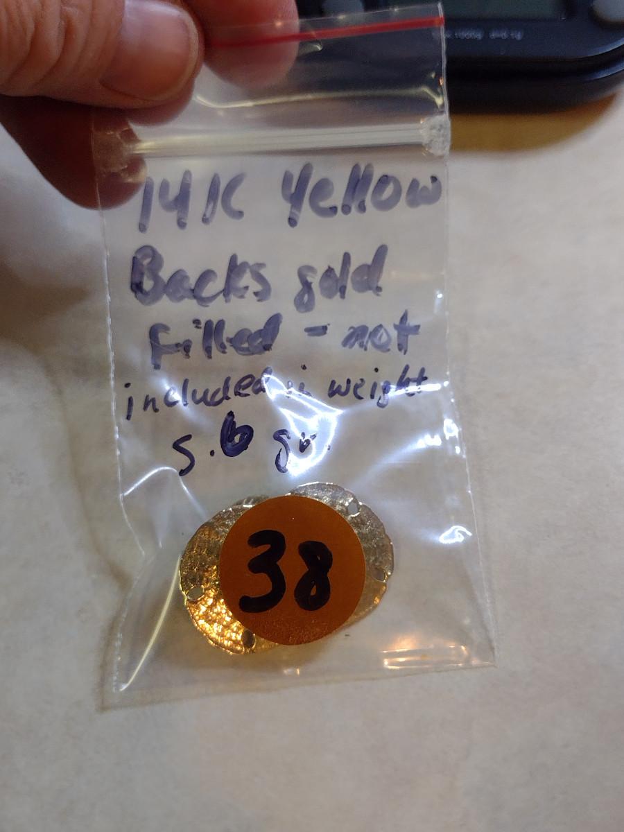 14 Karat Yellow Gold Post Earrings- Approx Total Weight 5.6 Grams (#38). Backs for earrings are only gold filled and are not included in weight. A 6.75% NC sales tax will be added to the jewelry invoice amount at the end of the sale. Coins are exempt from state sales tax.