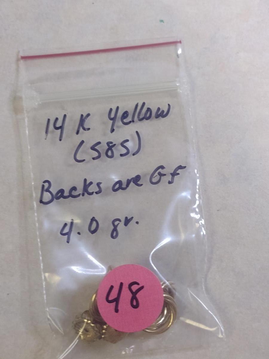 14 Karat Yellow Gold Post Earrings- Approx Total Weight 4.0 Grams (#48). Item is marked 585. Backs are only gold filled and are not included in weight. A 6.75% NC sales tax will be added to the jewelry invoice amount at the end of the sale. Coins are exempt from state sales tax.