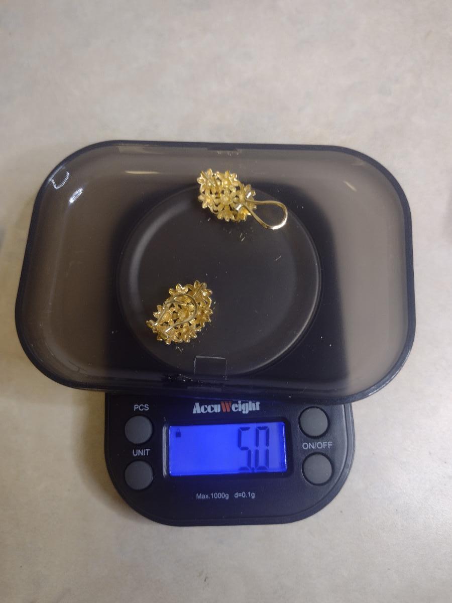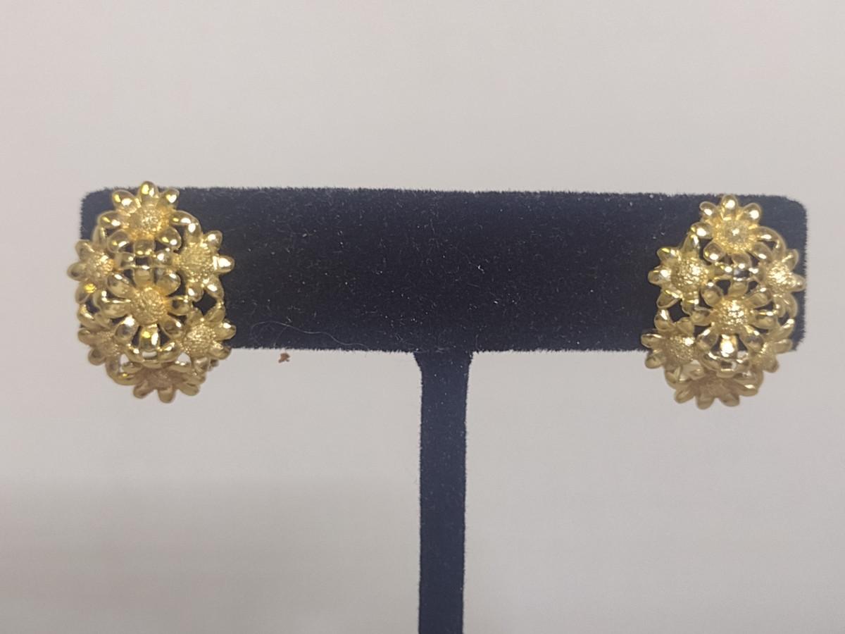 14 Karat Yellow Gold Post Earrings- Approx Total Weight 5.0 Grams (#50). Item acid tests as 14 Karat. Earrings have posts with clip backs. A 6.75% NC sales tax will be added to the jewelry invoice amount at the end of the sale. Coins are exempt from state sales tax.