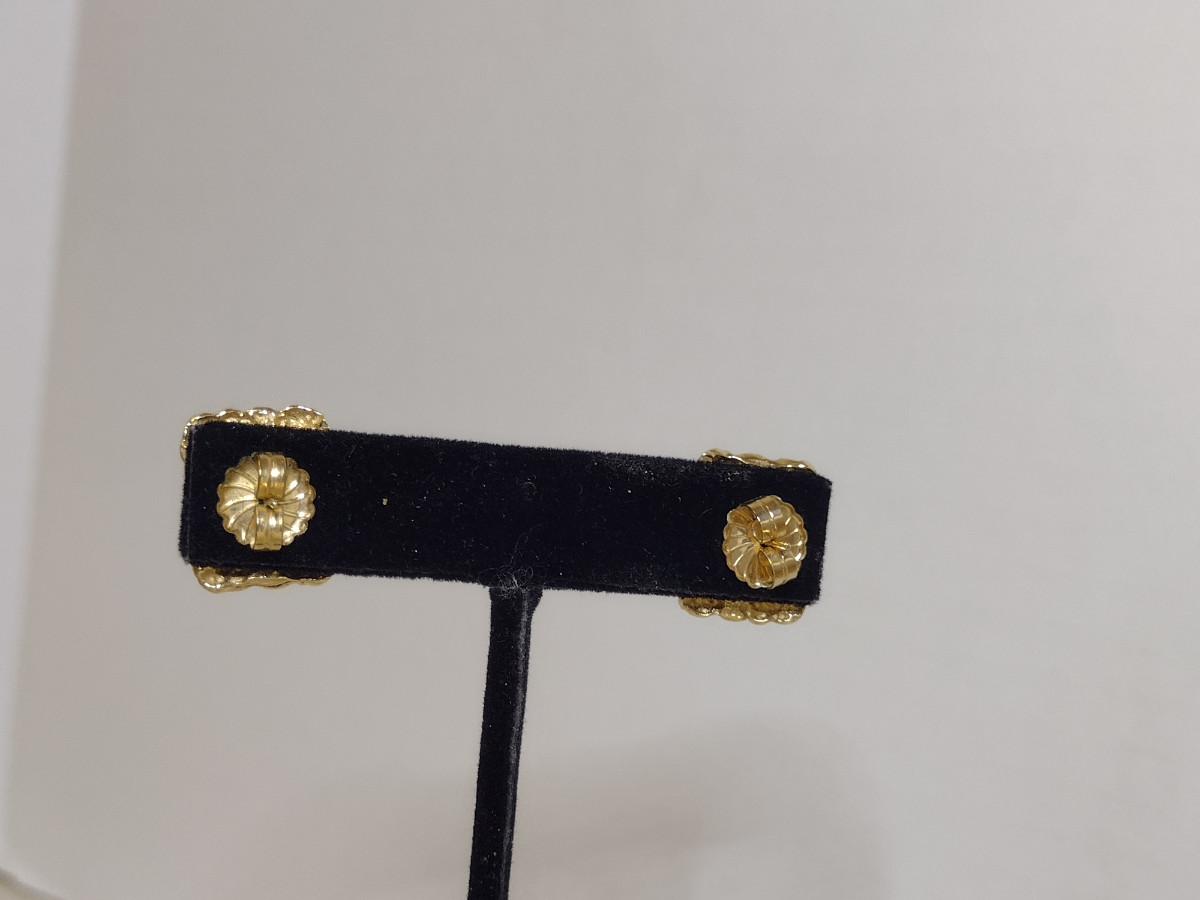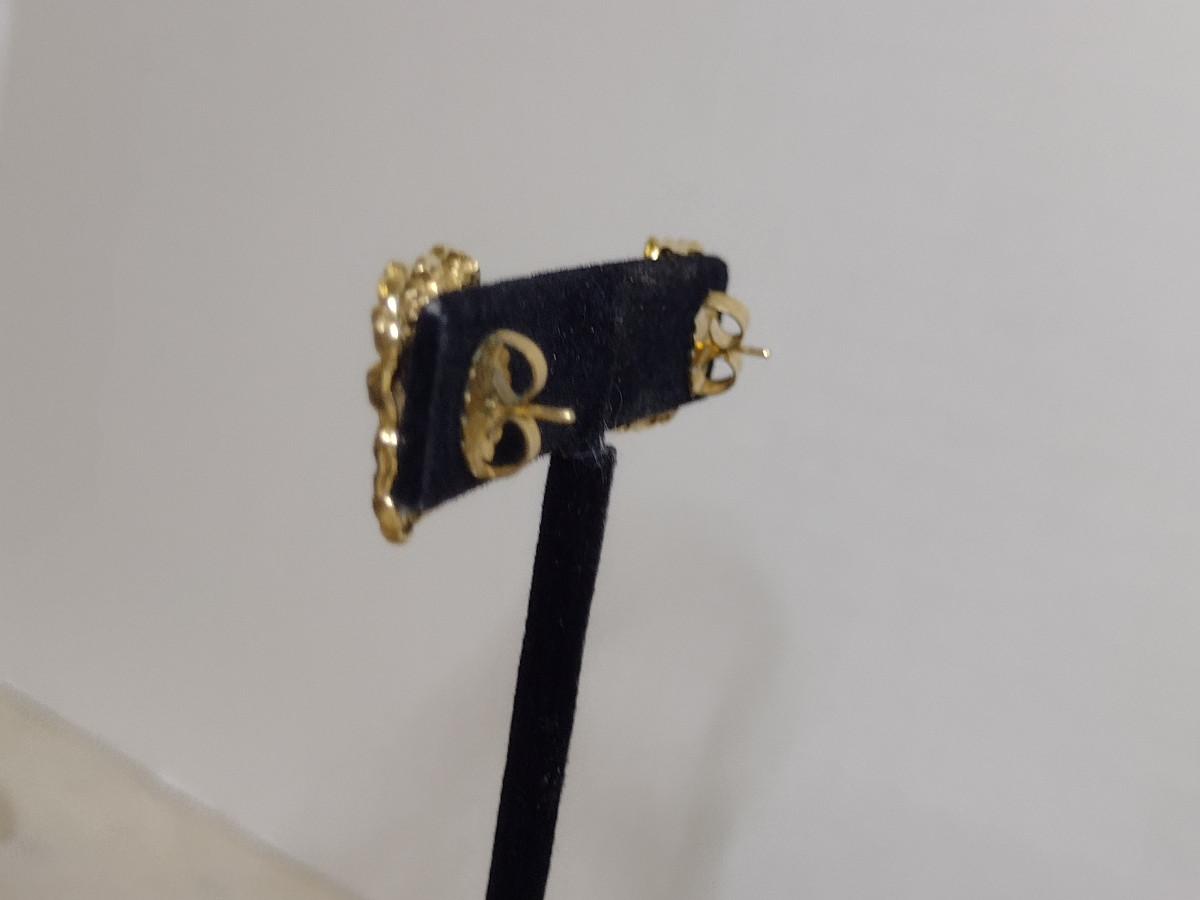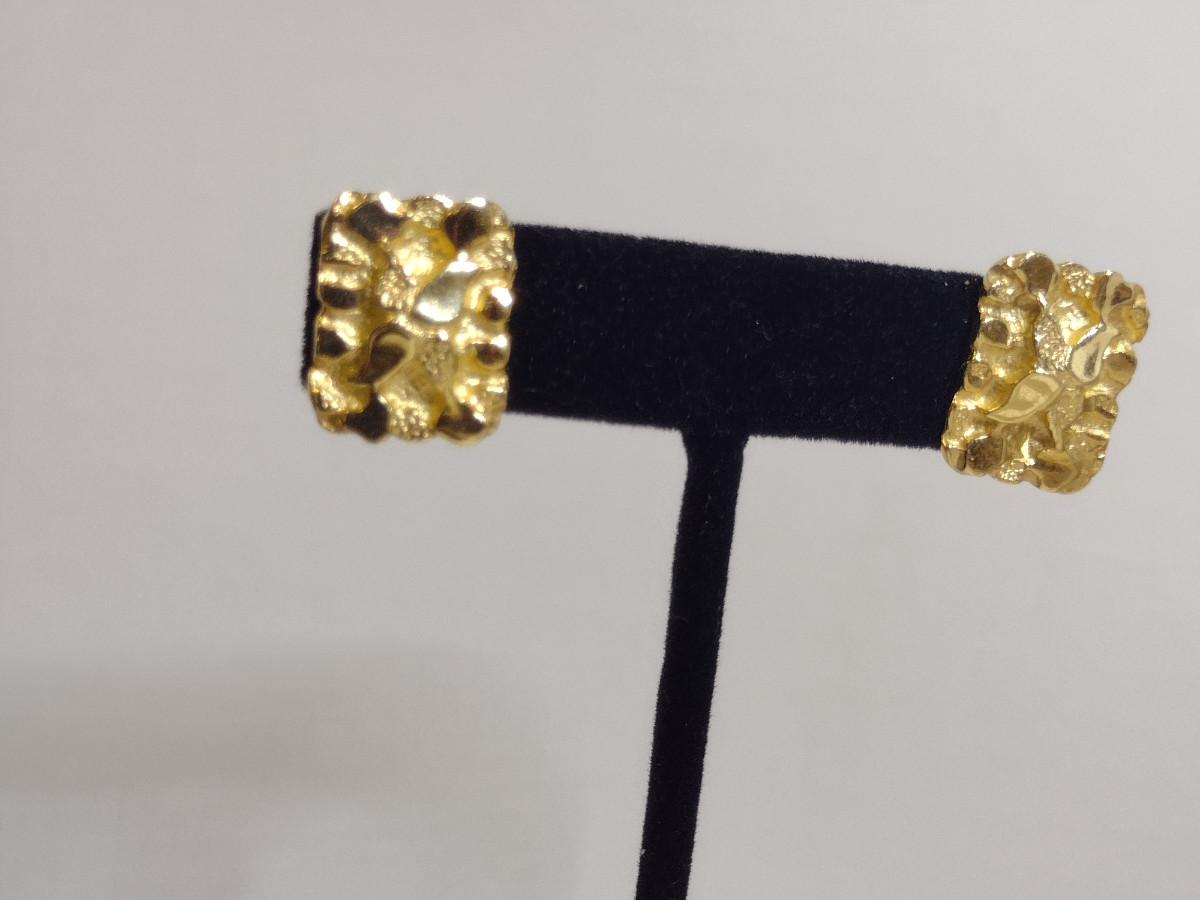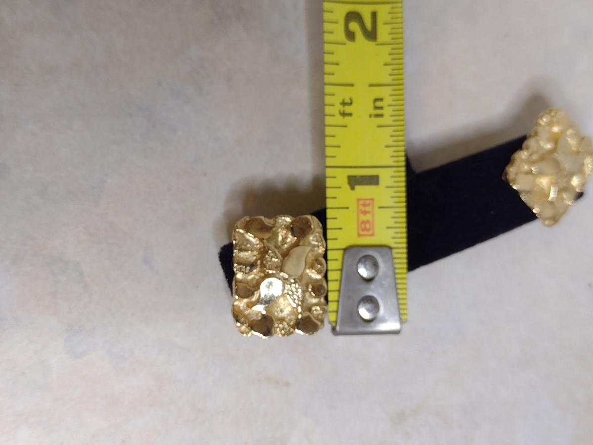 14 Karat Yellow Gold Post Earrings- Gold Nugget Design- Approx Total Weight 7.3 Grams (#51). Item is marked 'Bahamas' and acid tests as 14 Karat. Backs are only gold filled, and are not included in weight. A 6.75% NC sales tax will be added to the jewelry invoice amount at the end of the sale. Coins are exempt from state sales tax.