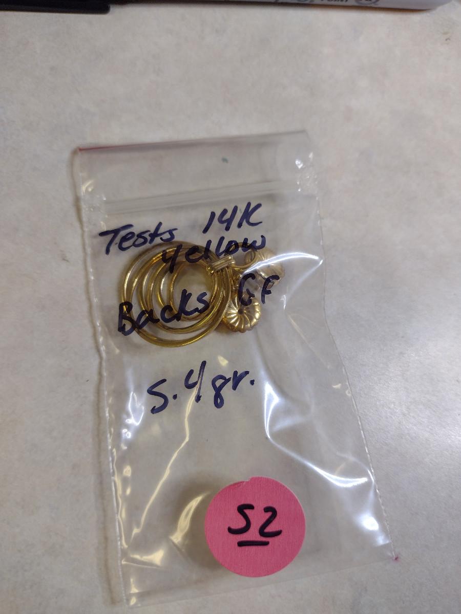 14 Karat Yellow Gold Post Earrings- Approx Total Weight 5.4 Grams (#52). Item acid tests as 14 Karat. Backs are only gold filled and are not included in weight. A 6.75% NC sales tax will be added to the jewelry invoice amount at the end of the sale. Coins are exempt from state sales tax.