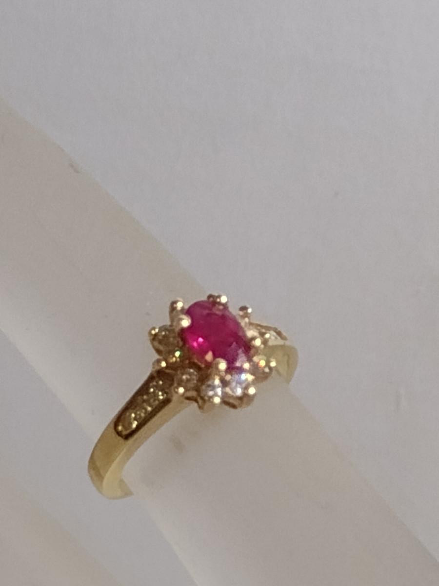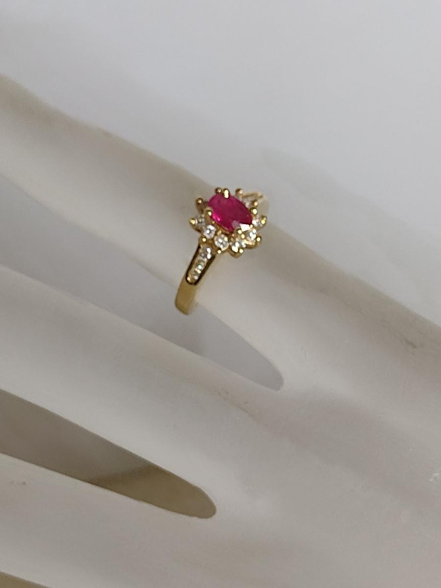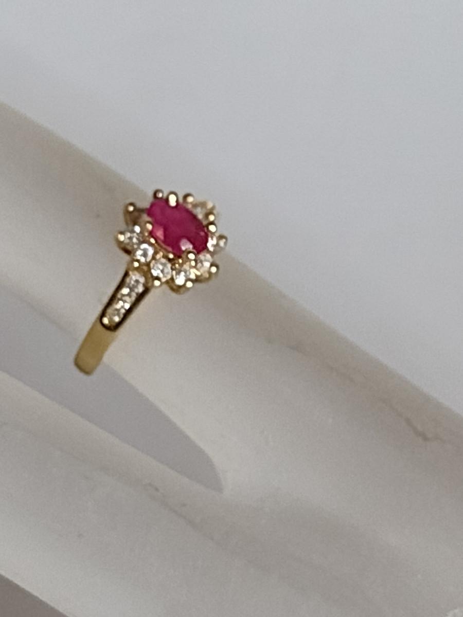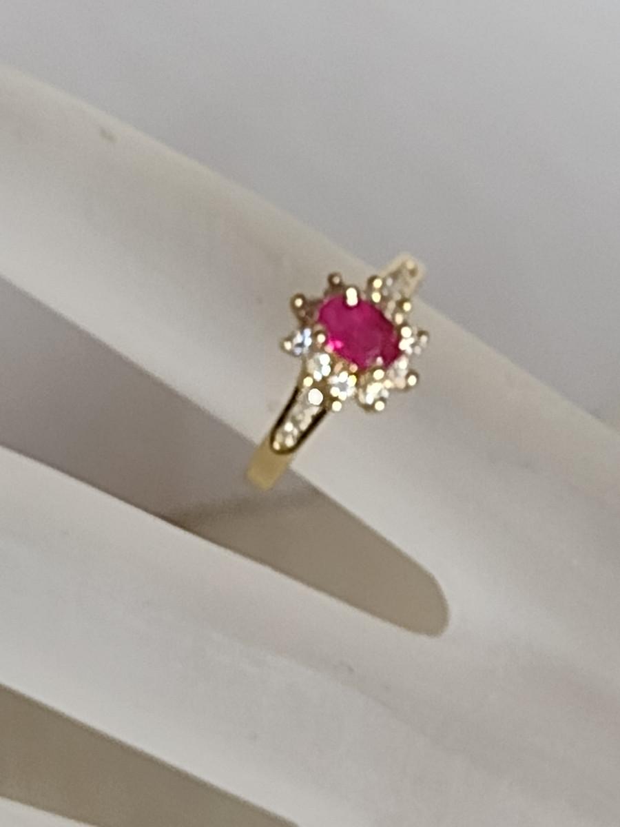 14 Karat Yellow Gold Ring with Gemstone and Diamonds- Approx Size 3 1/4 and Total Weight 3.2 Grams (#59). Item acid tests as 14 Karat. Diamonds test positive with Gemoro. Gemstone is possibly ruby. A 6.75% NC sales tax will be added to the jewelry invoice amount at the end of the sale. Coins are exempt from state sales tax.