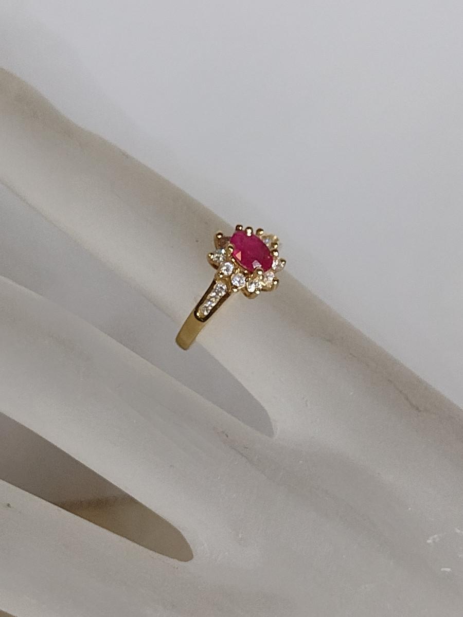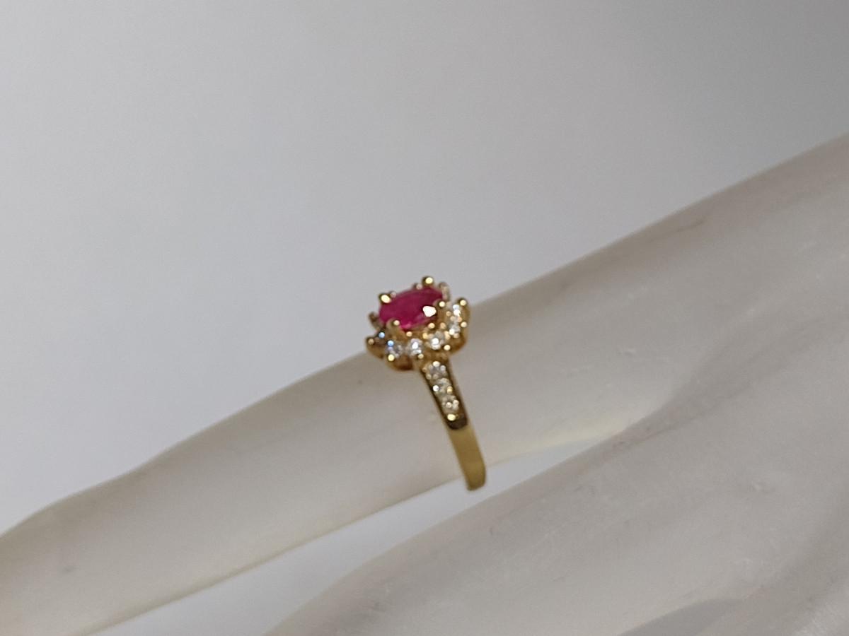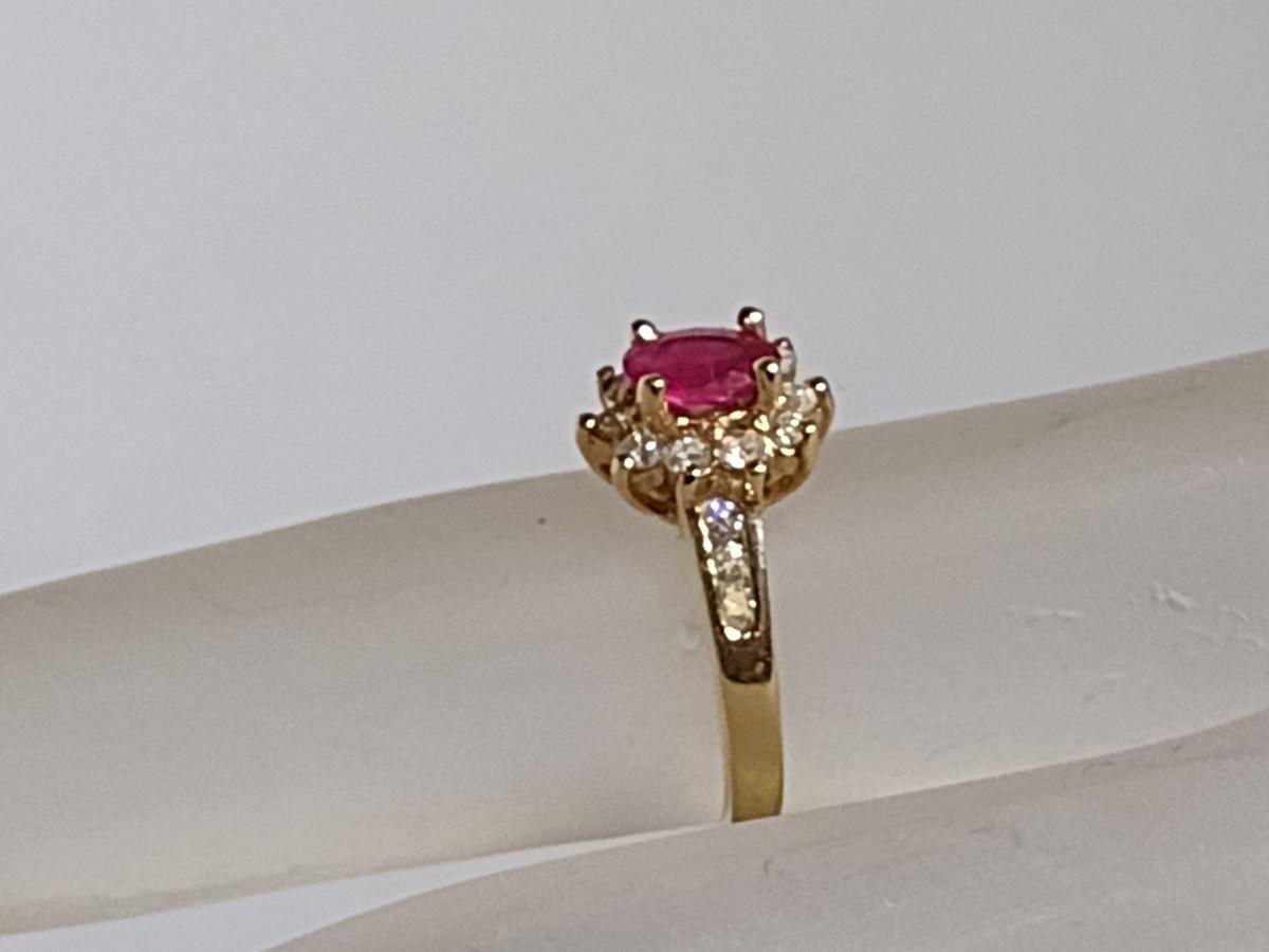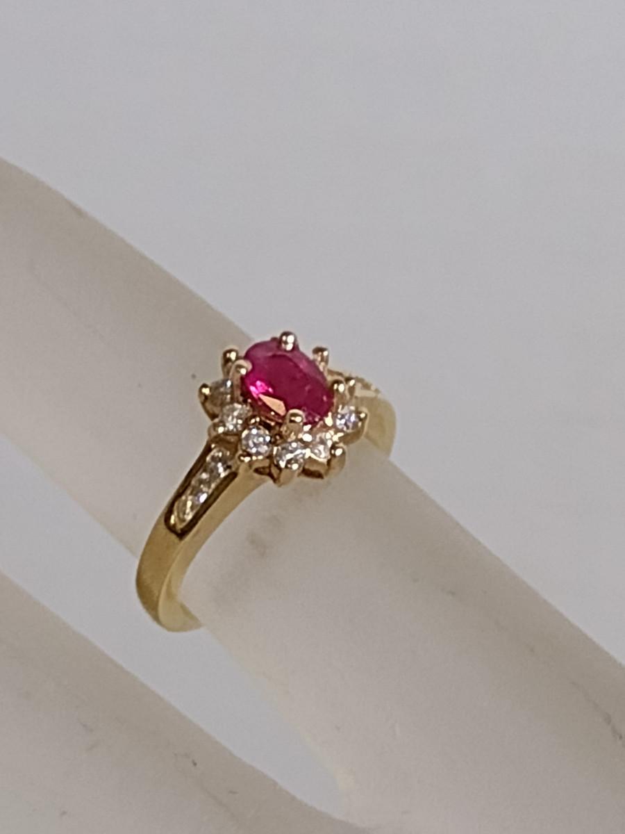 14 Karat Yellow Gold Ring with Gemstone and Diamonds- Approx Size 3 1/4 and Total Weight 3.2 Grams (#59). Item acid tests as 14 Karat. Diamonds test positive with Gemoro. Gemstone is possibly ruby. A 6.75% NC sales tax will be added to the jewelry invoice amount at the end of the sale. Coins are exempt from state sales tax.