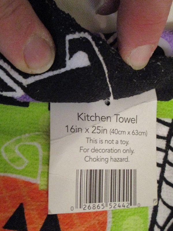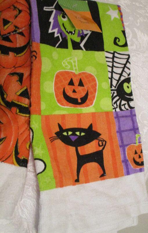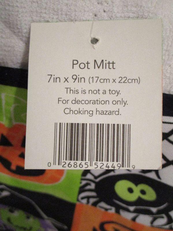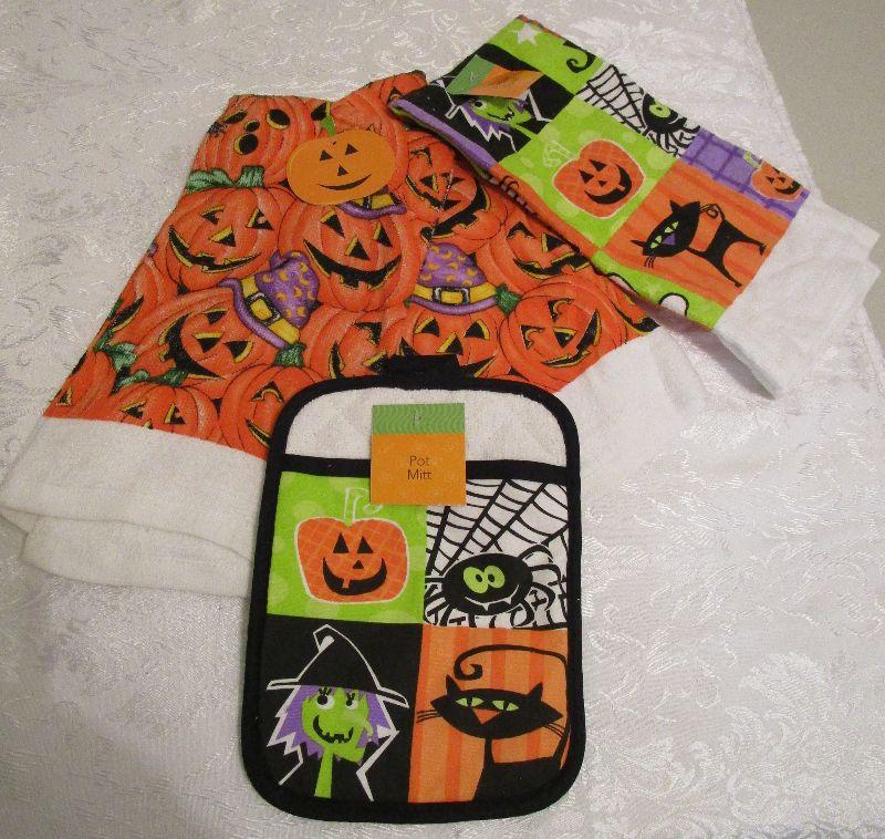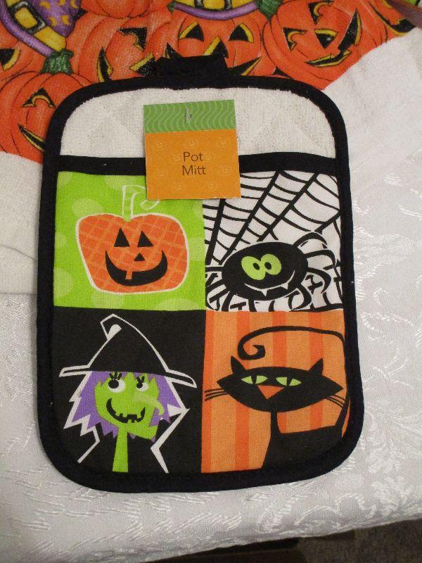 Halloween Three Newstandard size kitchen towels with tags and Pot Mitt with tags