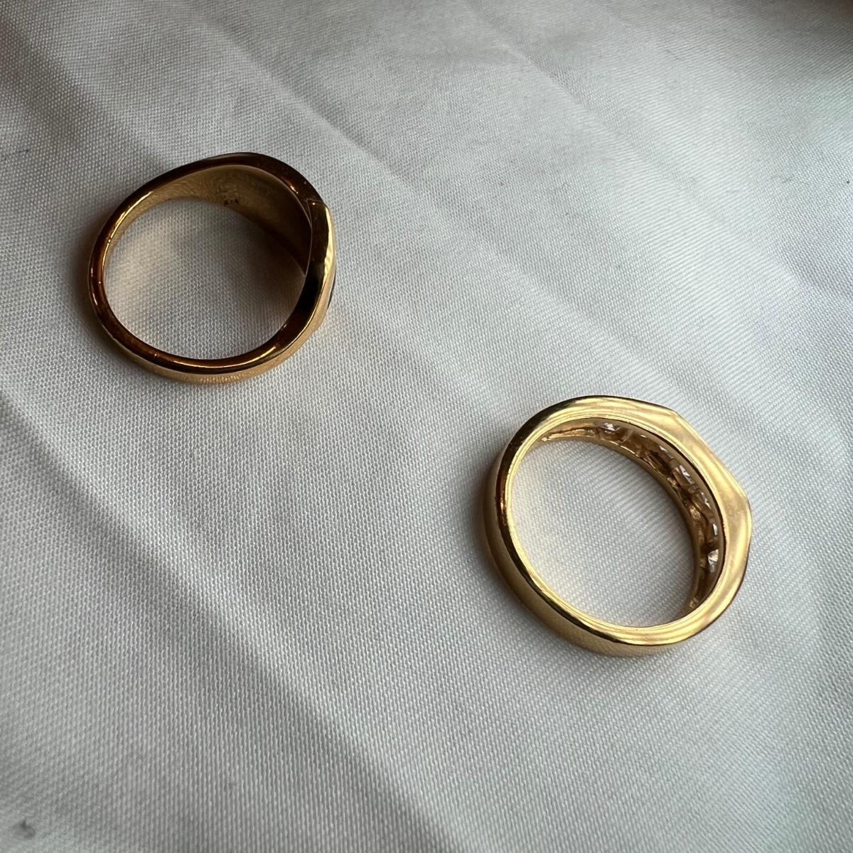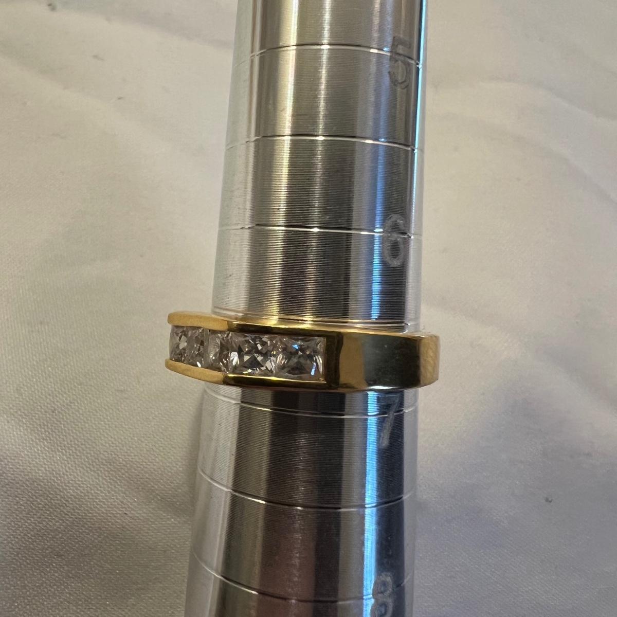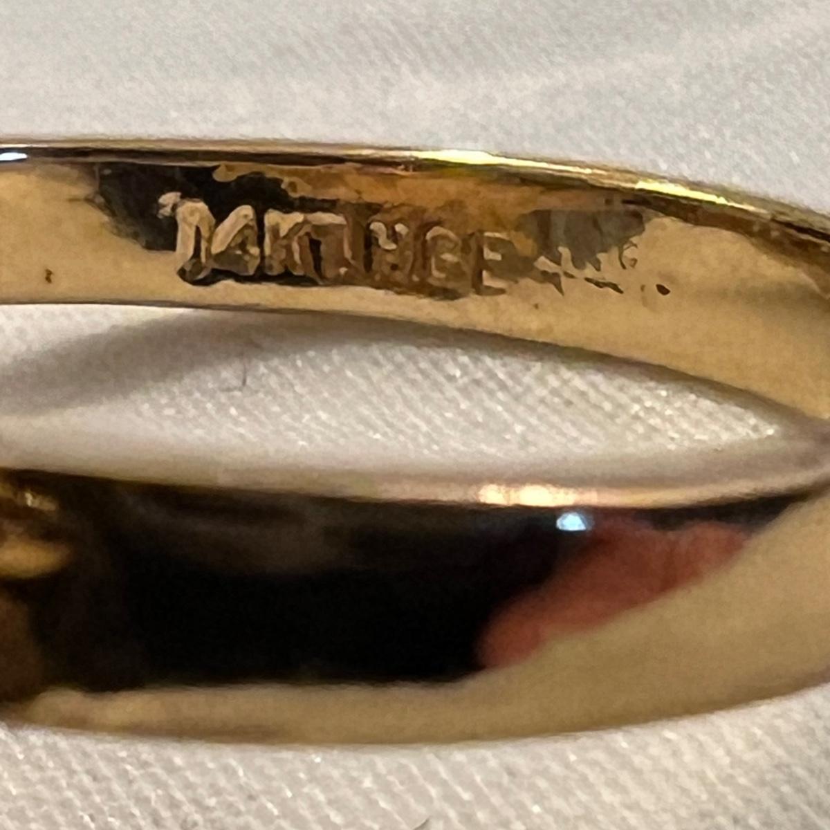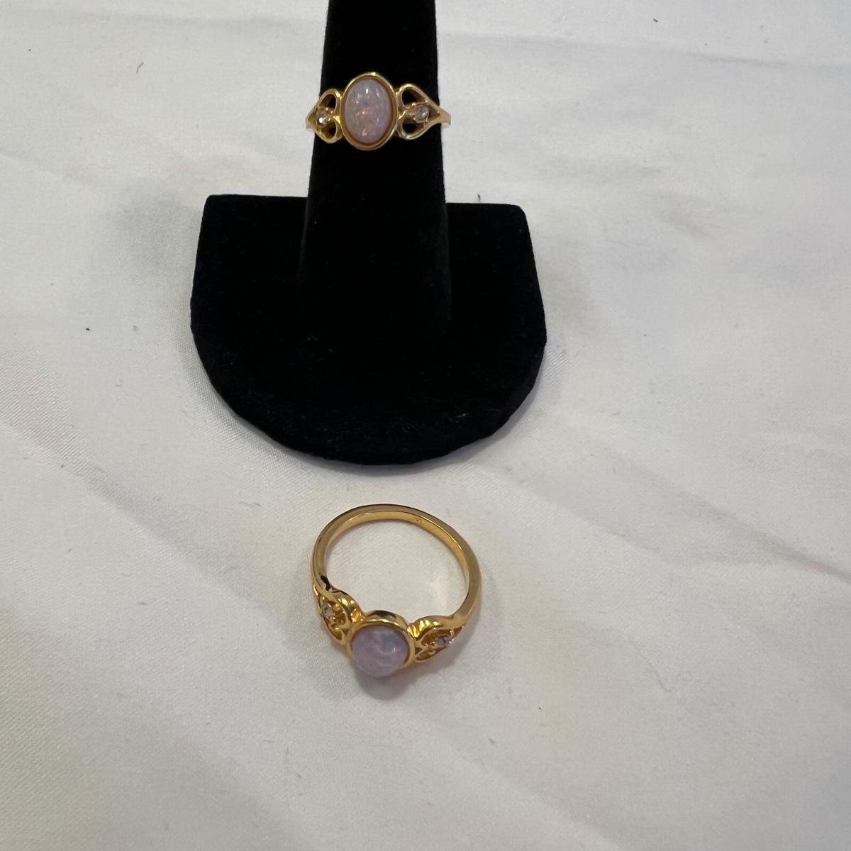 This stunning 14K gold plated ring has a cluster of four clear stones and six purple stones. Clear stones did not test positive on our diamond tester, and the other stones appear to be amethyst but we cannot verify them. Lot also includes 11 more rings that are but one gold colored metal and most have faux gem stones. See images for full inventory and sizes.