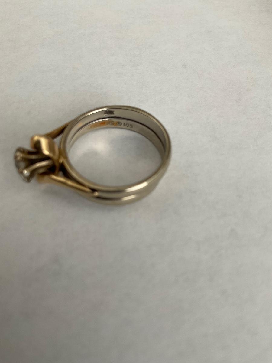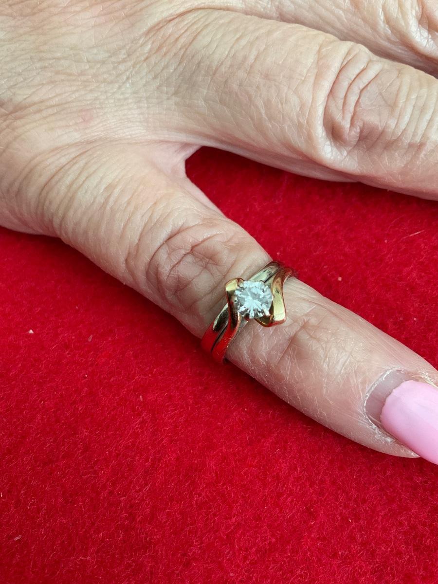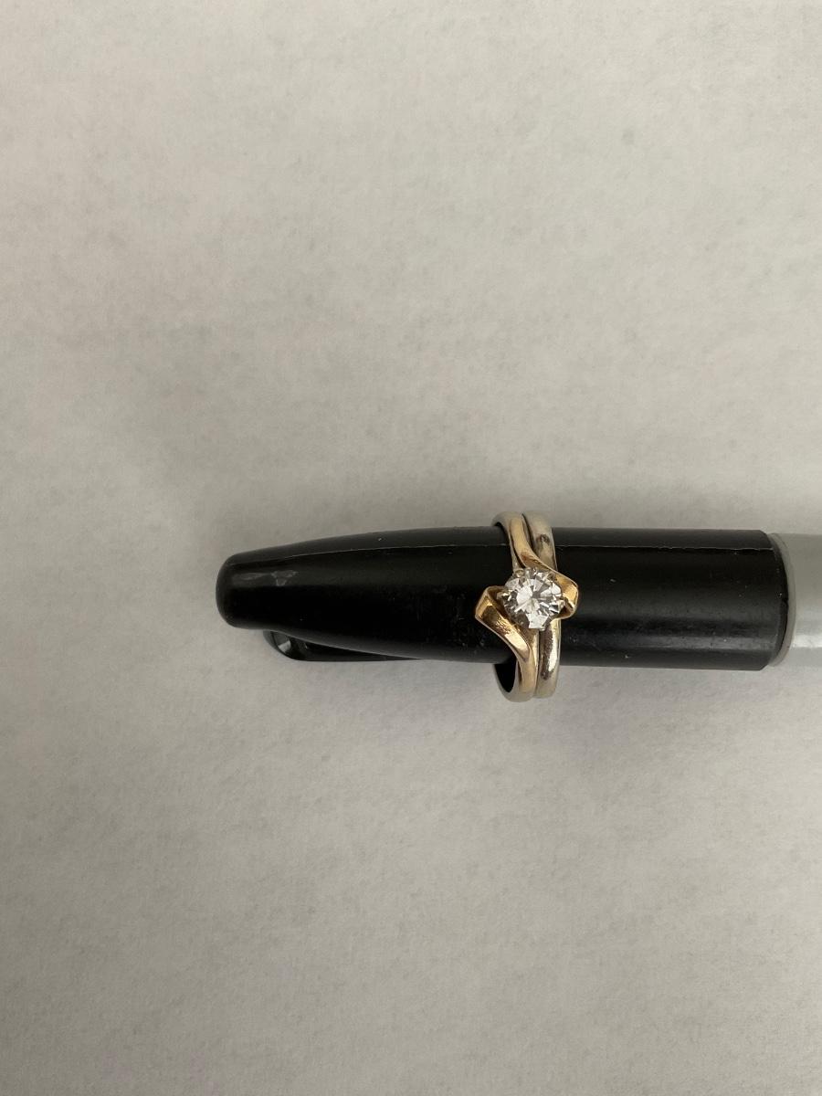 I believe it’s a size 4 and 1/3 k diamond. Beautiful
