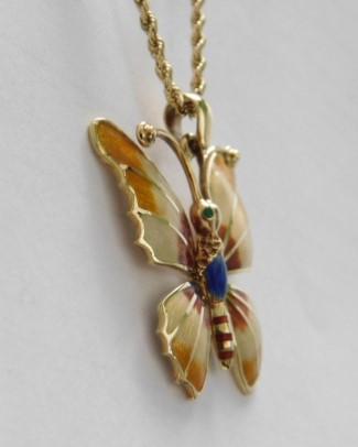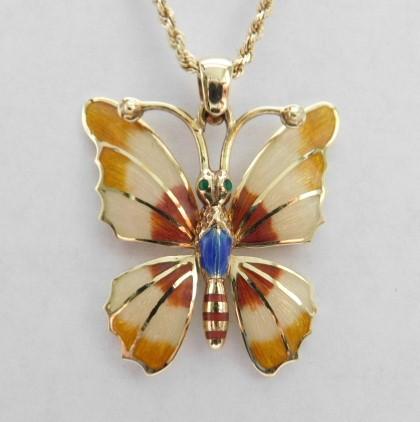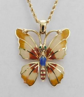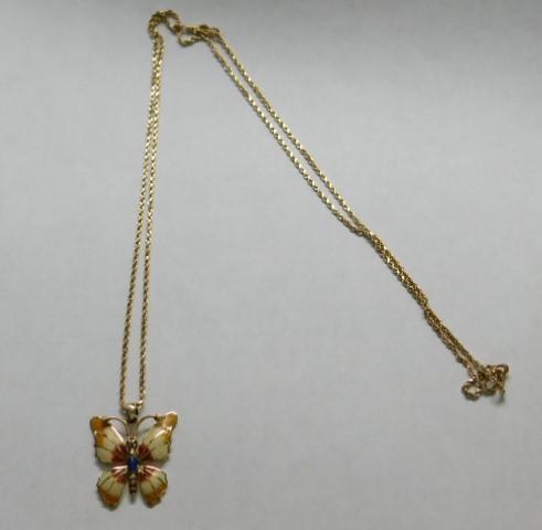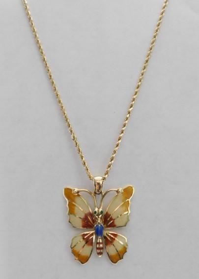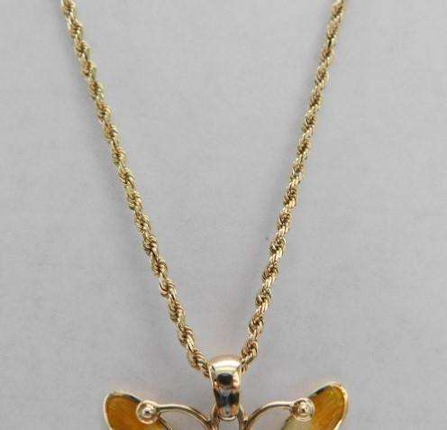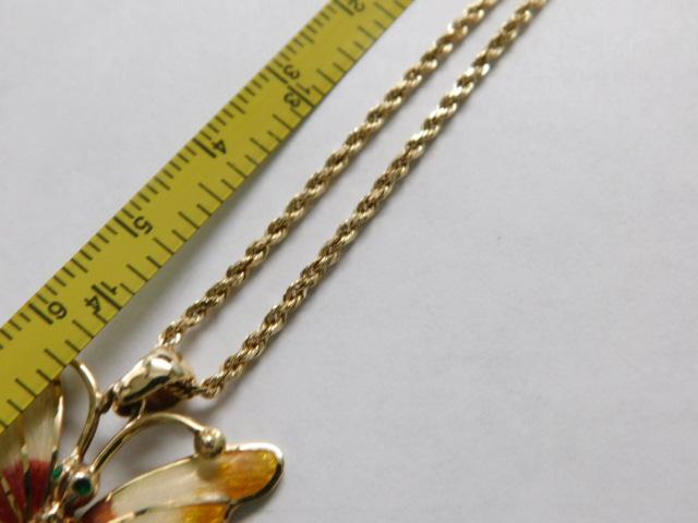 14 KT Gold Enamel Butterfly Pendant on 14KT 30" Chain 14.1 grams Appraised value $850-$1100