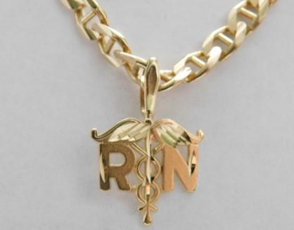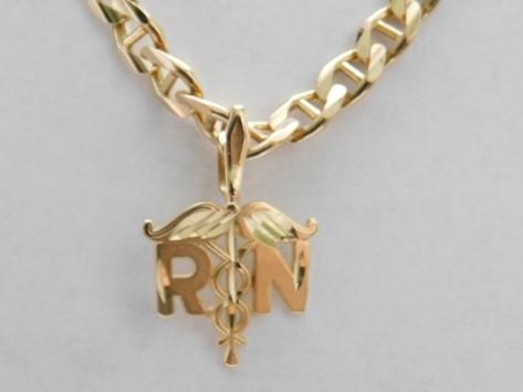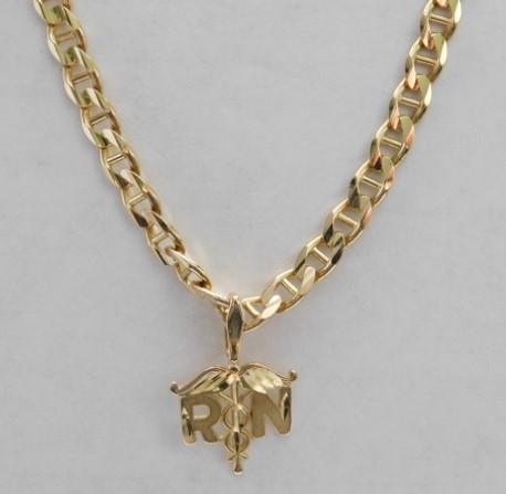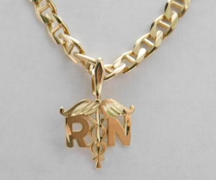 14 KT Gold Registered Nurse Pendant on 14KT Gold 20" Mariner Link Chain 14grams