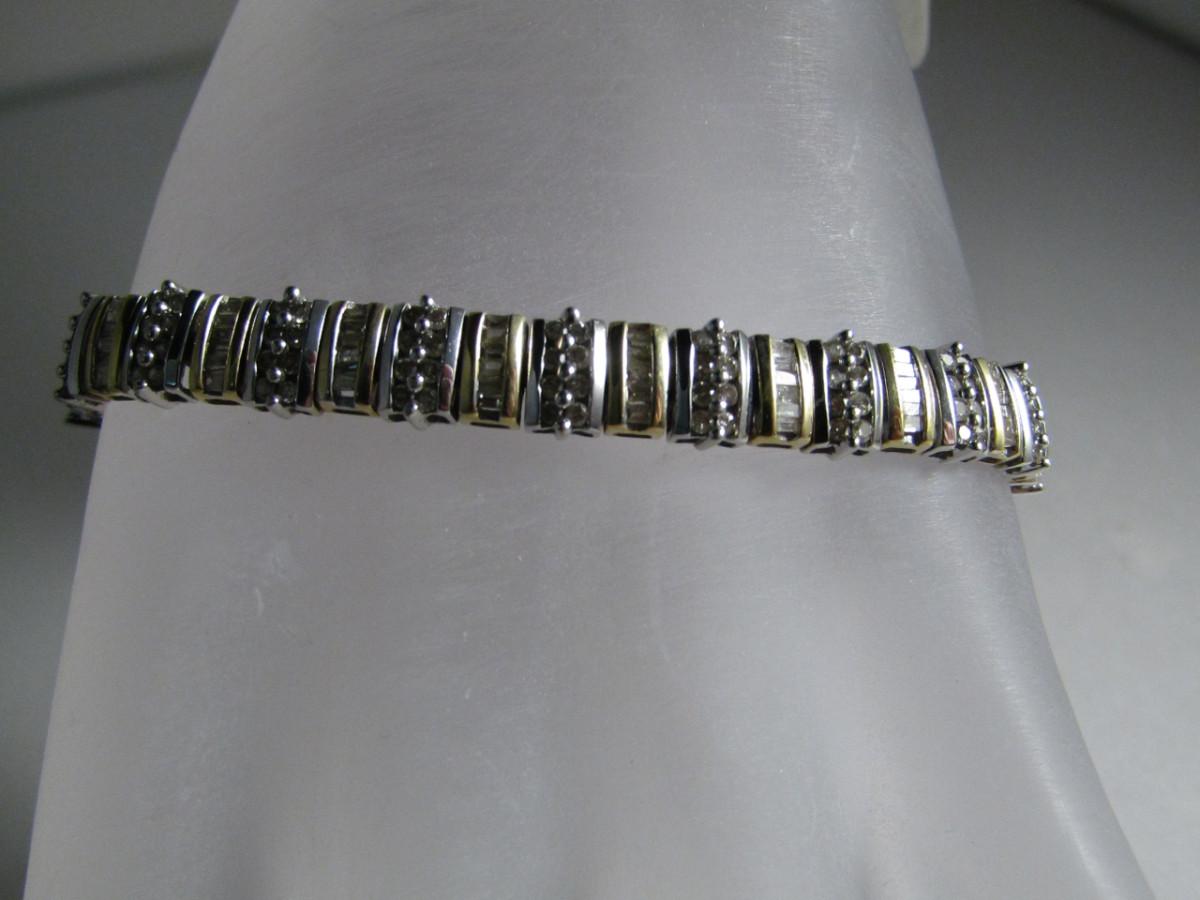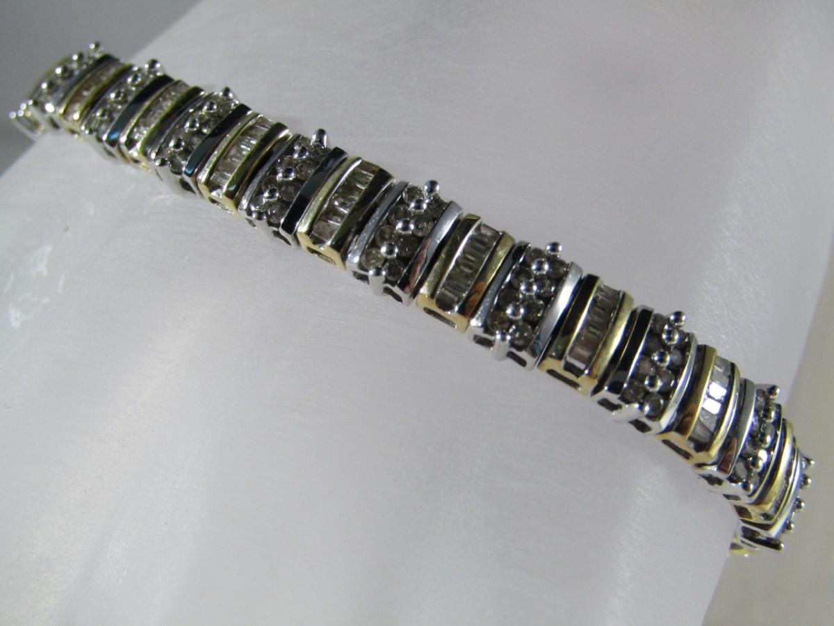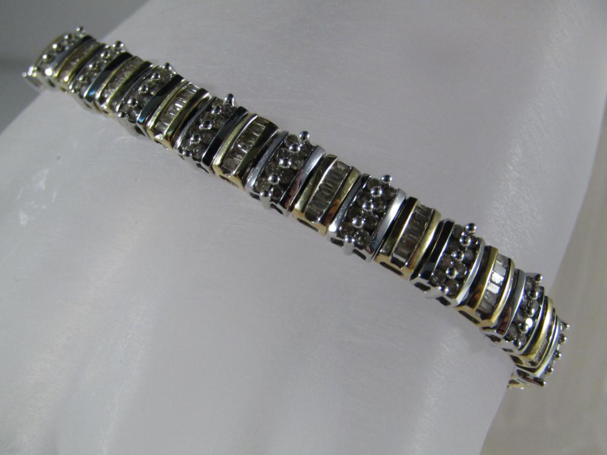 14 Kt Yellow and White Gold and Diamond Bracelet- Approx Weight 11.5 dwt (#24). Bracelet measures approx 7 1/4 inches. Please see attached assessment for information regarding stone quality and weight.