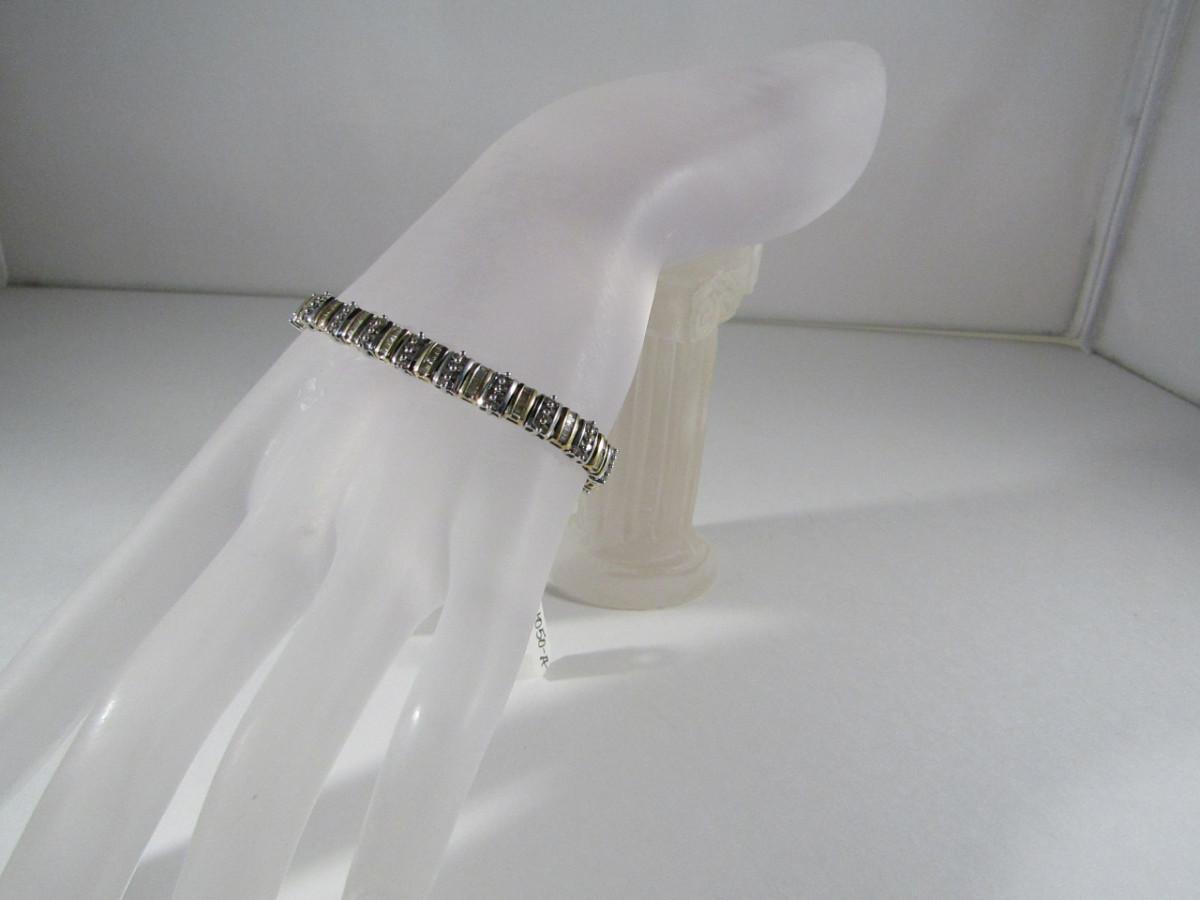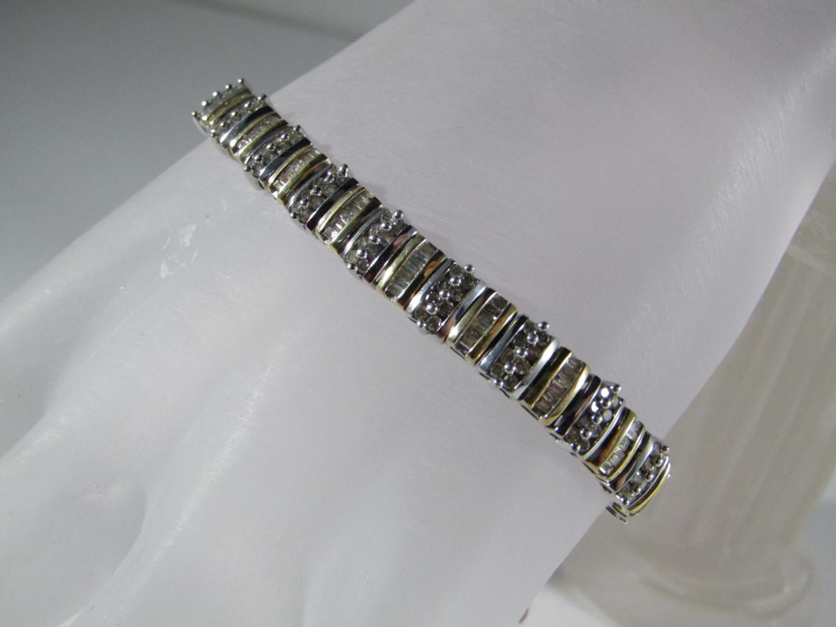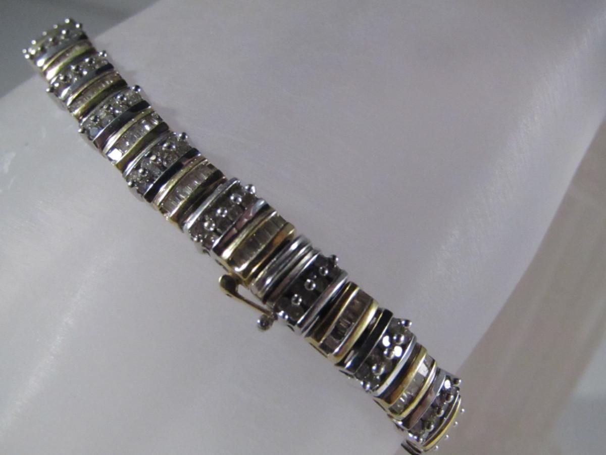 14 Kt Yellow and White Gold and Diamond Bracelet- Approx Weight 11.5 dwt (#24). Bracelet measures approx 7 1/4 inches. Please see attached assessment for information regarding stone quality and weight.