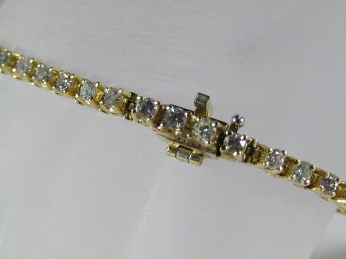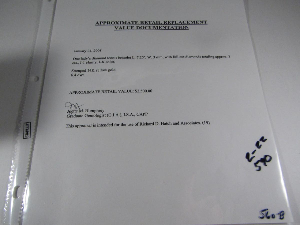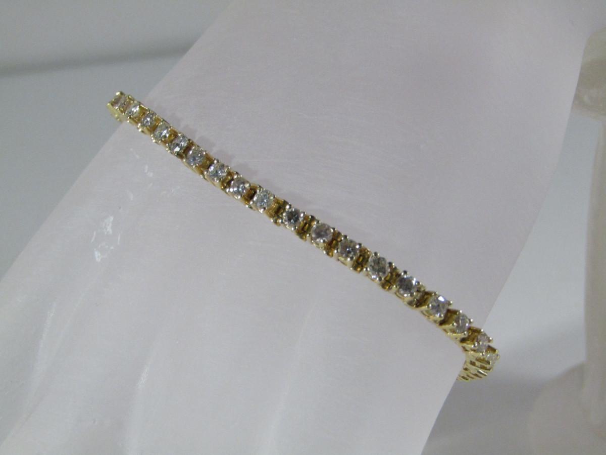 14 Kt Yellow Gold and Diamond Tennis Bracelet- Approx Weight 6.4 dwt (#23). Bracelet measures approx 7 1/4 inches. Please see attached assessment for information regarding stone quality and weight.