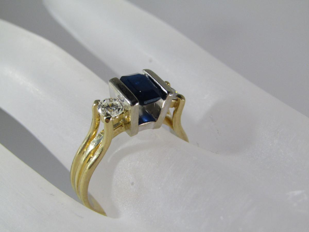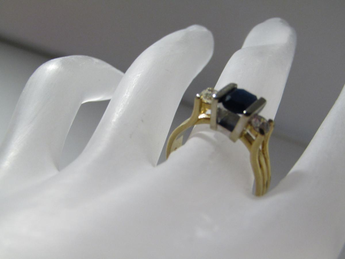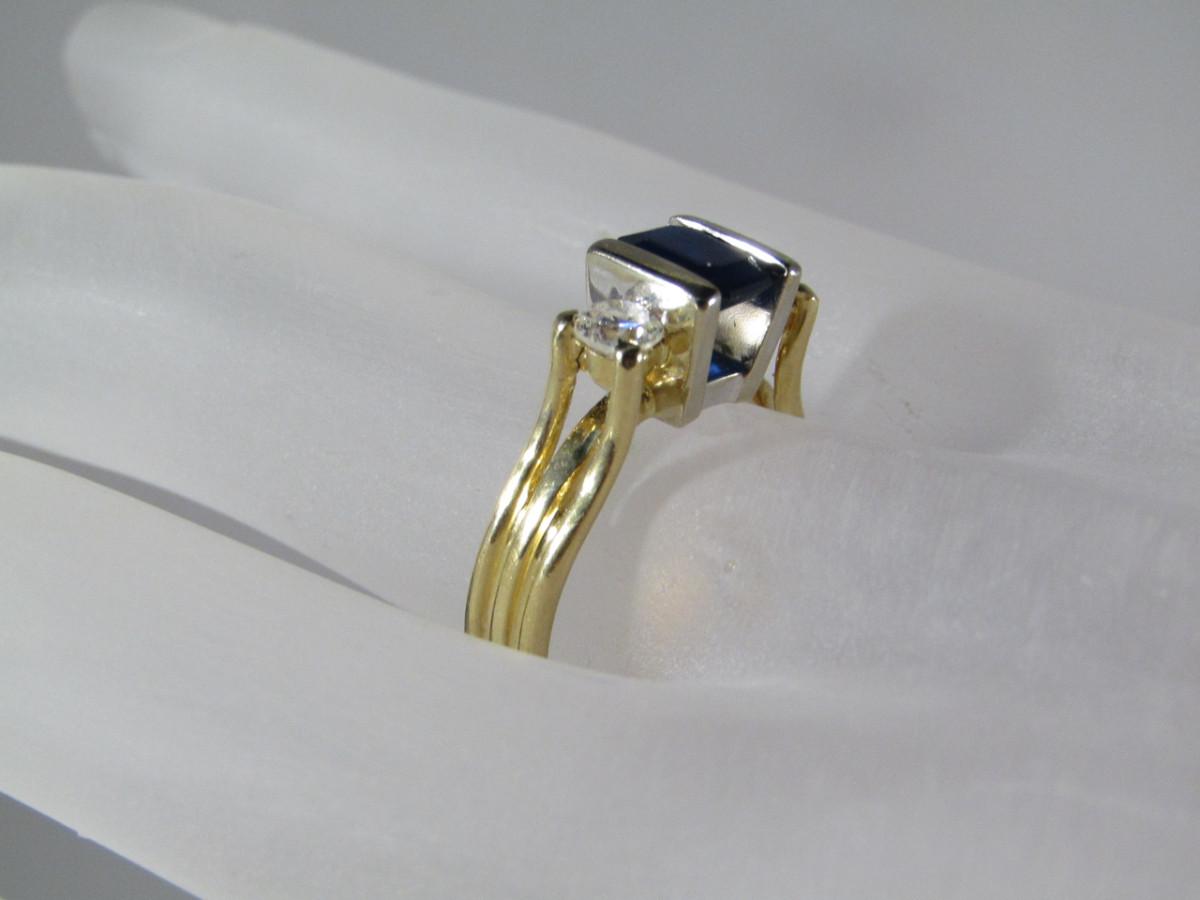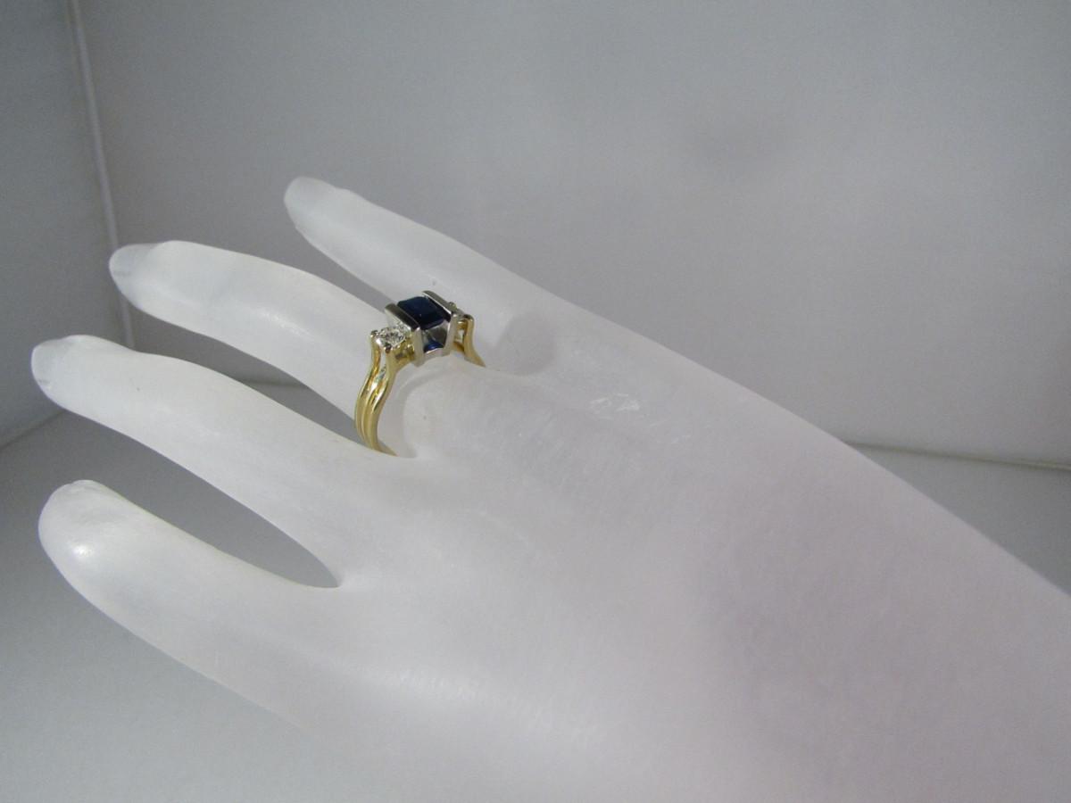 14 Kt Yellow Gold Blue Sapphire and Diamond Ring- Size 7- Approx Weight 5.5 grams (#27)