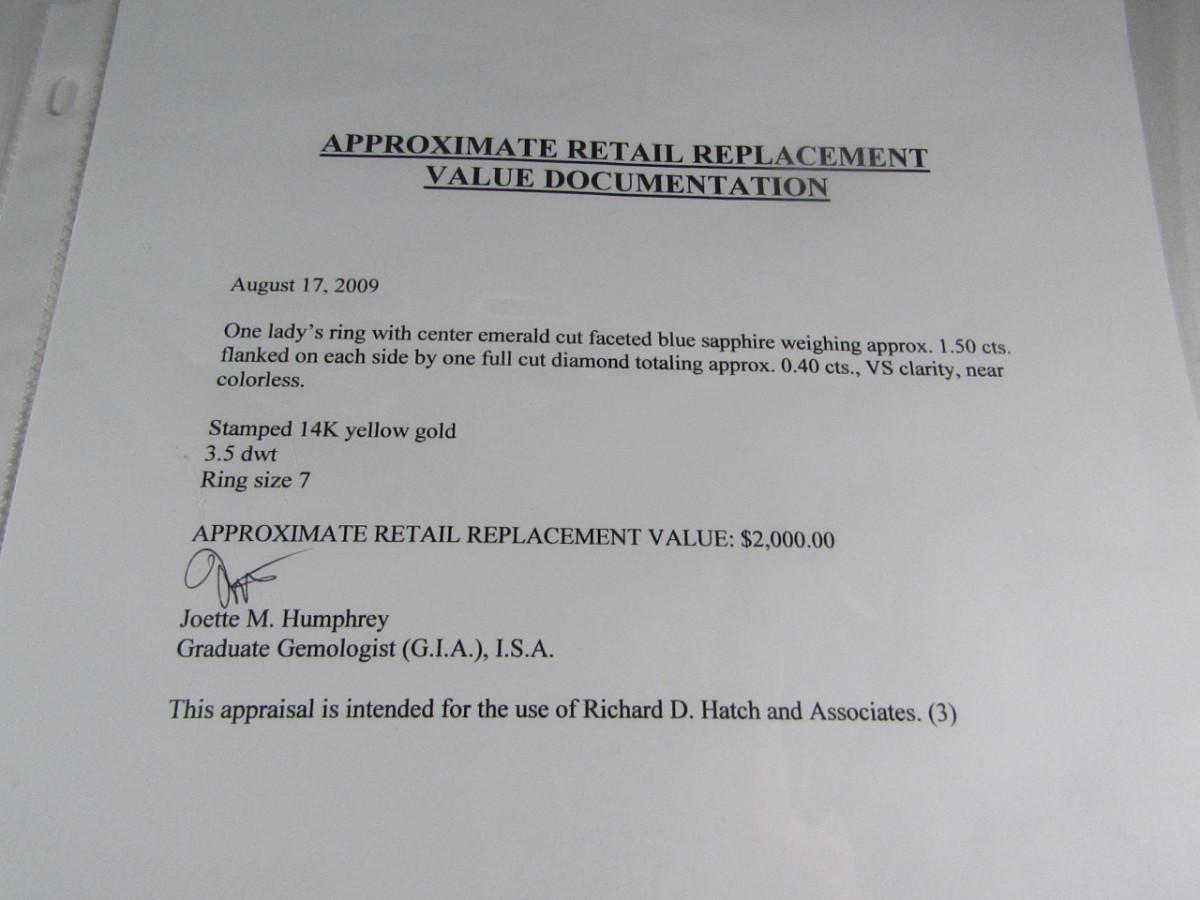 14 Kt Yellow Gold Blue Sapphire and Diamond Ring- Size 7- Approx Weight 3.5 dwt (#27). Please see attached assessment for information regarding stone quality and weight.