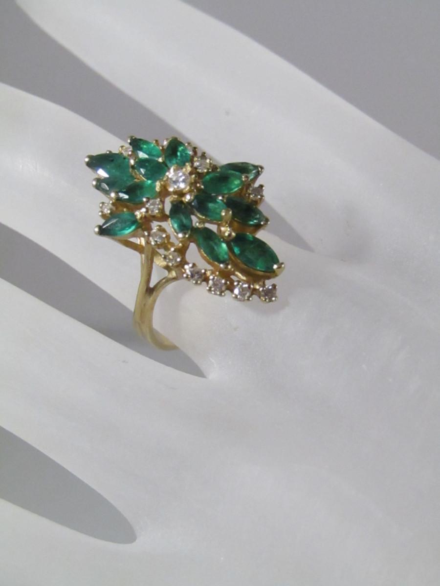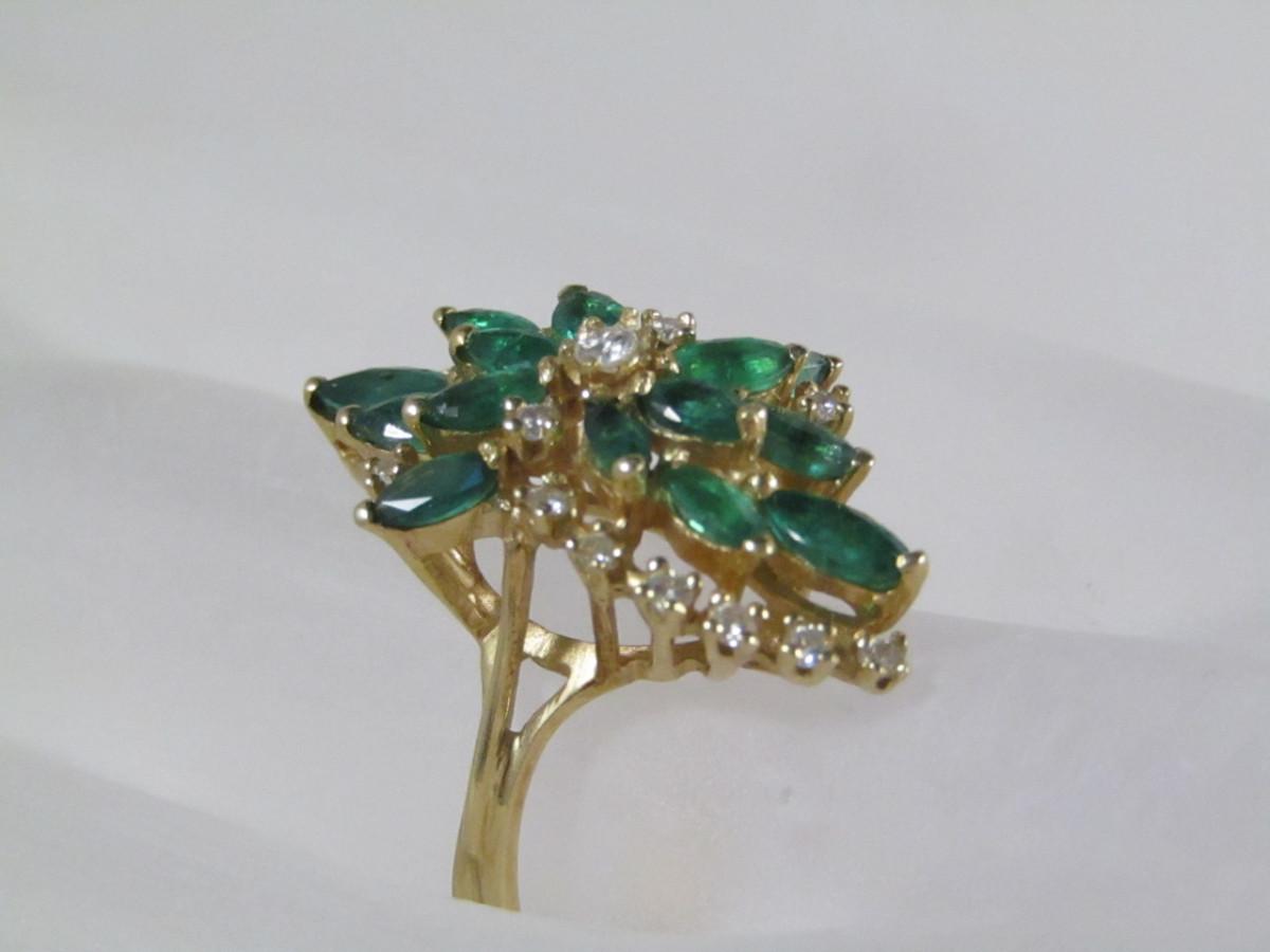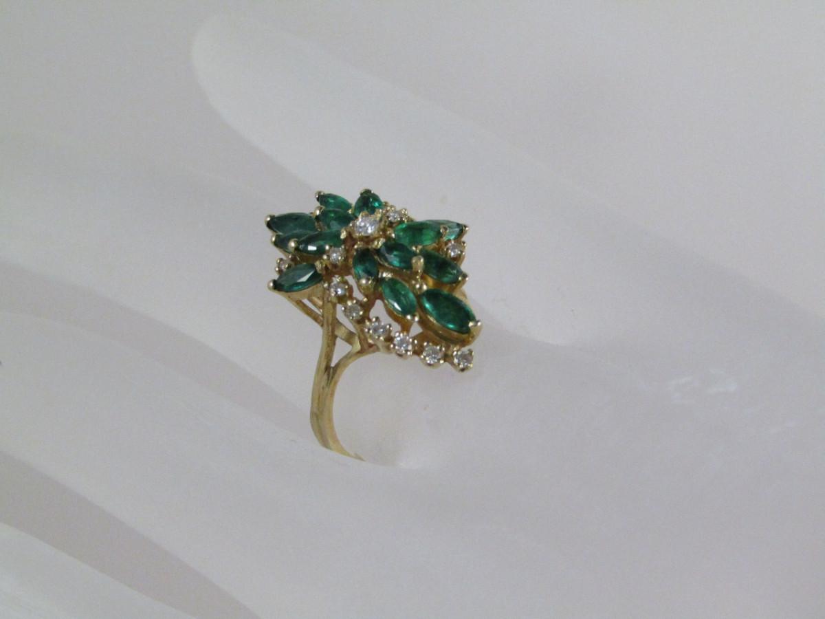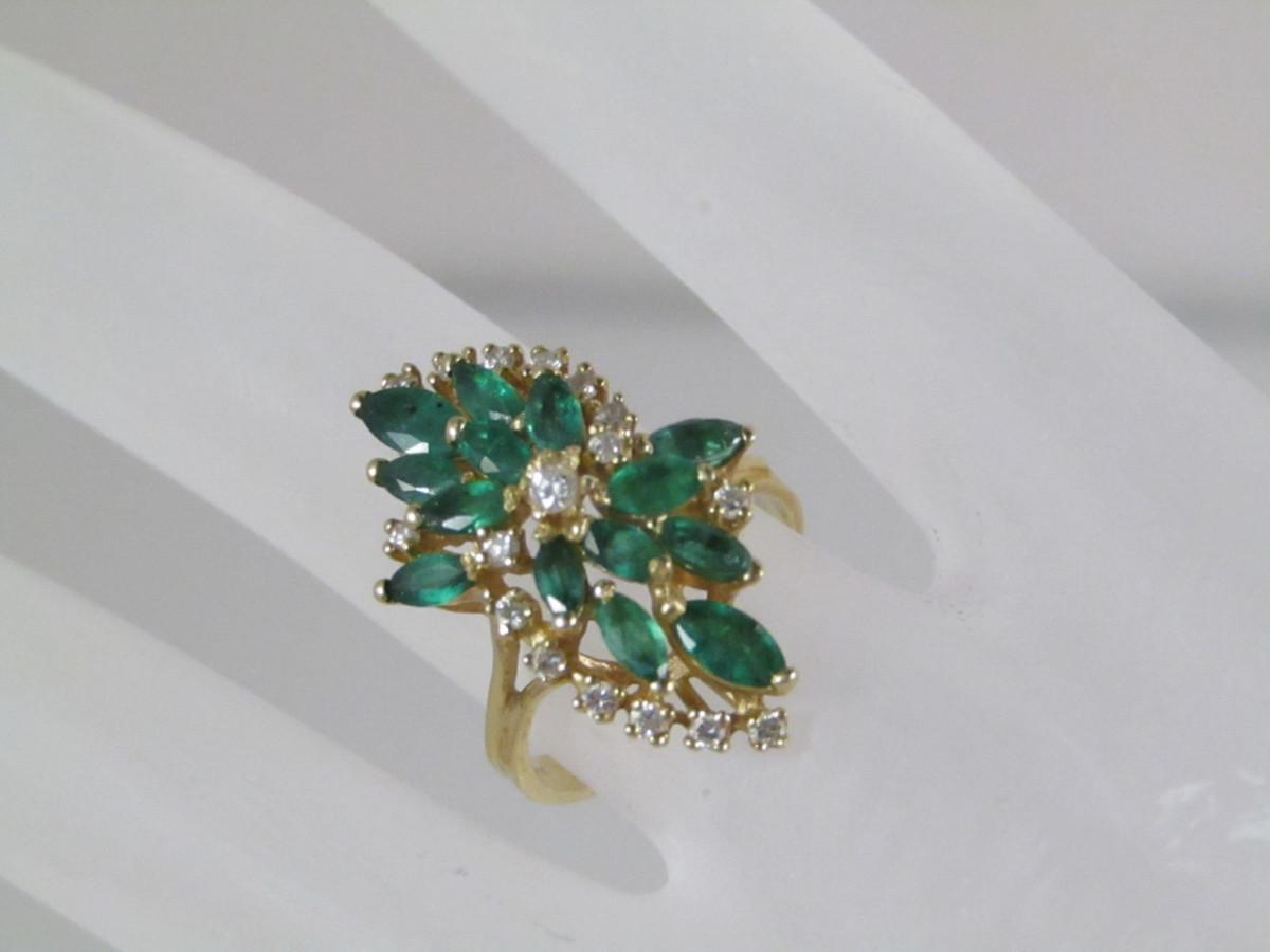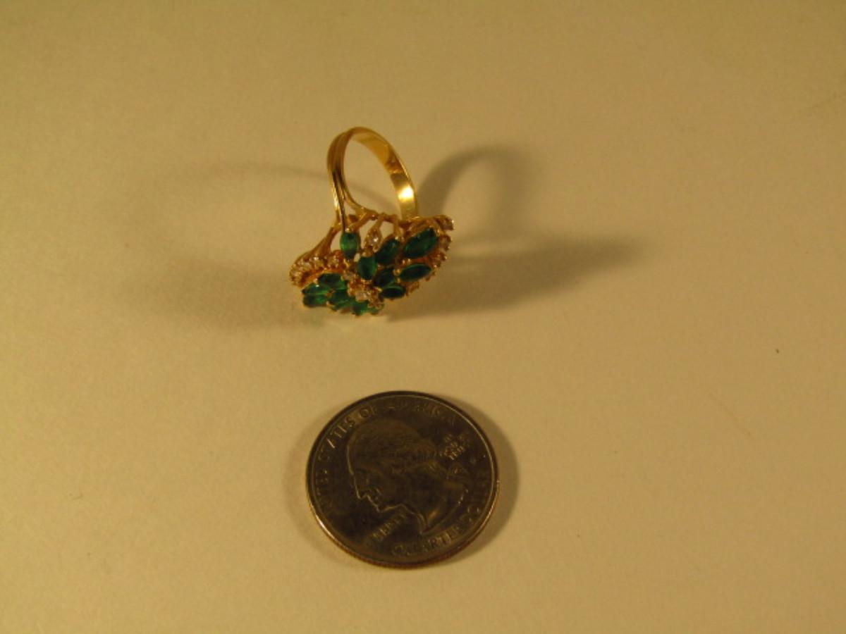 14 Kt Yellow Gold Diamond and Emerald Ring- Size 6- Approx Weight 5.5 Grams (#10)