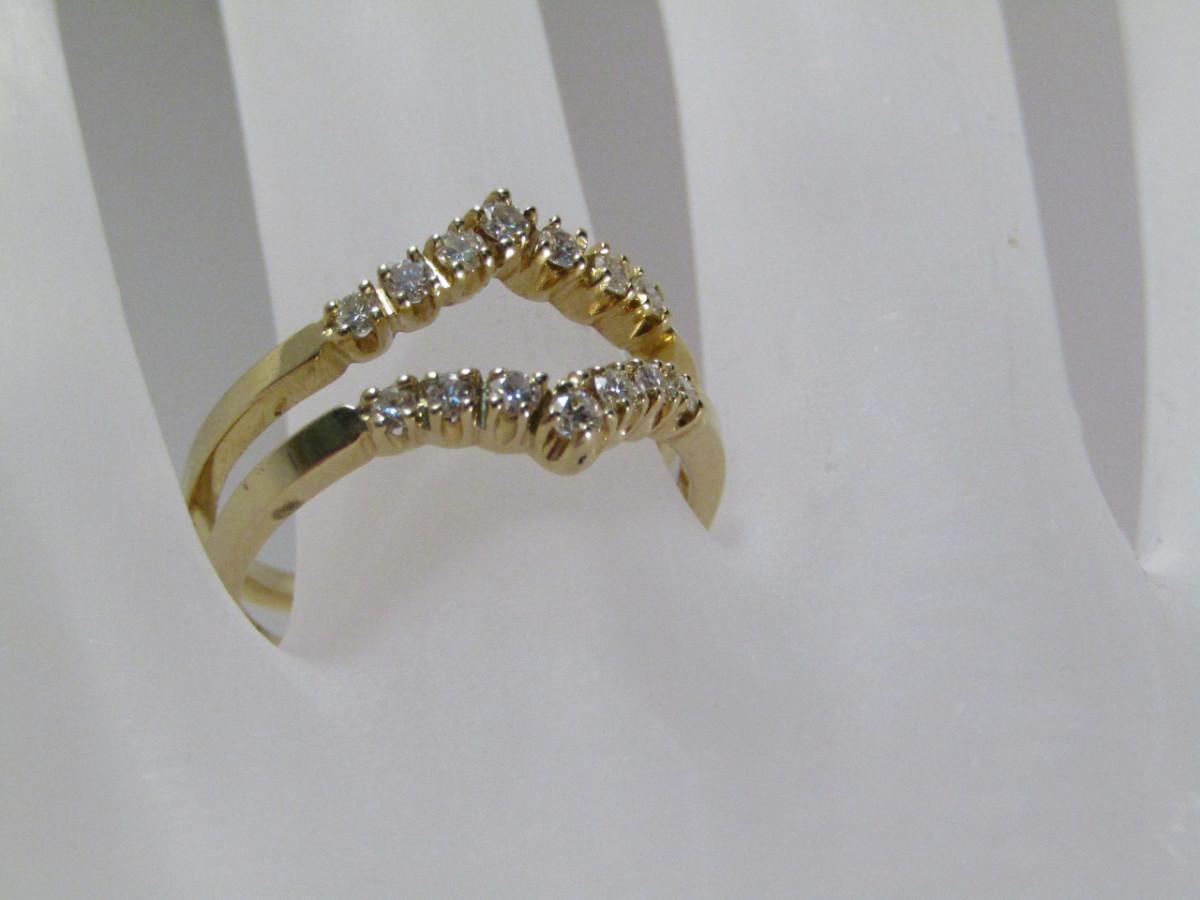 14 Kt Yellow Gold Diamond Enhancer Ring- Size 8 3/4- Approx Weight 4.7 Grams (#14). 14 diamonds (7 in each row) are approx 1/2 ct total.