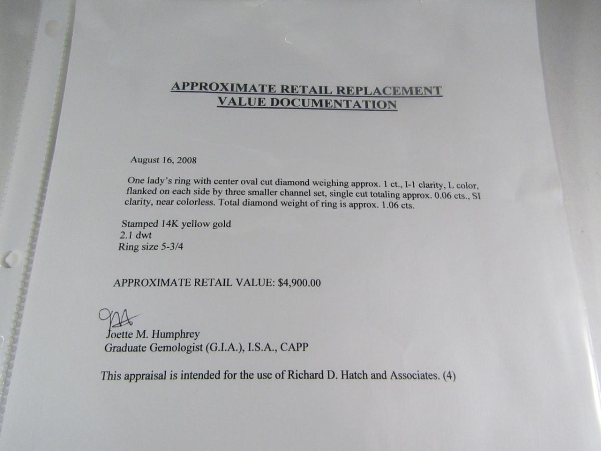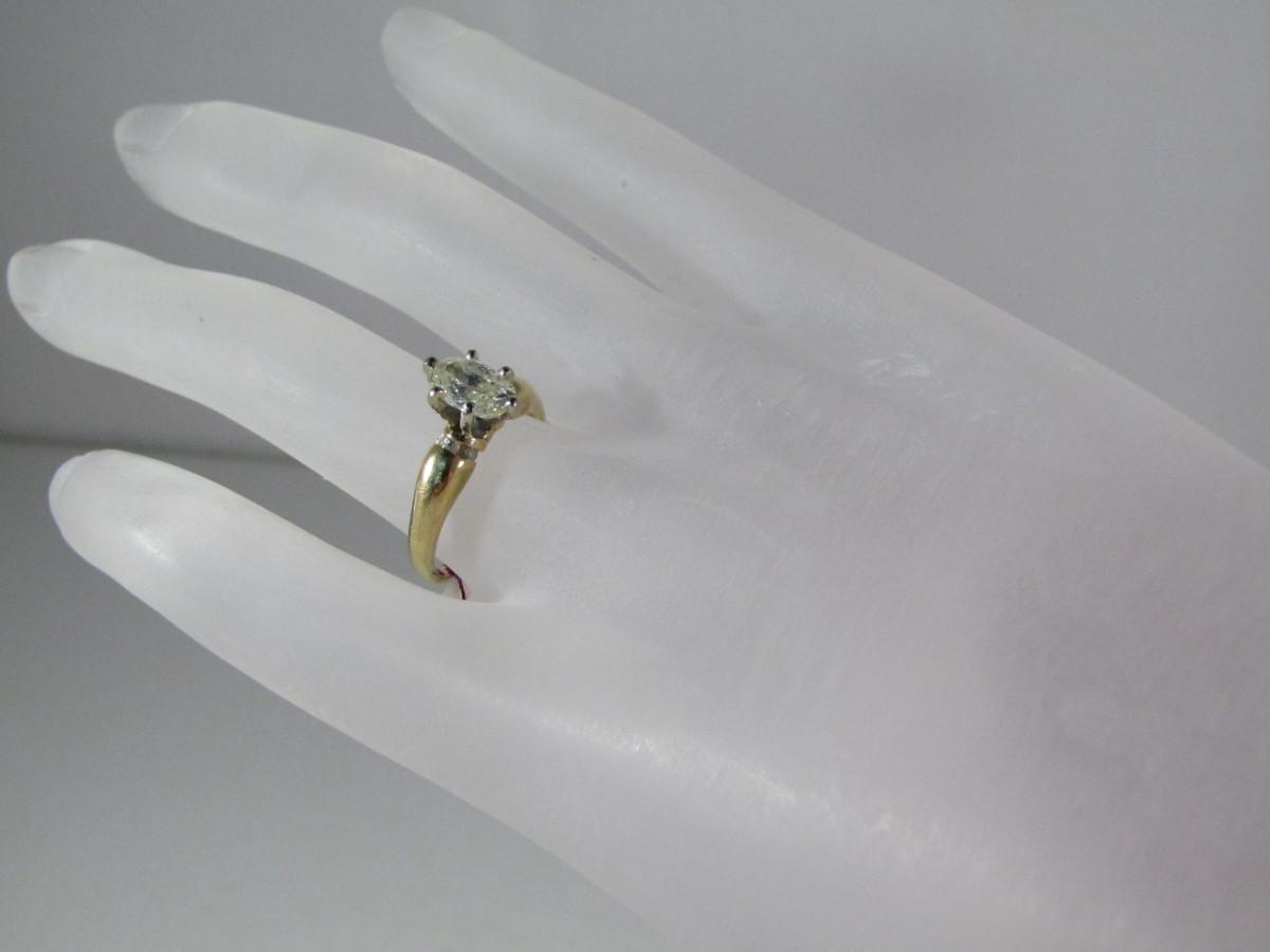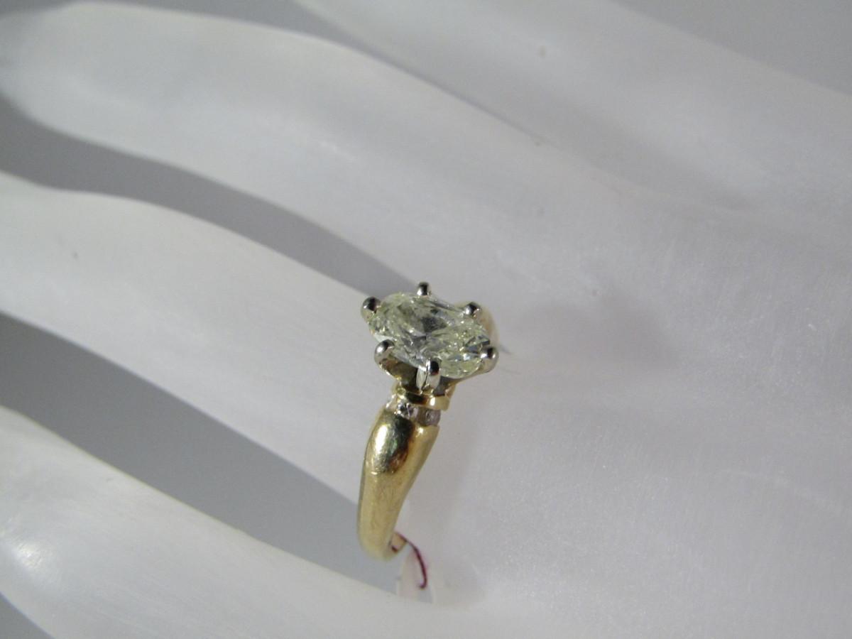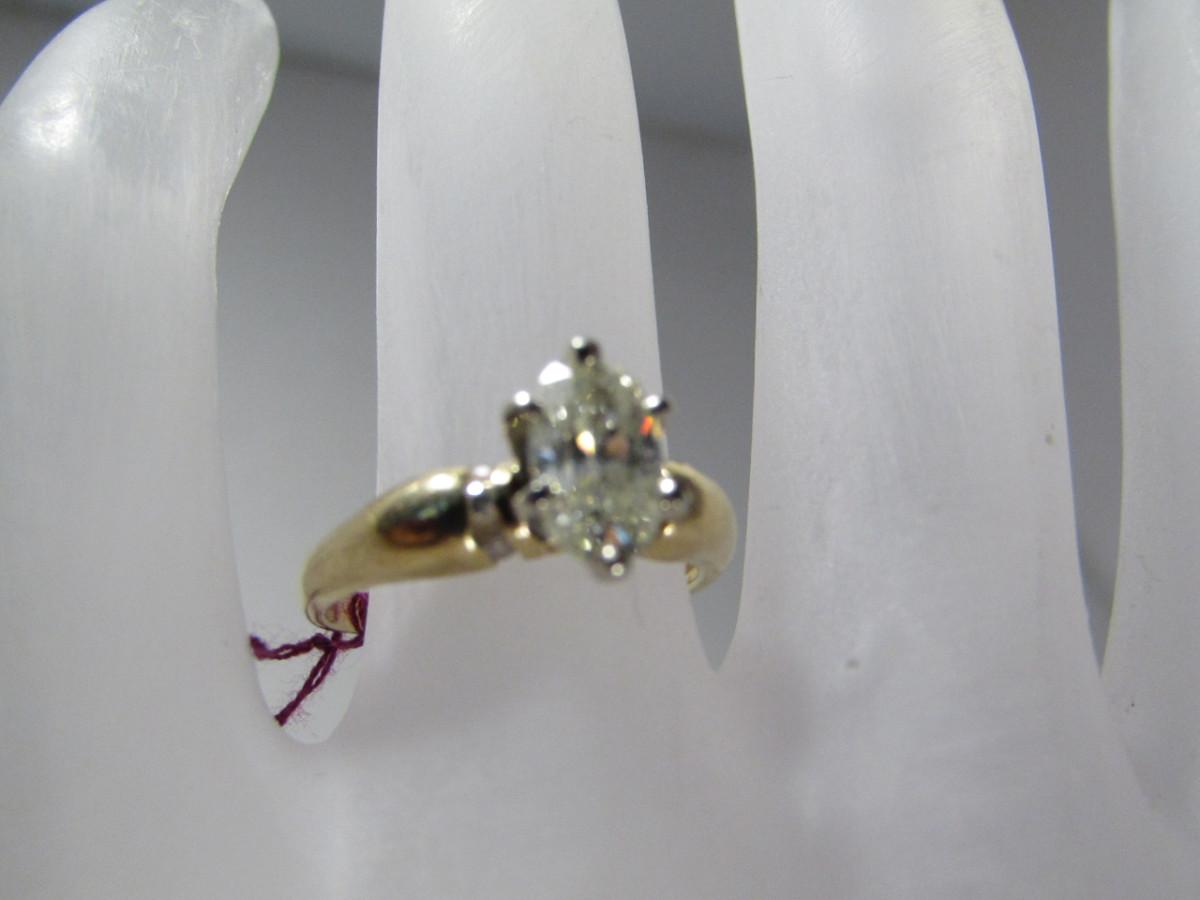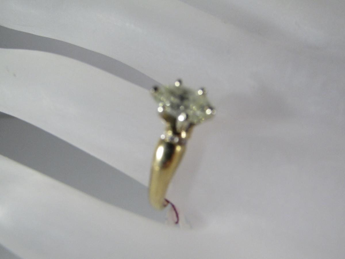 14 Kt Yellow Gold Diamond Ring- Size 5 3/4- Approx Weight 2.1 dwt (#33). Please see attached assessment for information regarding stone quality and weight.