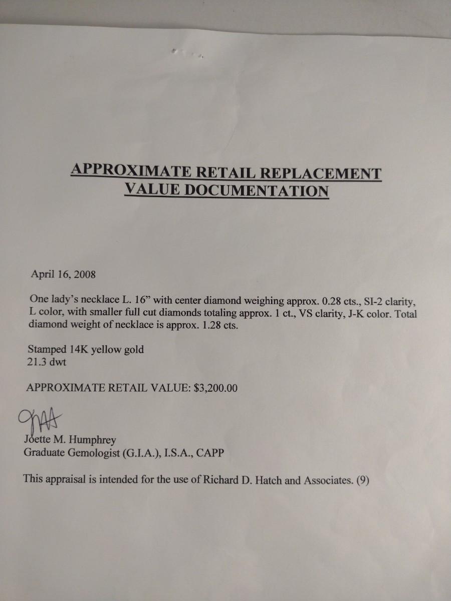 14 Kt Yellow Gold Necklace with Diamonds- Approx Weight 21.3 dwt (#17). Necklace is 16" long. Center diamond is approx .28 cts with SI-2 clarity and is surrounded with 1 carat of smaller diamonds. Total diamond weight is approx 1.28 cts.