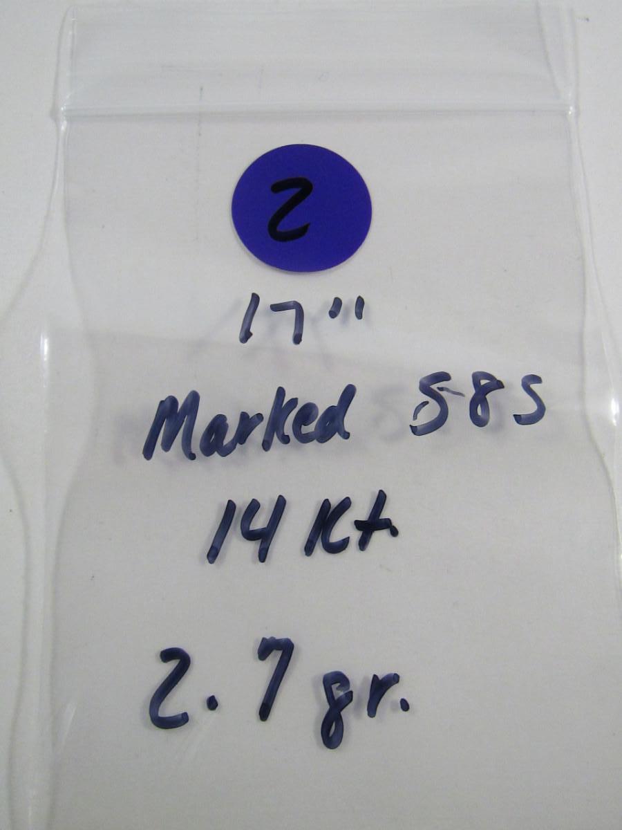 14 Kt Yellow Gold Necklace- Approx Weight 2.7 Grams (#2). Chain is approx 17" long.
