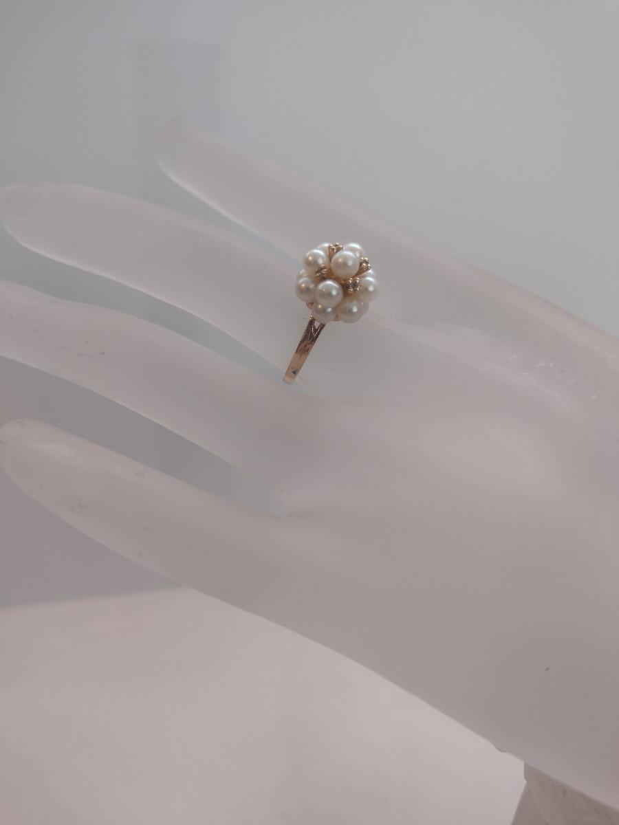 14 Kt Yellow Gold Pearl and Diamond Ring- Size 6- Approx Weight 3.7 Grams (#9)