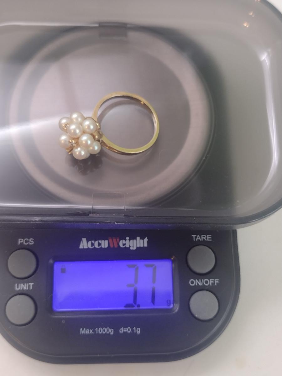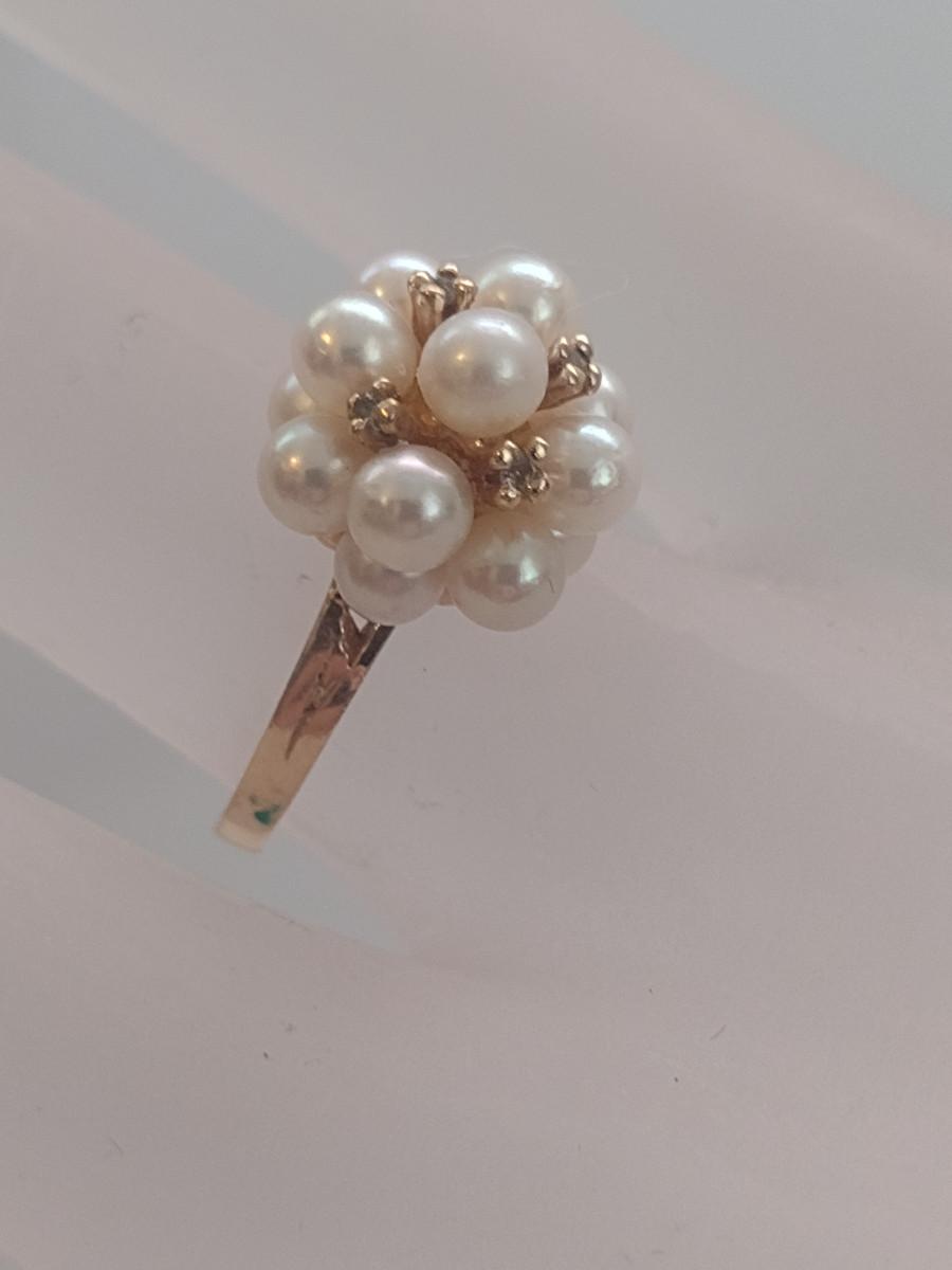 14 Kt Yellow Gold Pearl and Diamond Ring- Size 6- Approx Weight 3.7 Grams