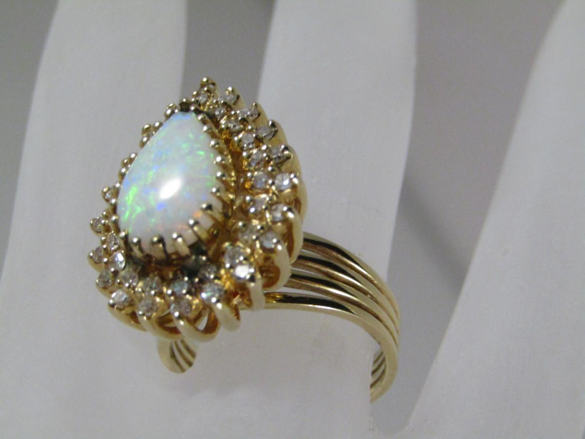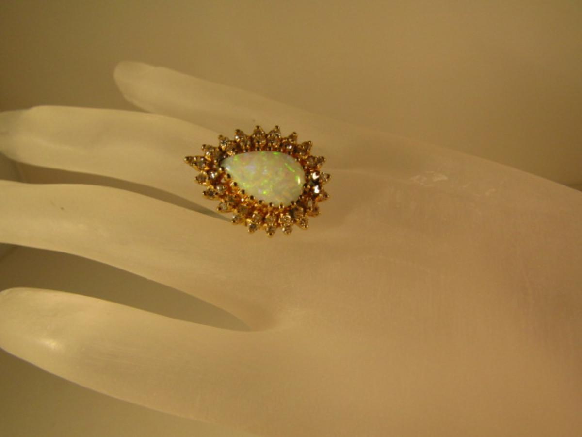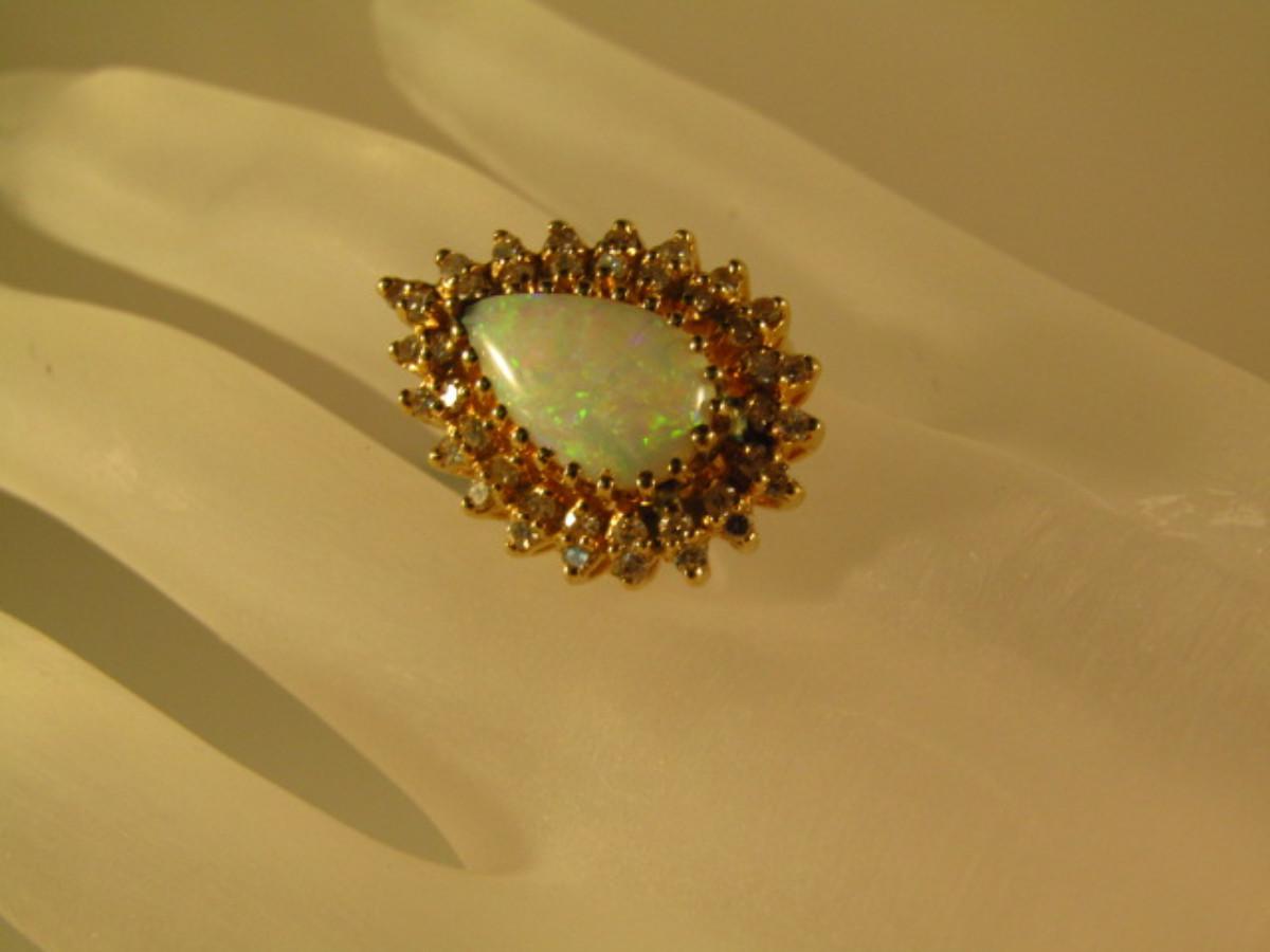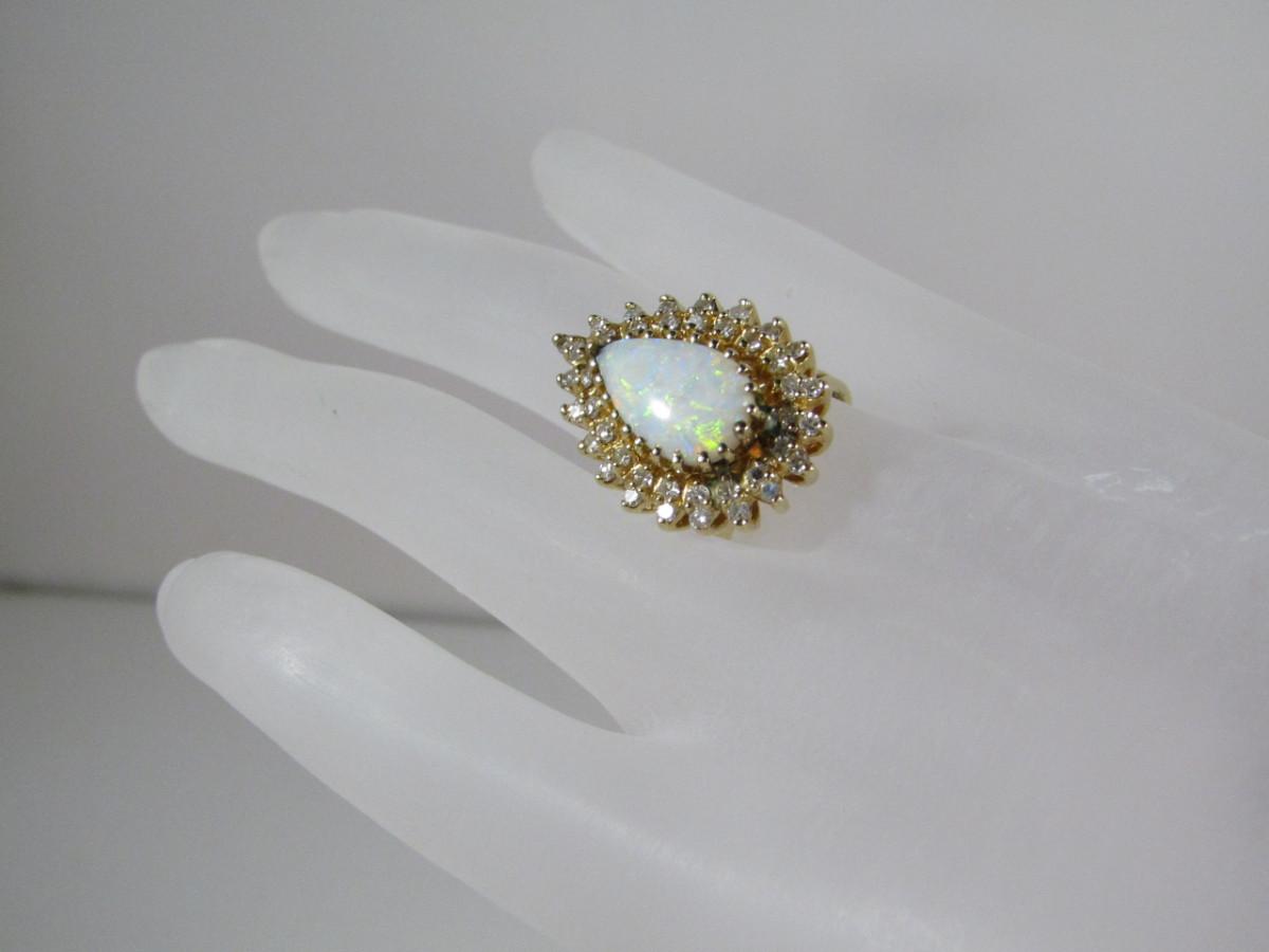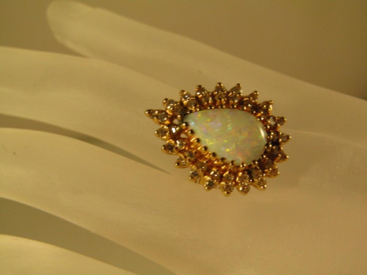 14 Kt Yellow Gold Teardrop Opal and Diamond Ring- Size 7 3/4- Approx Weight 10.9 Grams (#3)