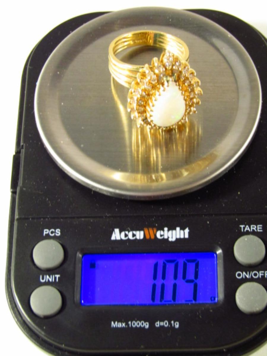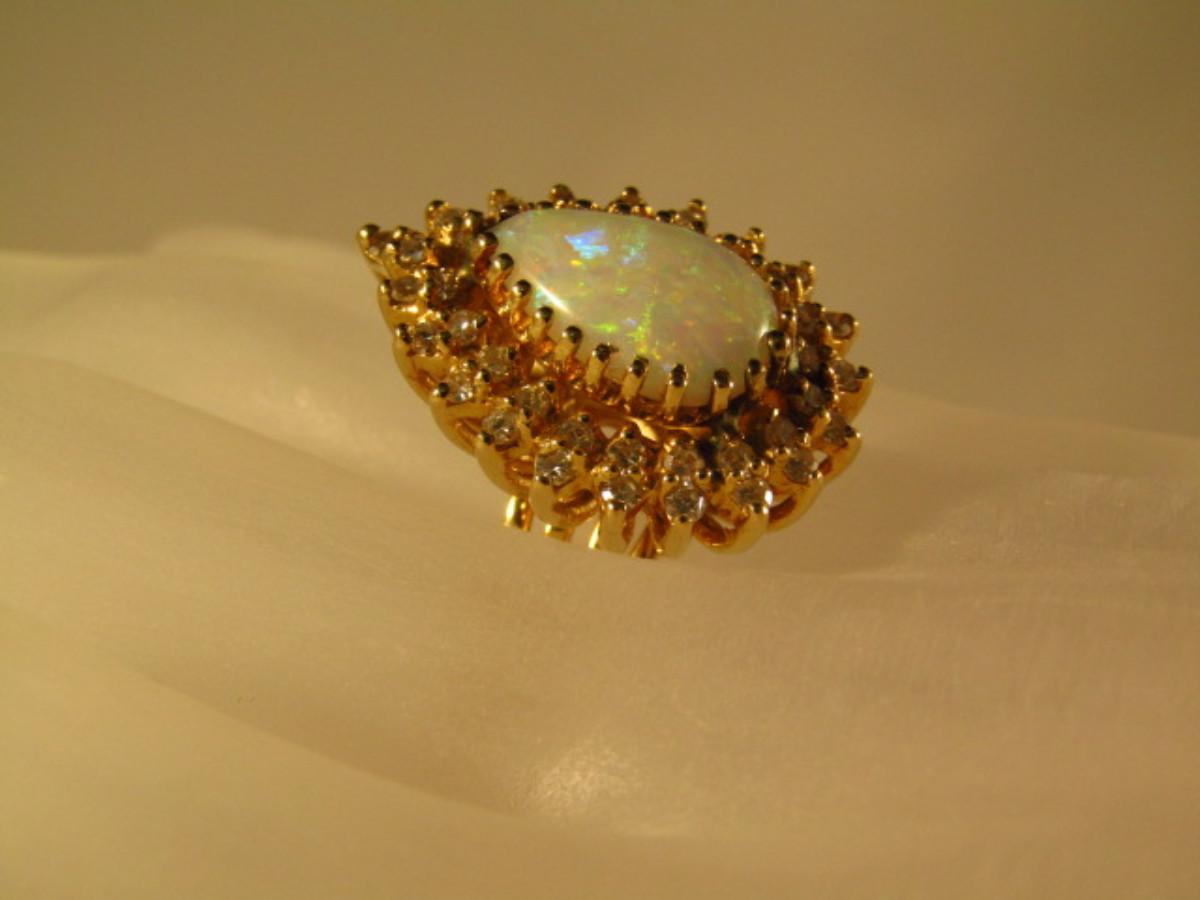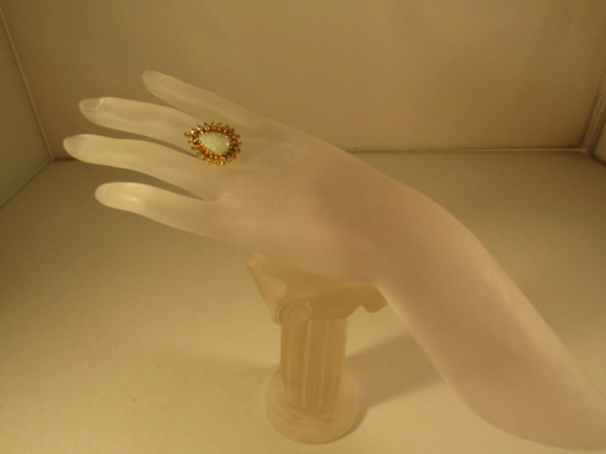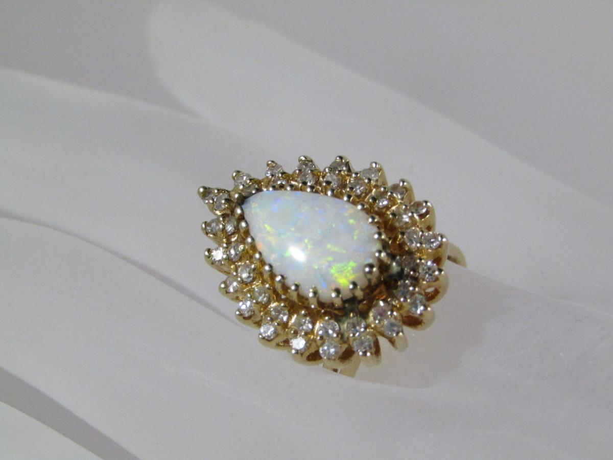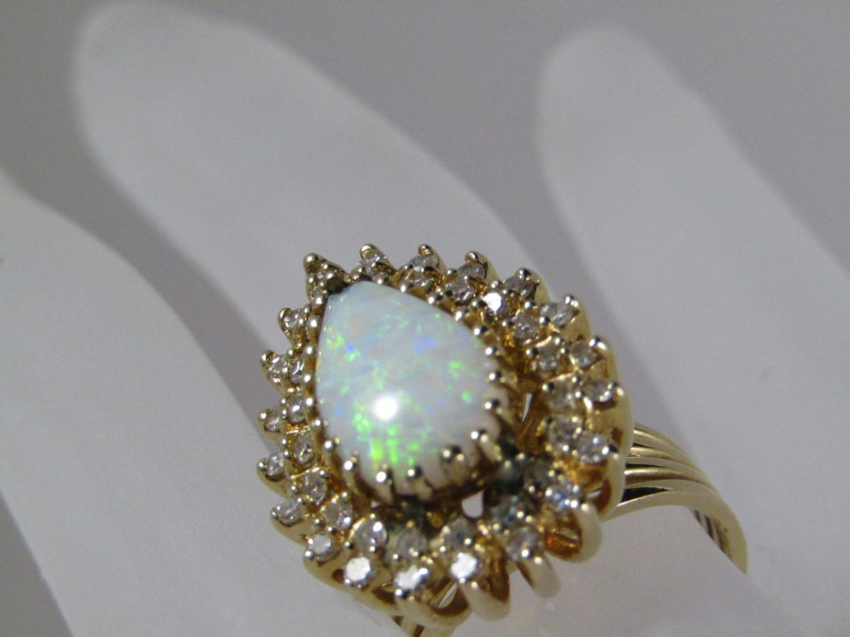 14 Kt Yellow Gold Teardrop Opal and Diamond Ring- Size 7 3/4- Approx Weight 10.9 Grams (#3)